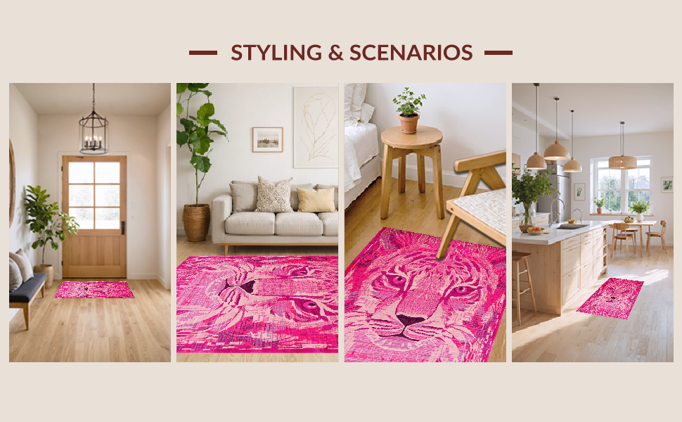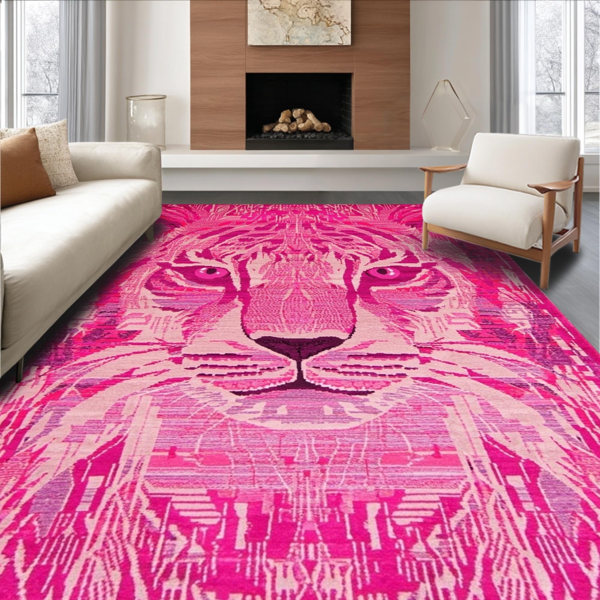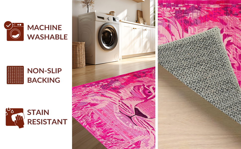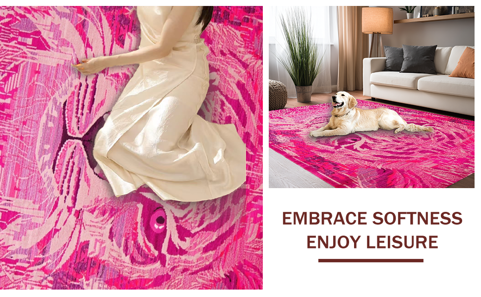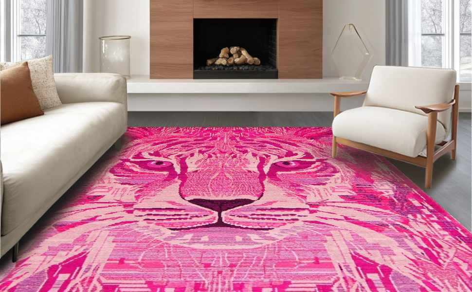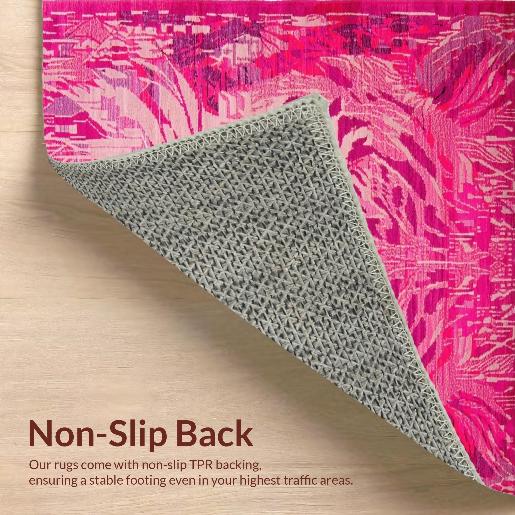 Ultra Soft Area Rug, Non Slip, Stain Resistant, Washable Area Rugs for Living Room, Bedroom, Dynamic Jungle-Inspired Artistry(Pink) Overview: