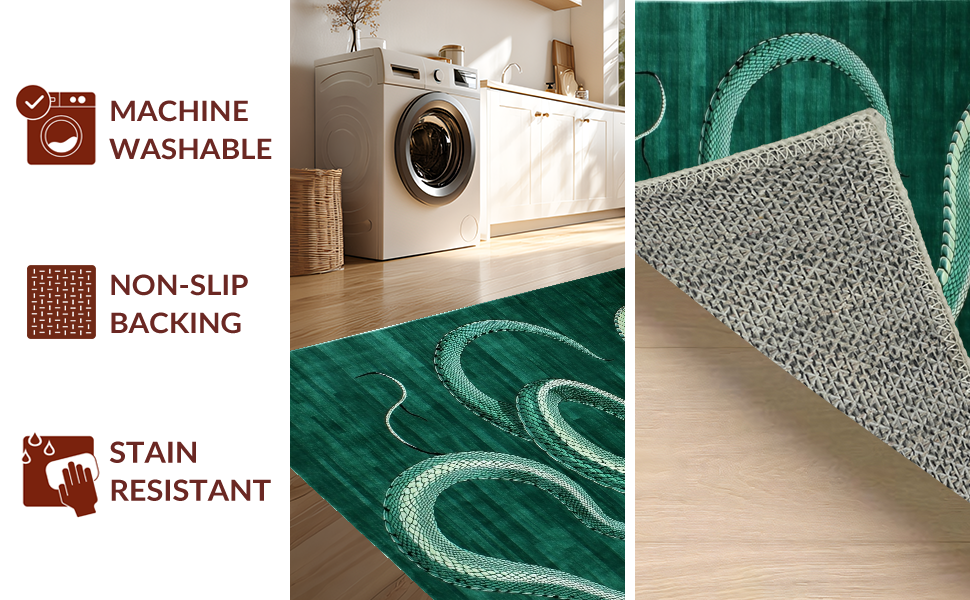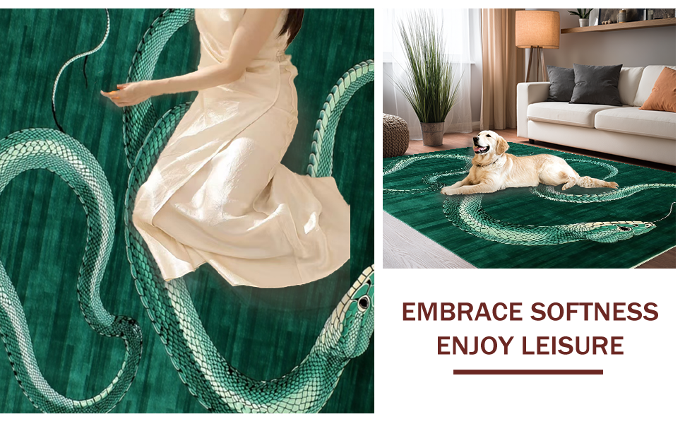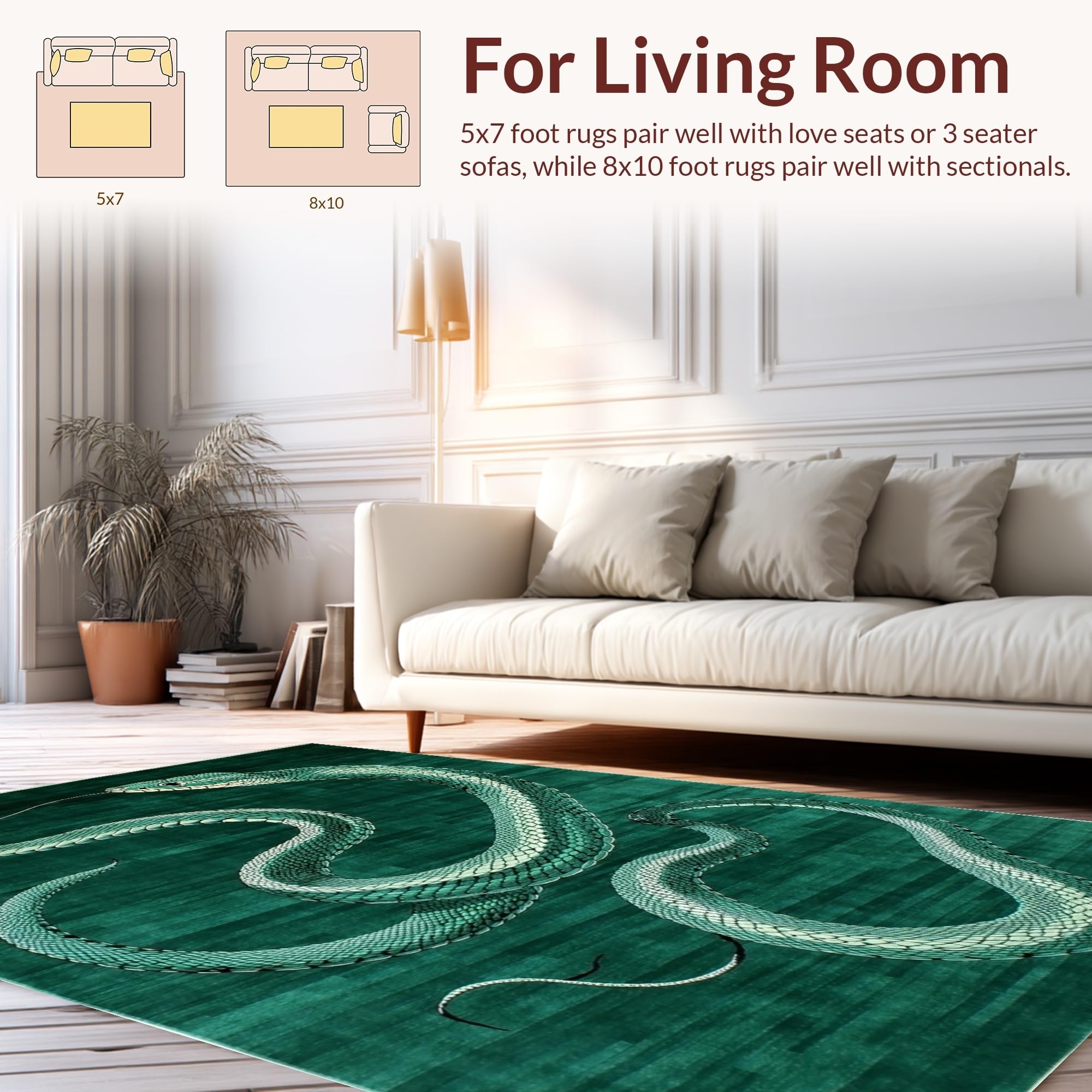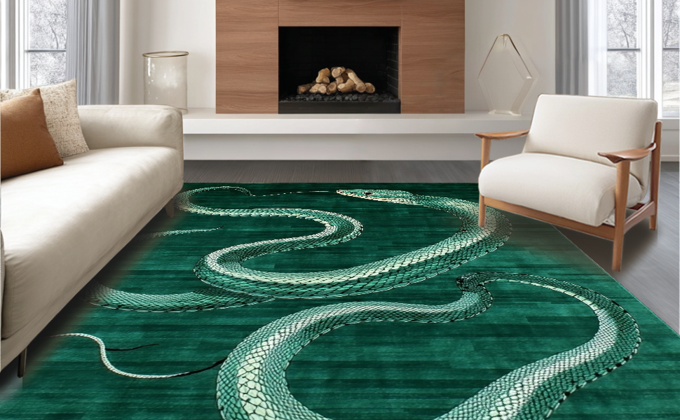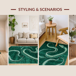 Ultra Soft Area Rug, Non Slip, Stain Resistant, Washable Area Rugs for Living Room, Bedroom, Dynamic Modern Serpentine Artwork(Green) Overview: