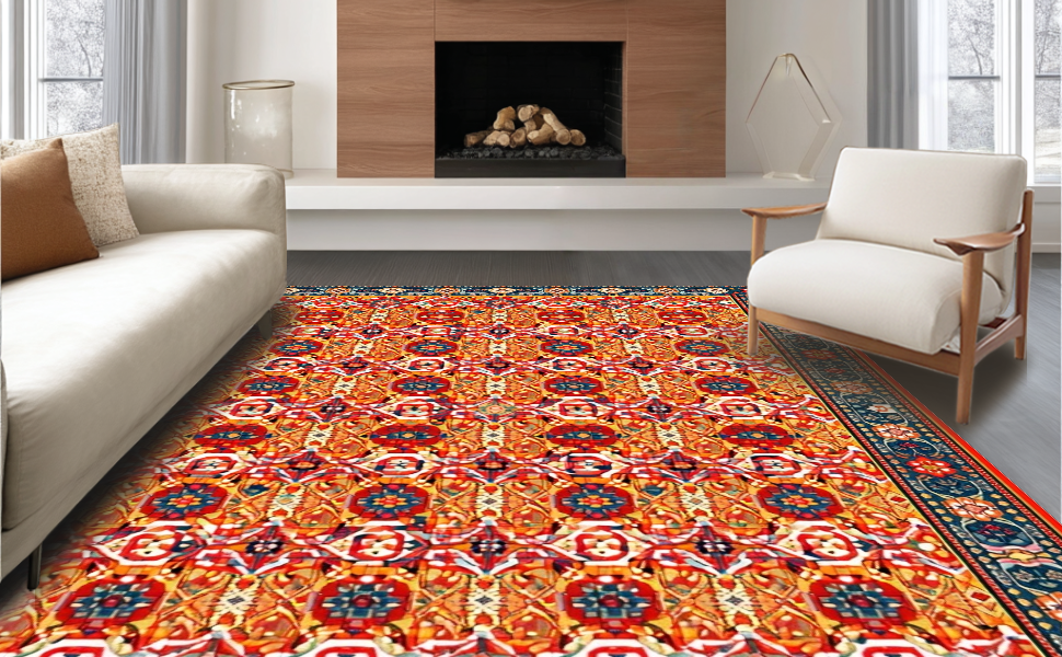 Ultra Soft Area Rug, Non Slip, Stain Resistant, Washable Area Rugs for Living Room, Bedroom, Dynamic Modern Tiled Aesthetic(Red) Overview: