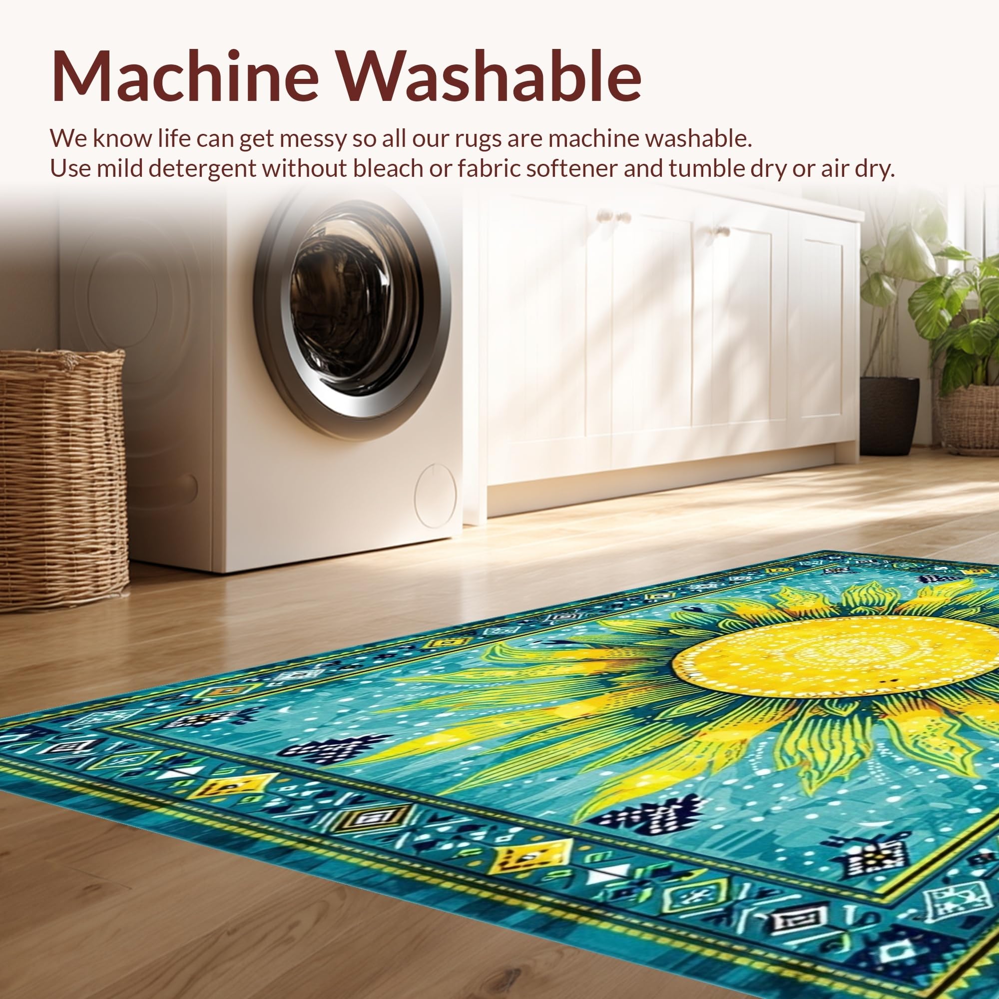 - Machine Washable: Our rugs can be easily thrown in the wash machine.