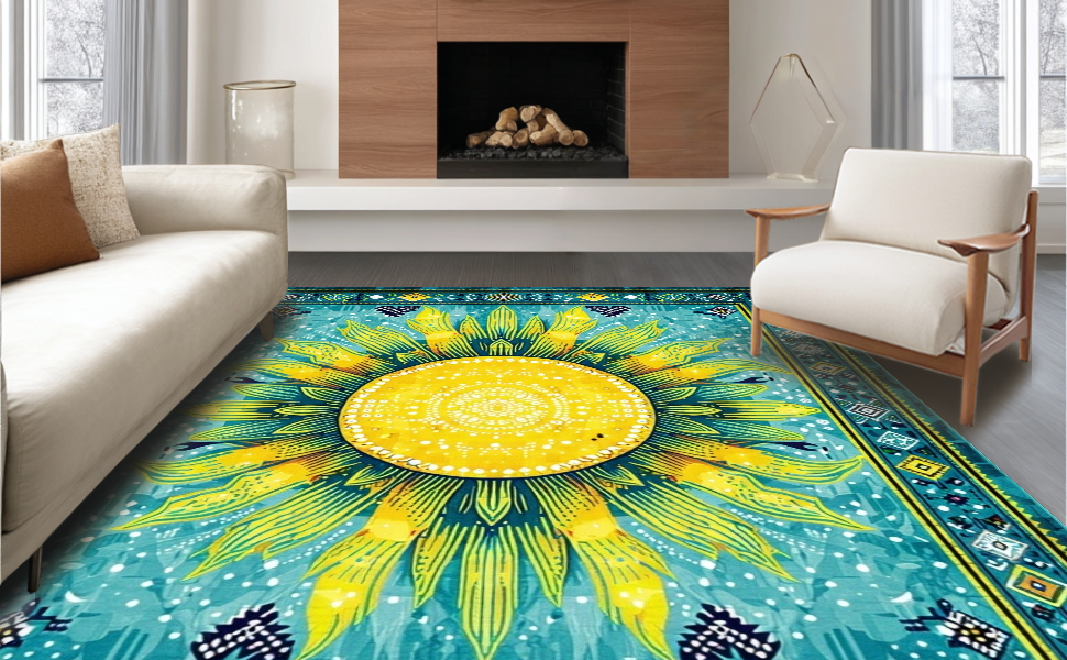 Ultra Soft Area Rug, Non Slip, Stain Resistant, Washable Area Rugs for Living Room, Bedroom, Dynamic Multicolor Spiral Arrangement(Yellow) Overview: