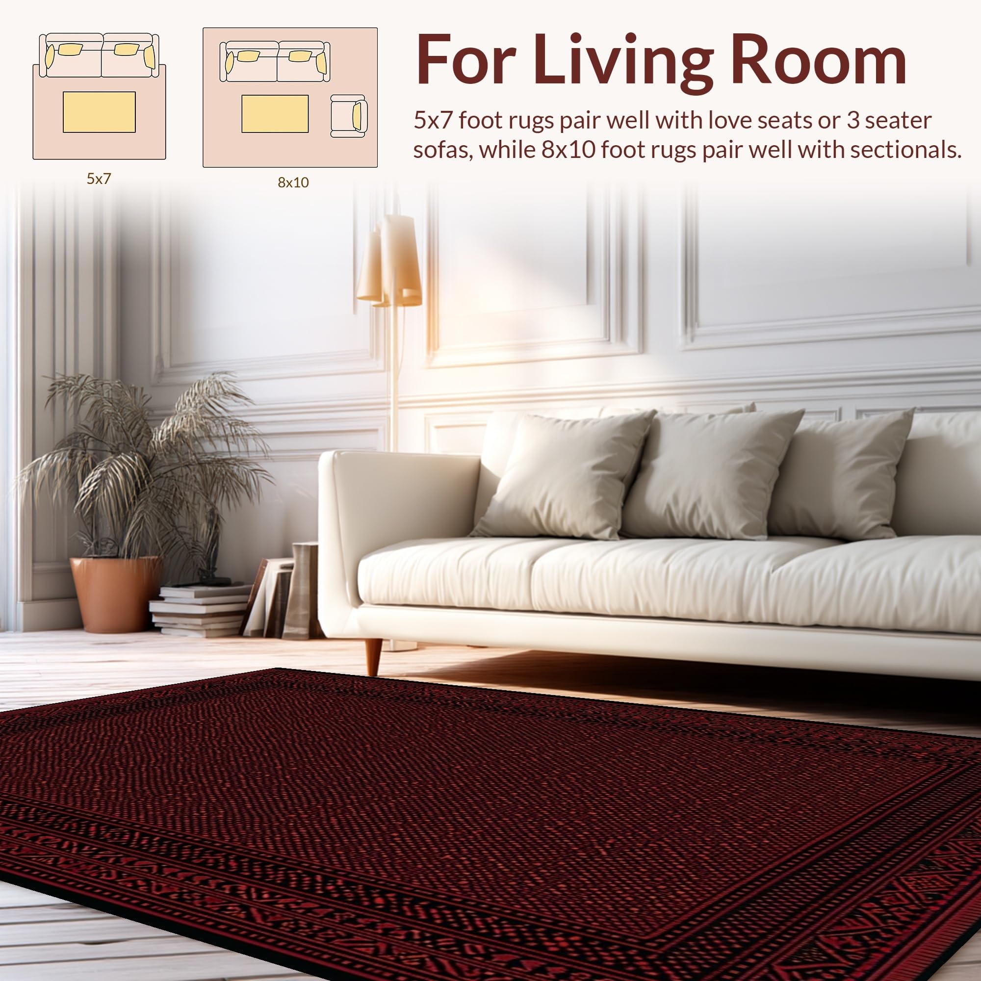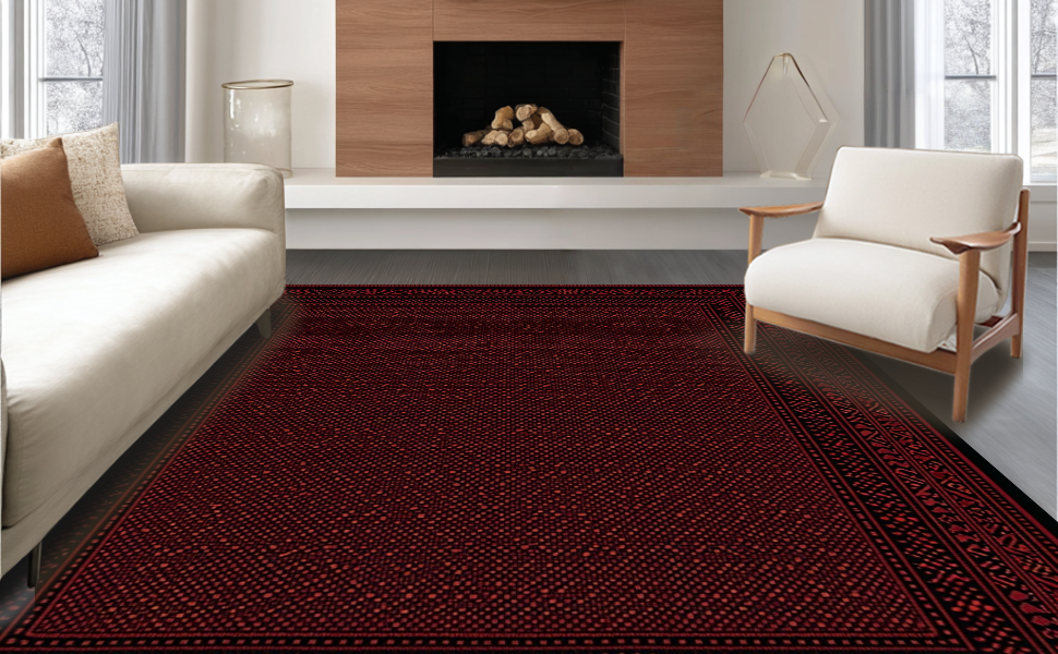 Ultra Soft Area Rug, Non Slip, Stain Resistant, Washable Area Rugs for Living Room, Bedroom, Dynamic Multicolor Textured Symmetry(Red) Overview: