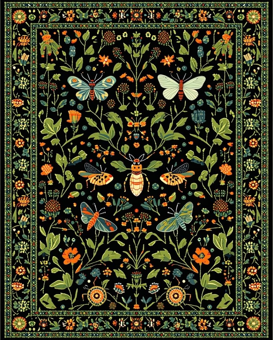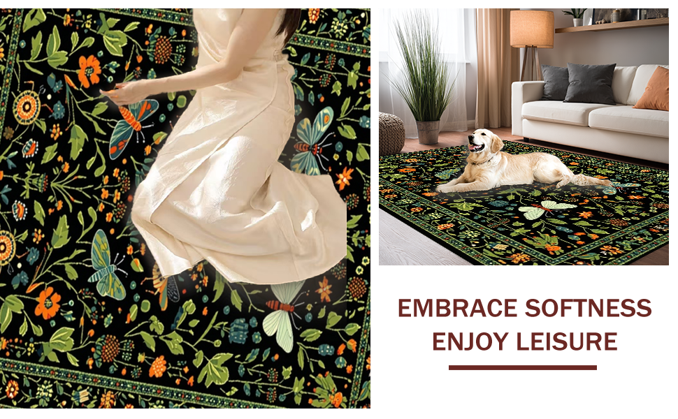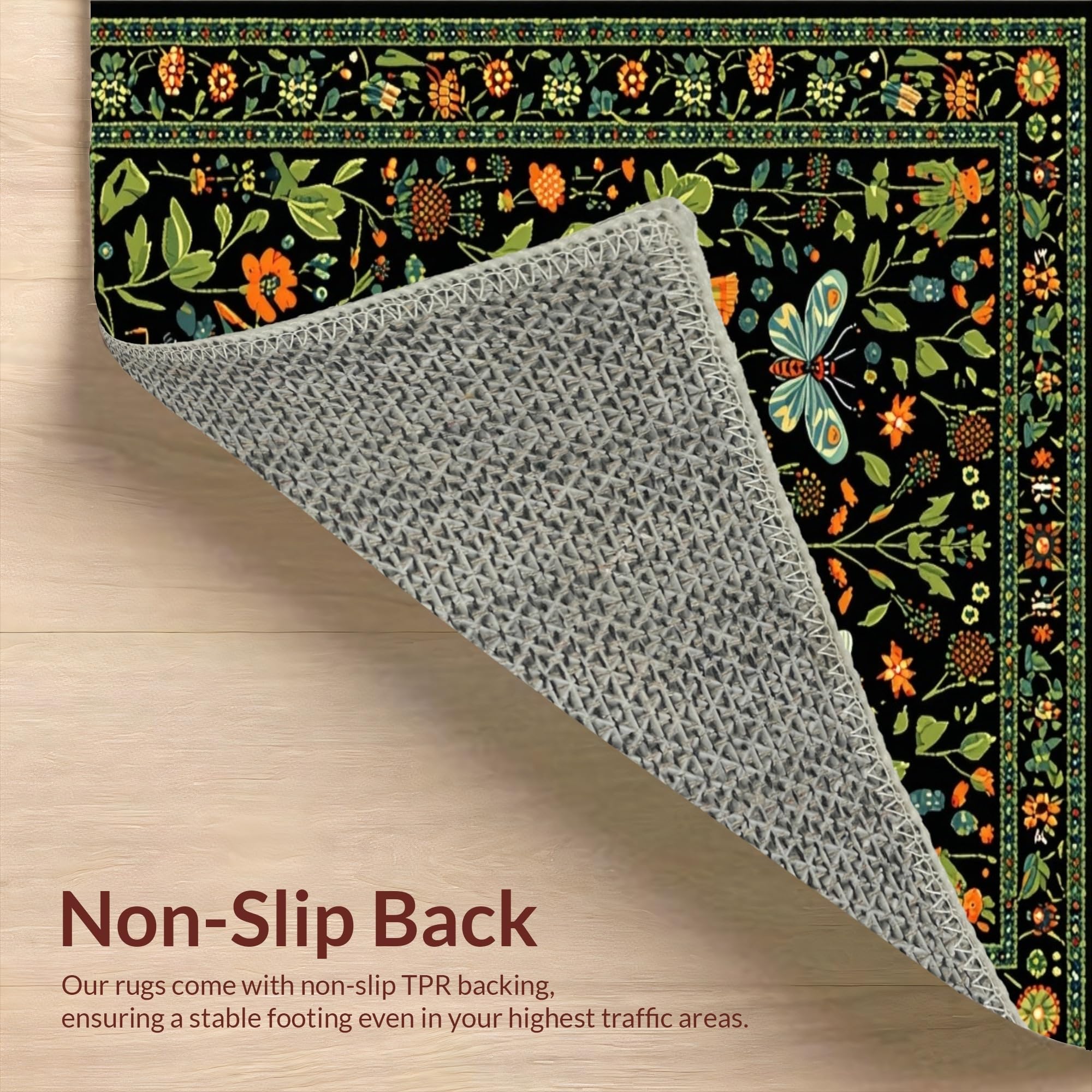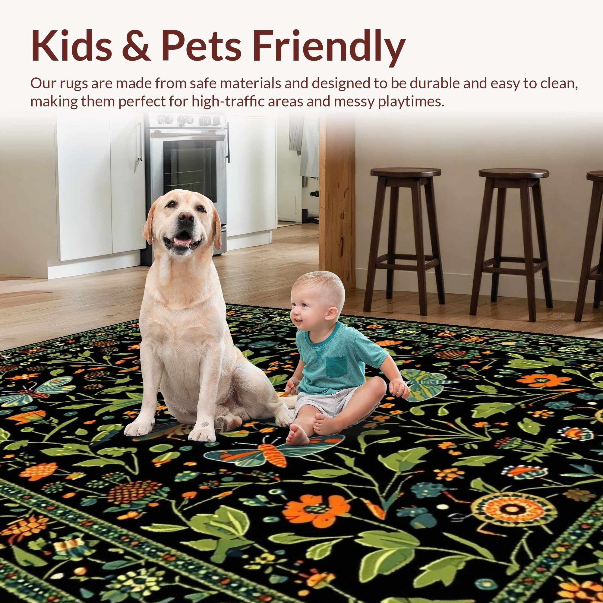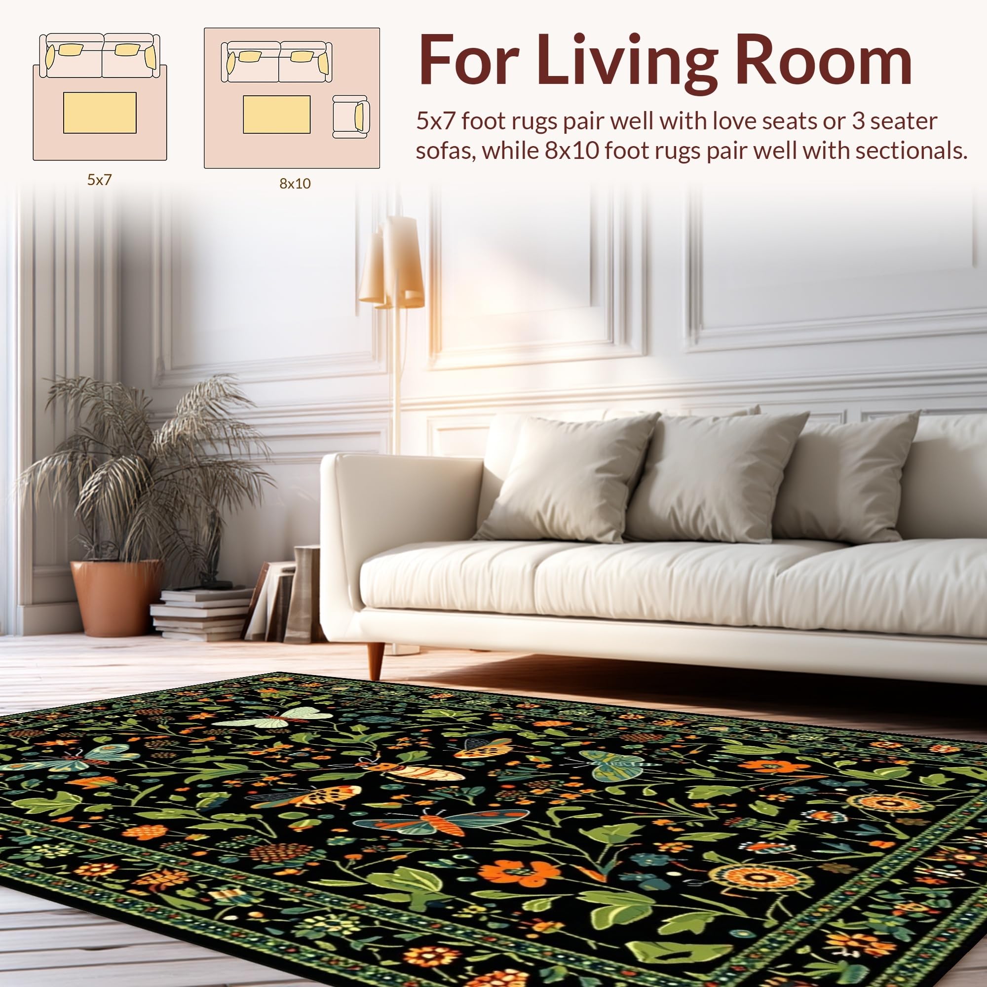 Ultra Soft Area Rug, Non Slip, Stain Resistant, Washable Area Rugs for Living Room, Bedroom, Dynamic Orange Accent Insect Theme(Black) Overview: