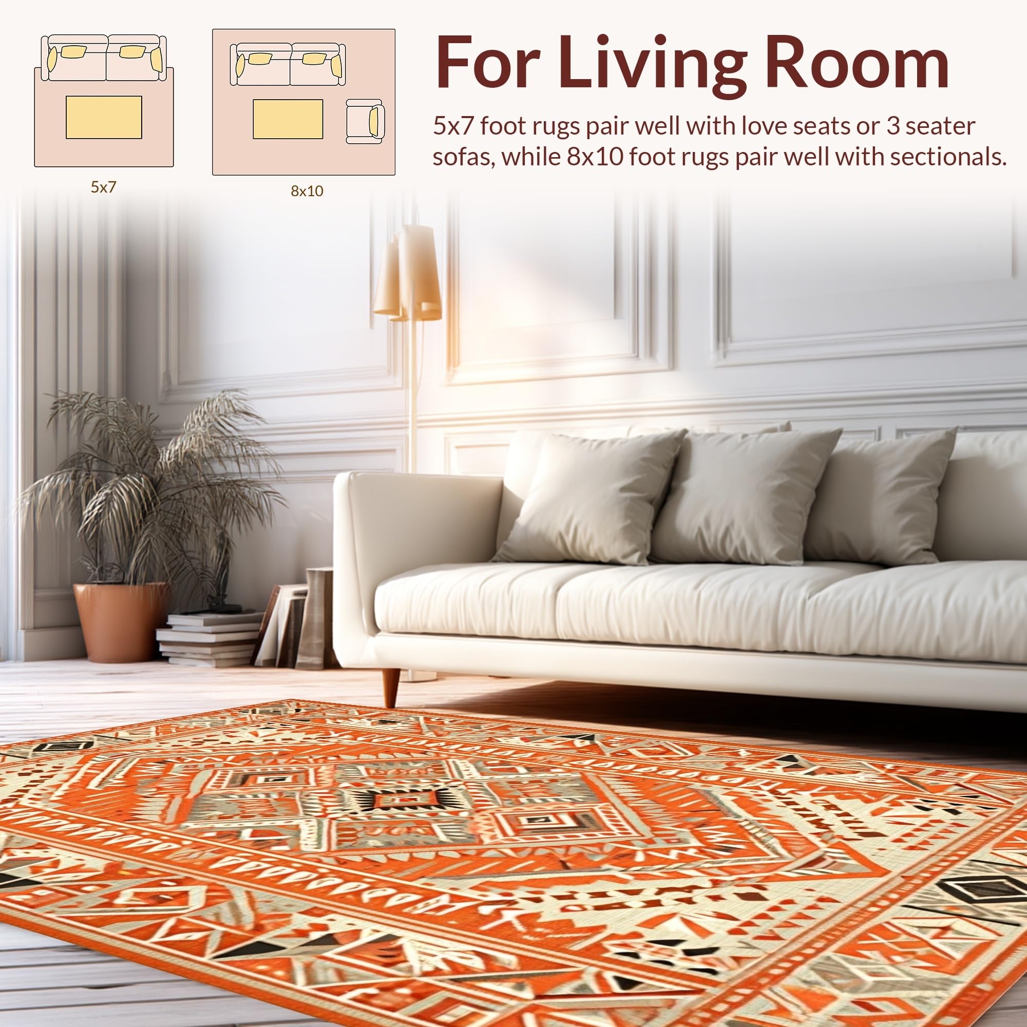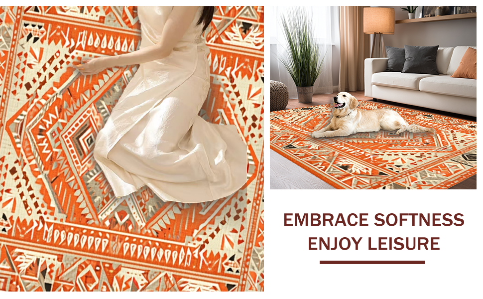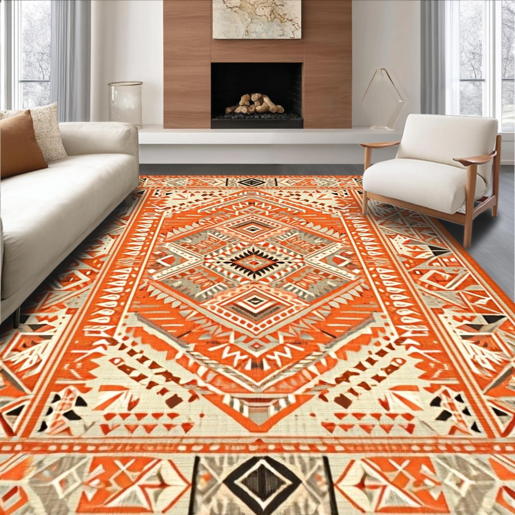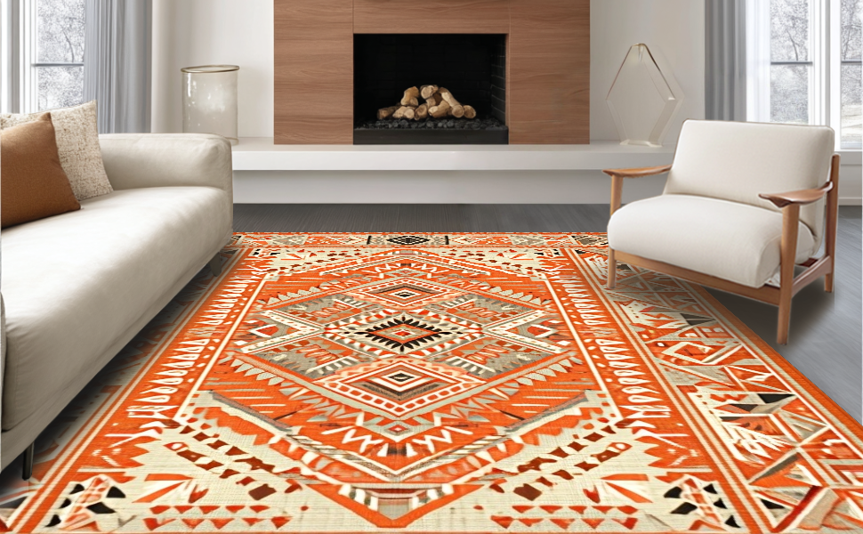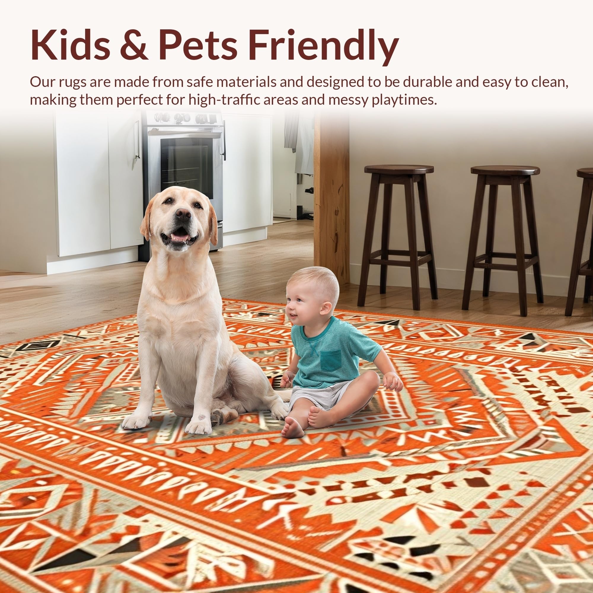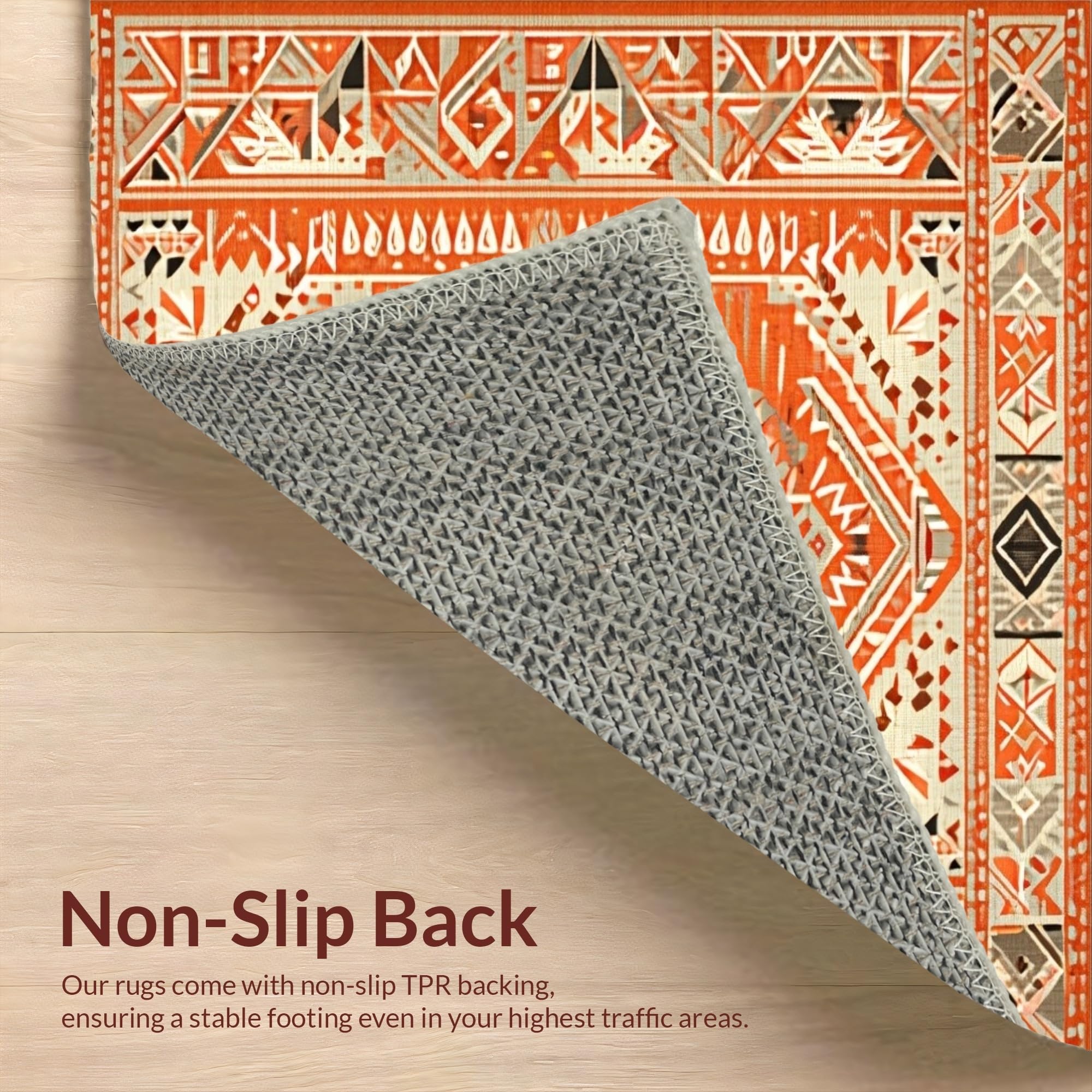 Ultra Soft Area Rug, Non Slip, Stain Resistant, Washable Area Rugs for Living Room, Bedroom, Dynamic Orange Geometric Shapes(Orange) Overview: