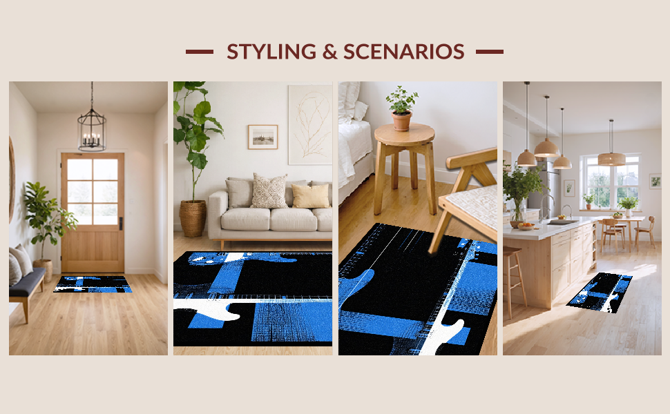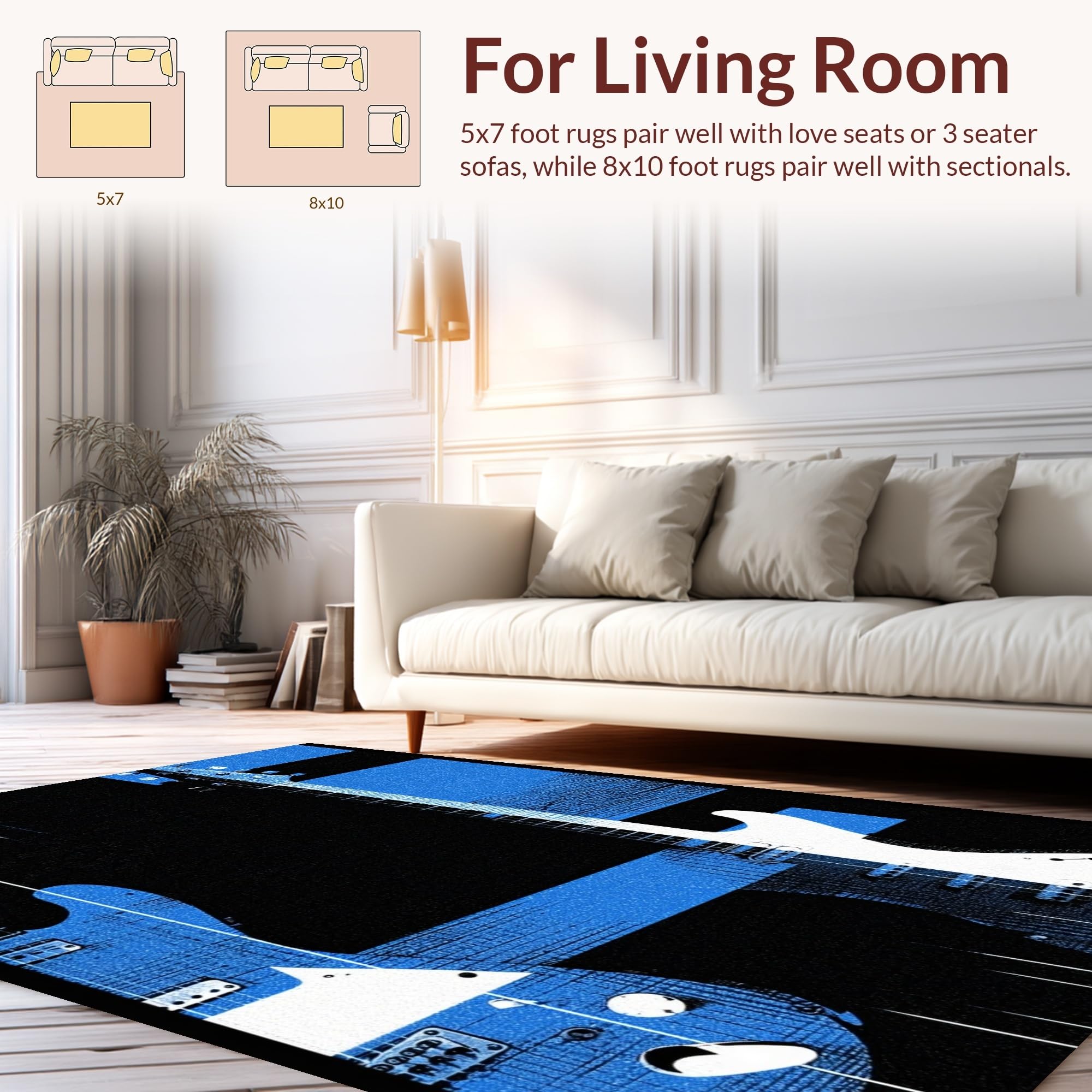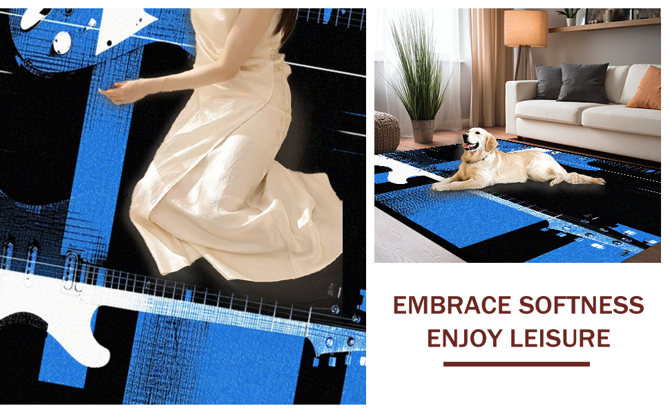 Ultra Soft Area Rug, Non Slip, Stain Resistant, Washable Area Rugs for Living Room, Bedroom, Dynamic Rhythm-Inspired Pattern(Blue) Overview: