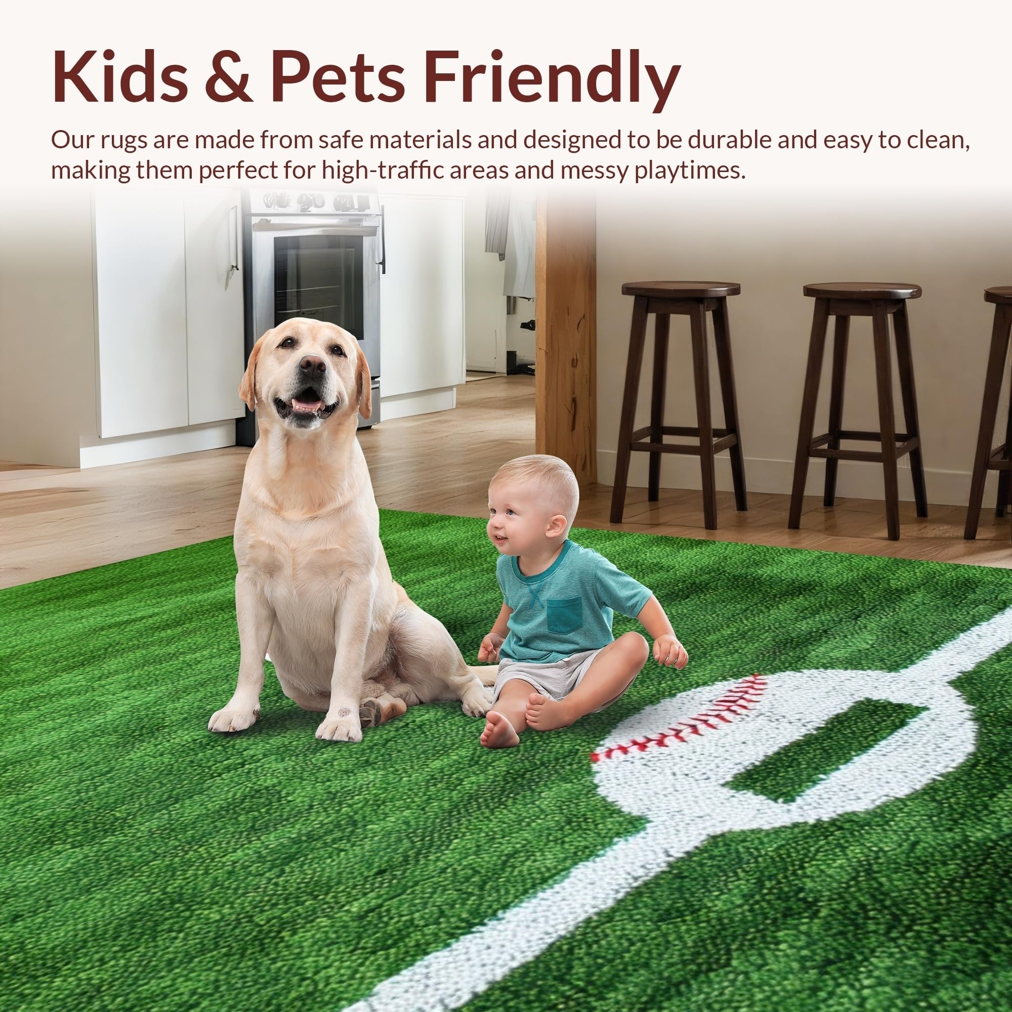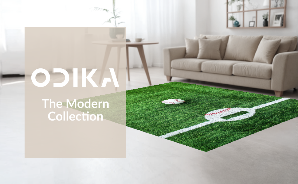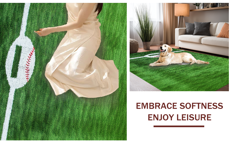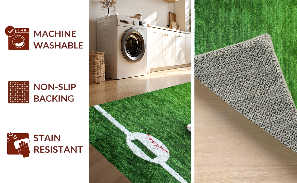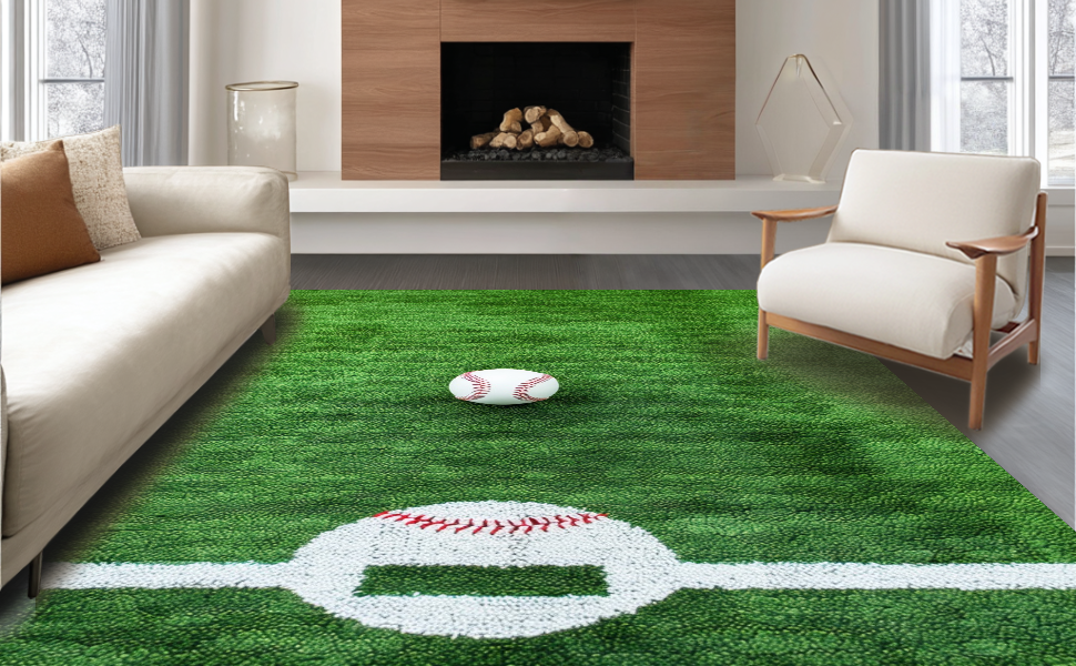 Ultra Soft Area Rug, Non Slip, Stain Resistant, Washable Area Rugs for Living Room, Bedroom, Dynamic Rustic Baseball Pattern(Green) Overview: