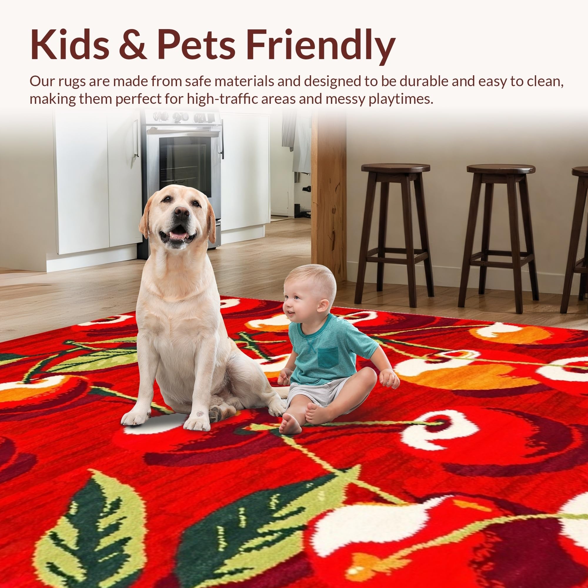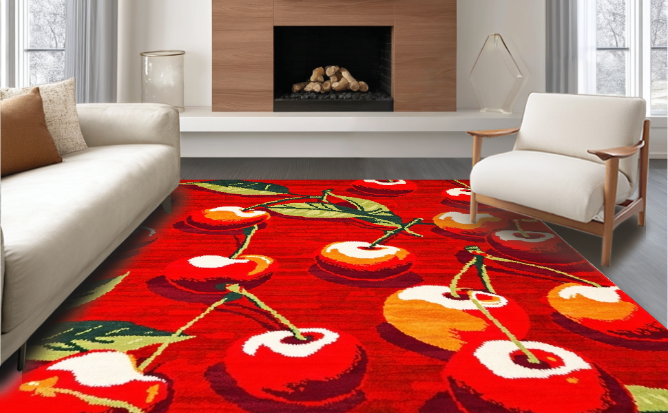 Ultra Soft Area Rug, Non Slip, Stain Resistant, Washable Area Rugs for Living Room, Bedroom, Dynamic Rustic Red Blossom Flair(Red) Overview: