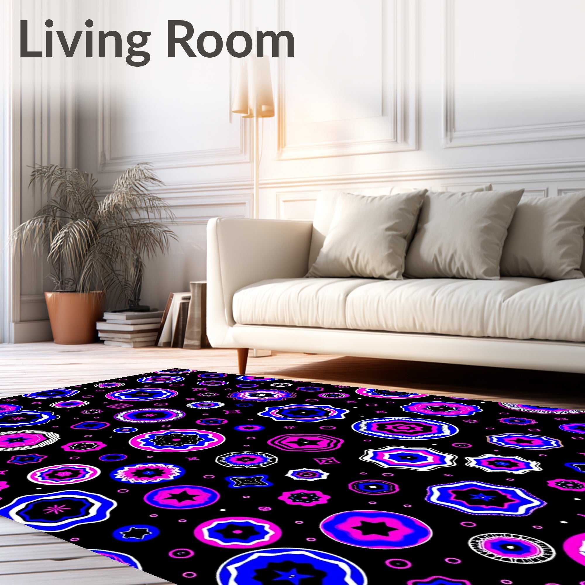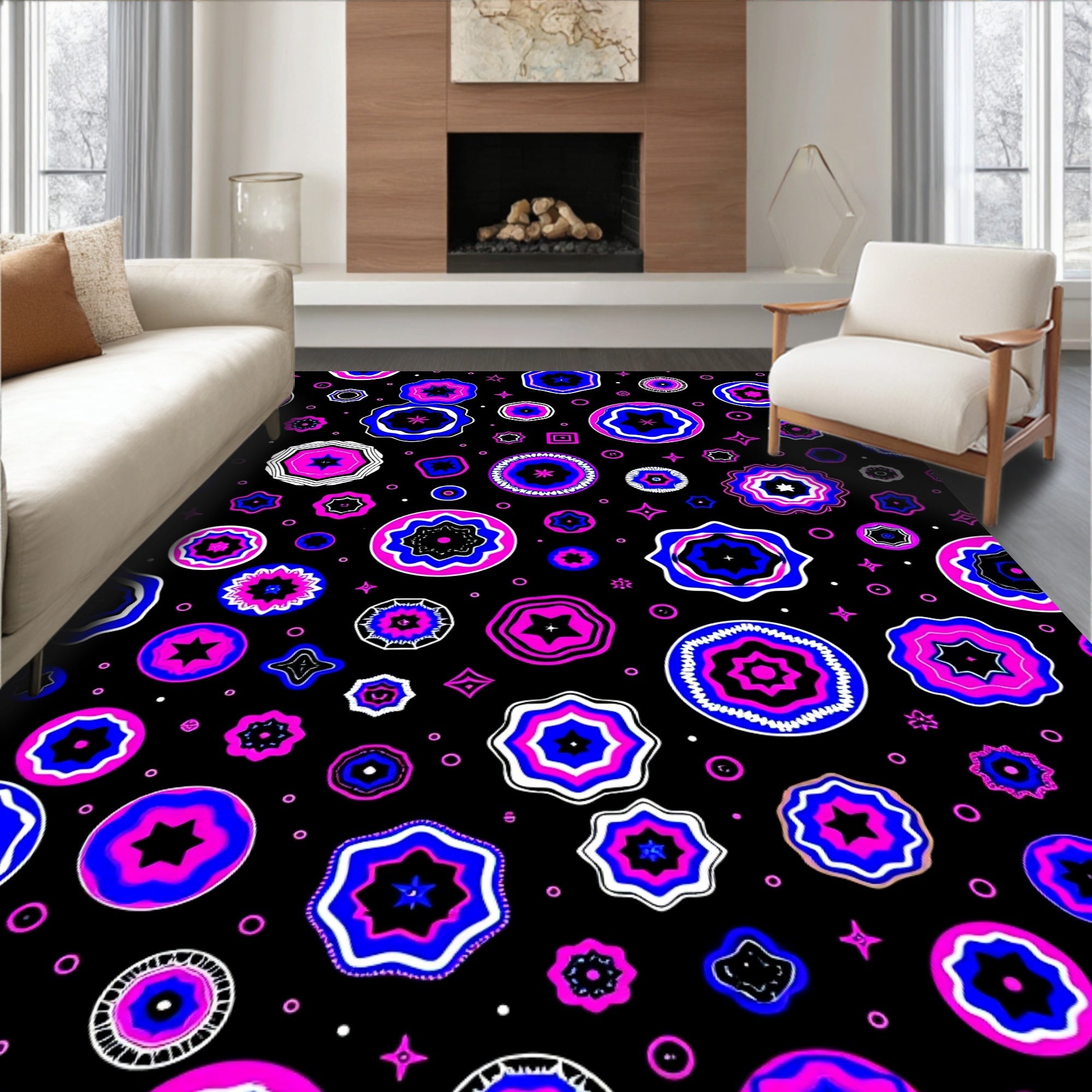 Ultra Soft Area Rug, Non Slip, Stain Resistant, Washable Area Rugs for Living Room, Bedroom, Dynamic Starfield Inspired Design with Interlocking Celestial Shapes(Black) Overview:
