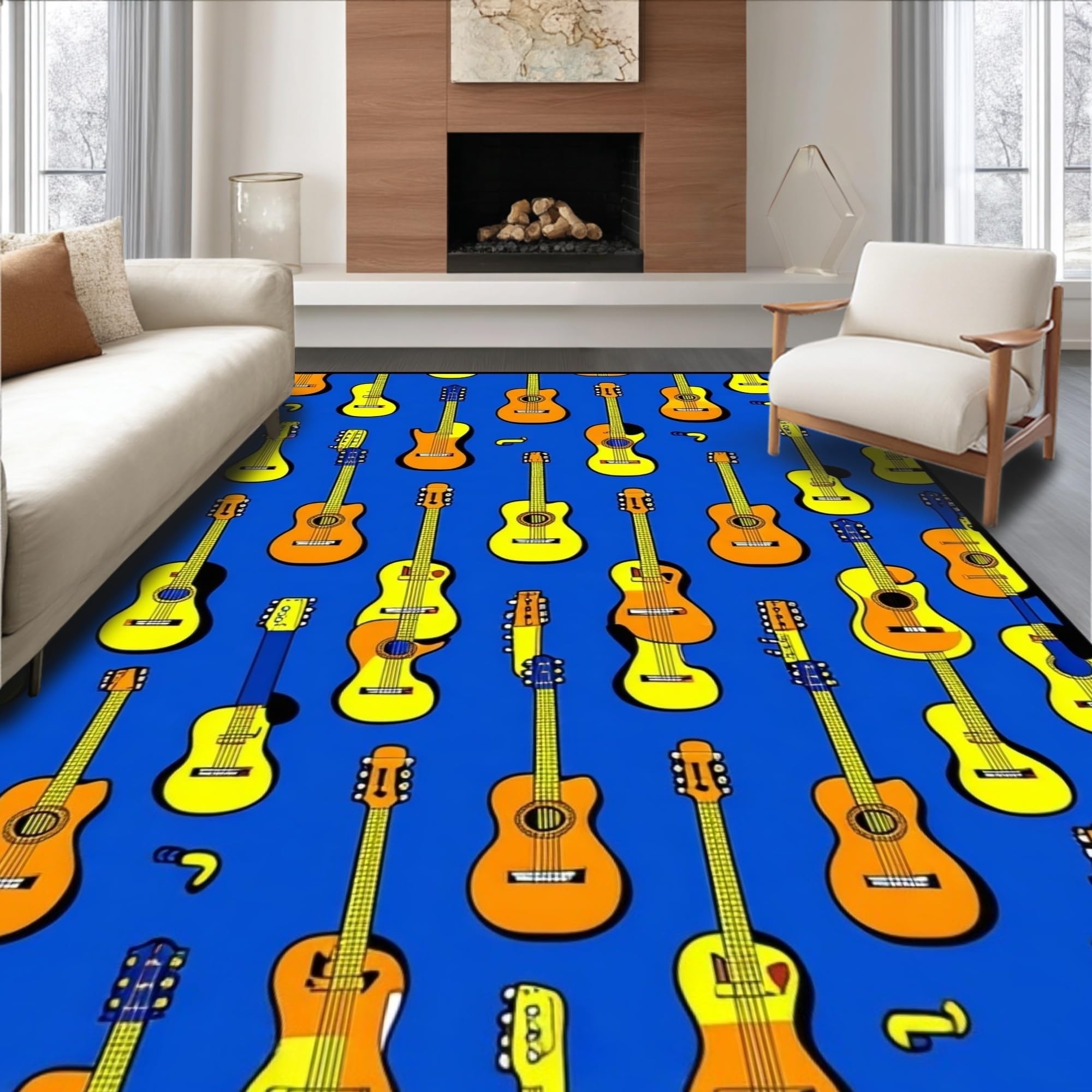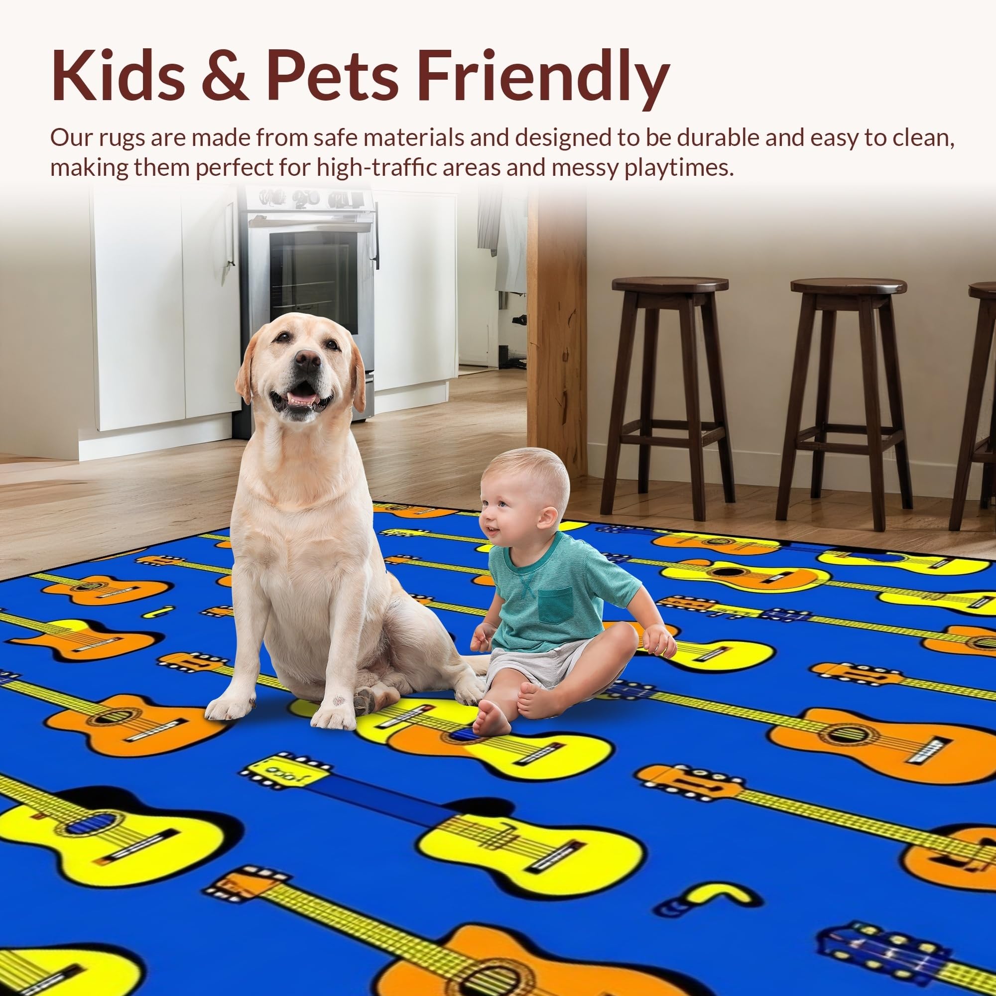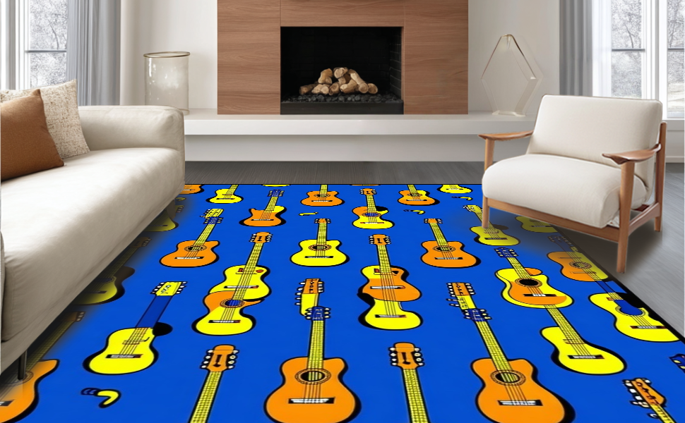 Ultra Soft Area Rug, Non Slip, Stain Resistant, Washable Area Rugs for Living Room, Bedroom, Dynamic Strumming Pattern Inspiration(Blue) Overview: