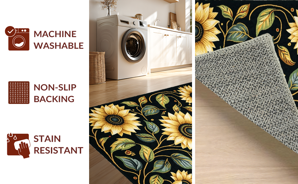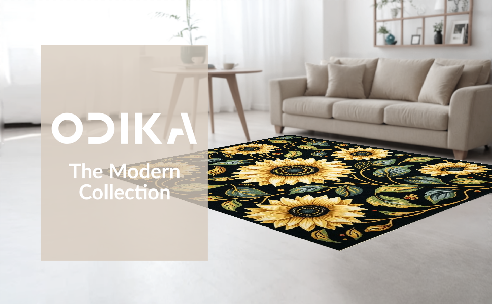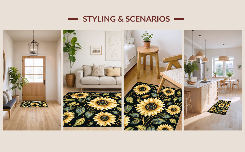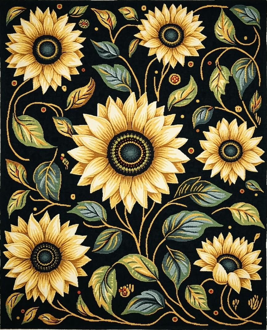 Ultra Soft Area Rug, Non Slip, Stain Resistant, Washable Area Rugs for Living Room, Bedroom, Dynamic Sunflower Graphic Element(Black) Overview: