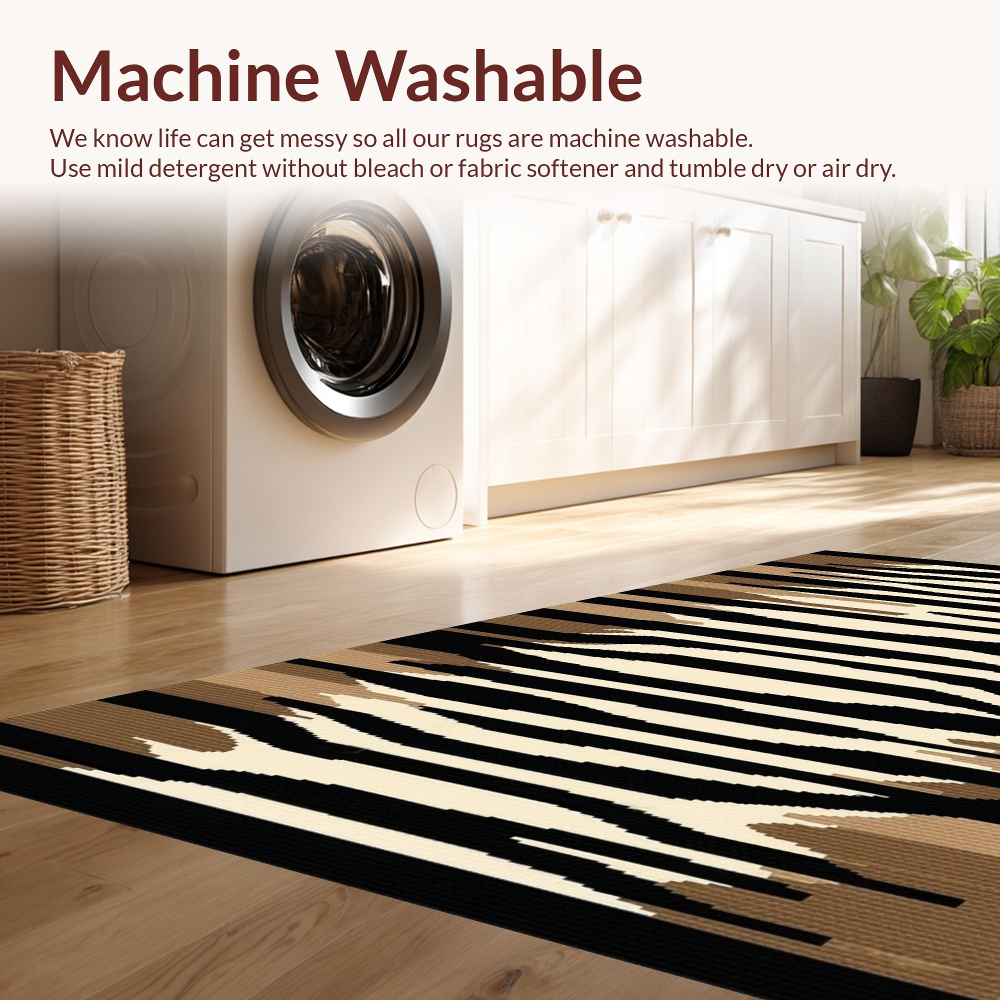 - Machine Washable: Our rugs can be easily thrown in the wash machine.