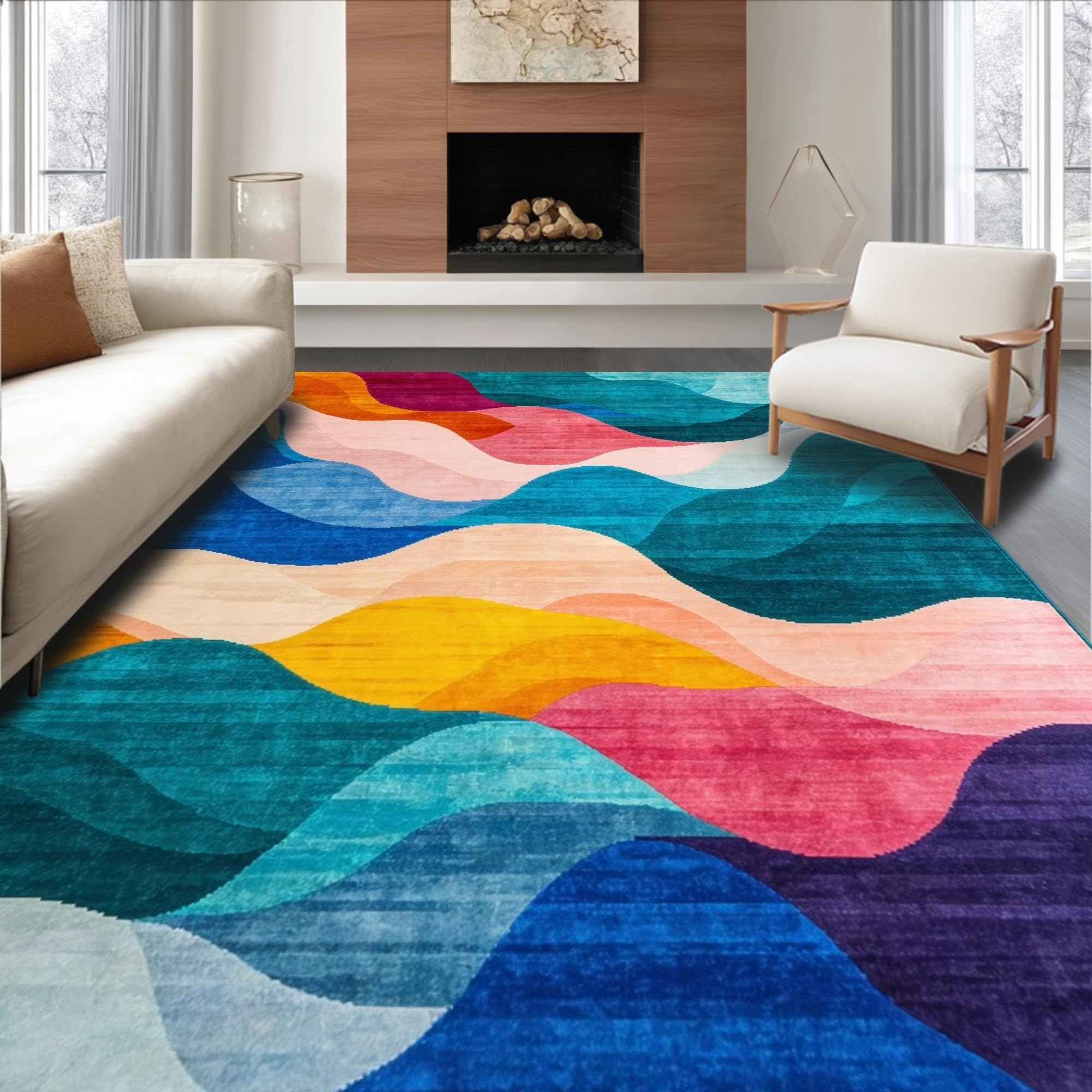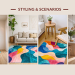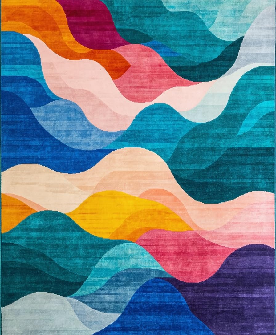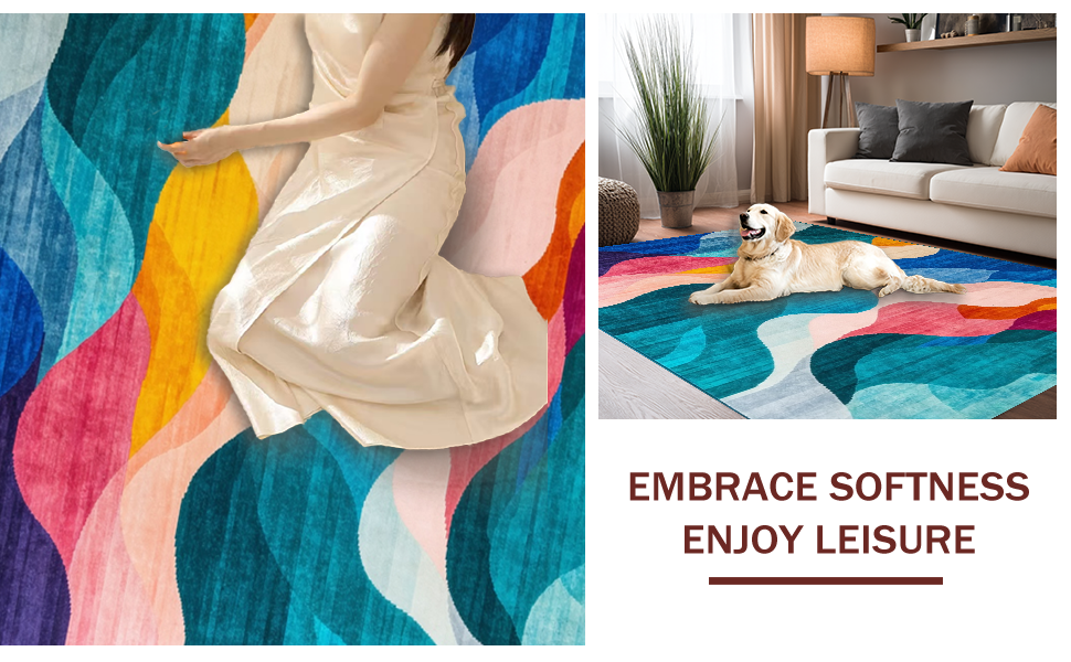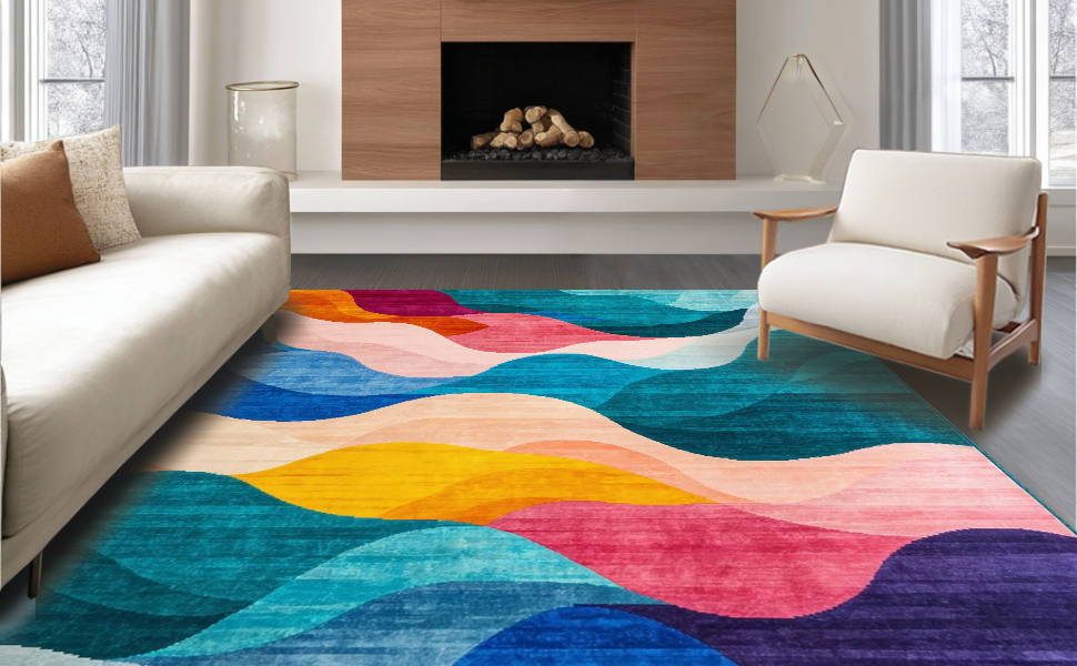 Ultra Soft Area Rug, Non Slip, Stain Resistant, Washable Area Rugs for Living Room, Bedroom, Dynamic Vibrant Flowing Pattern(Blue) Overview: