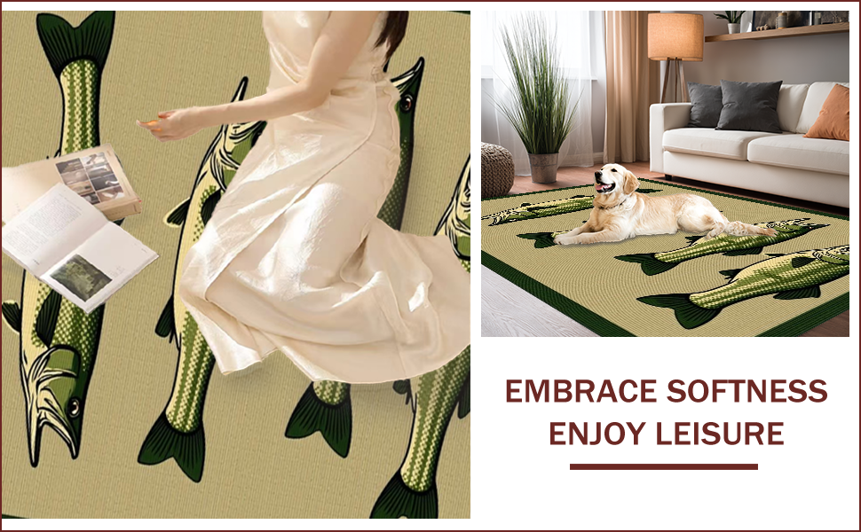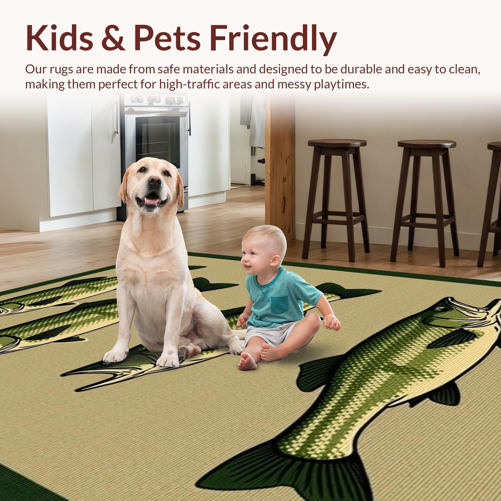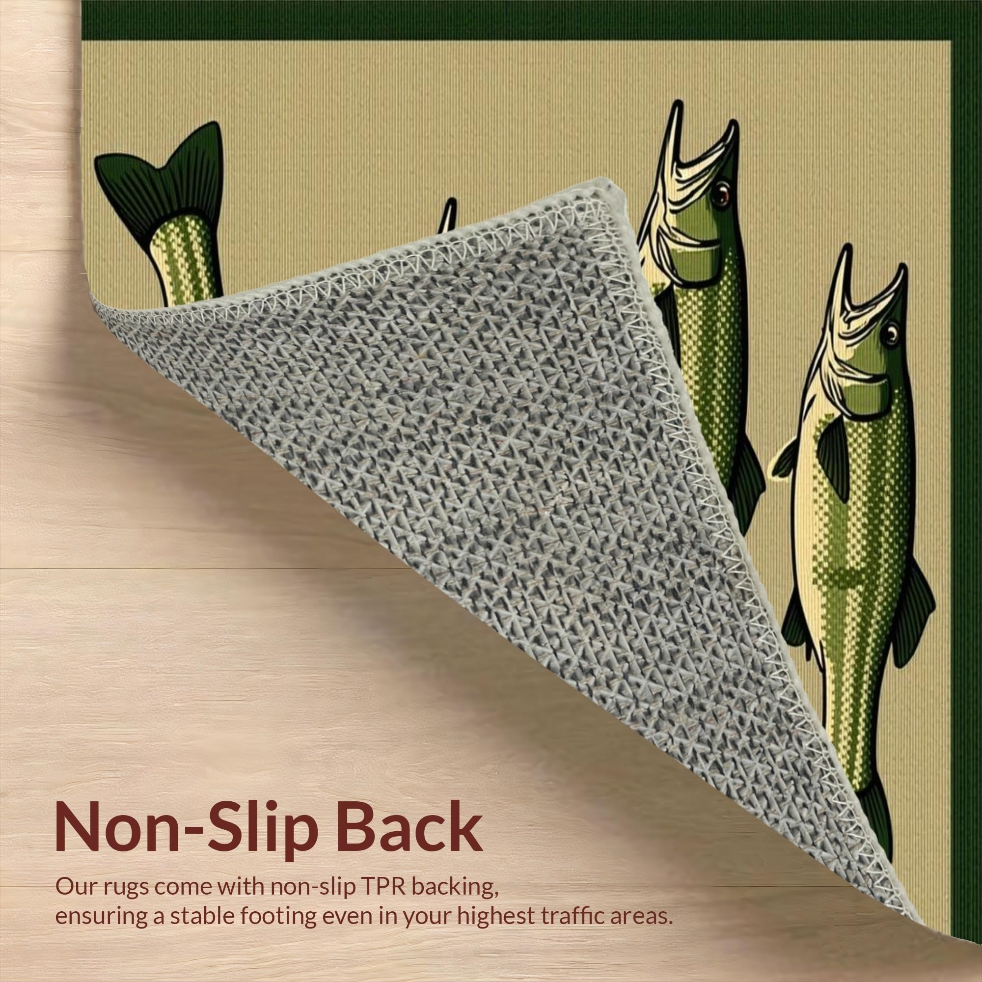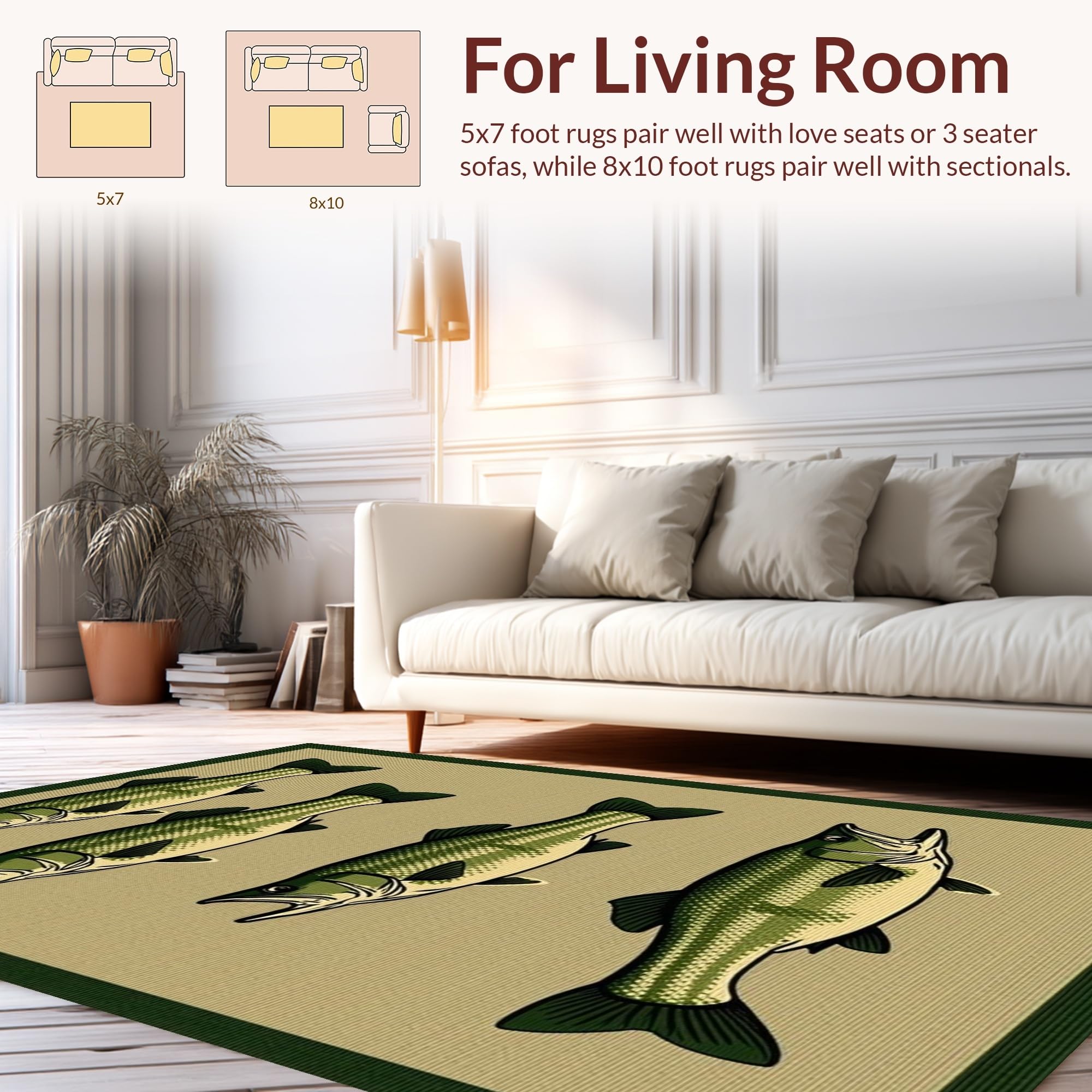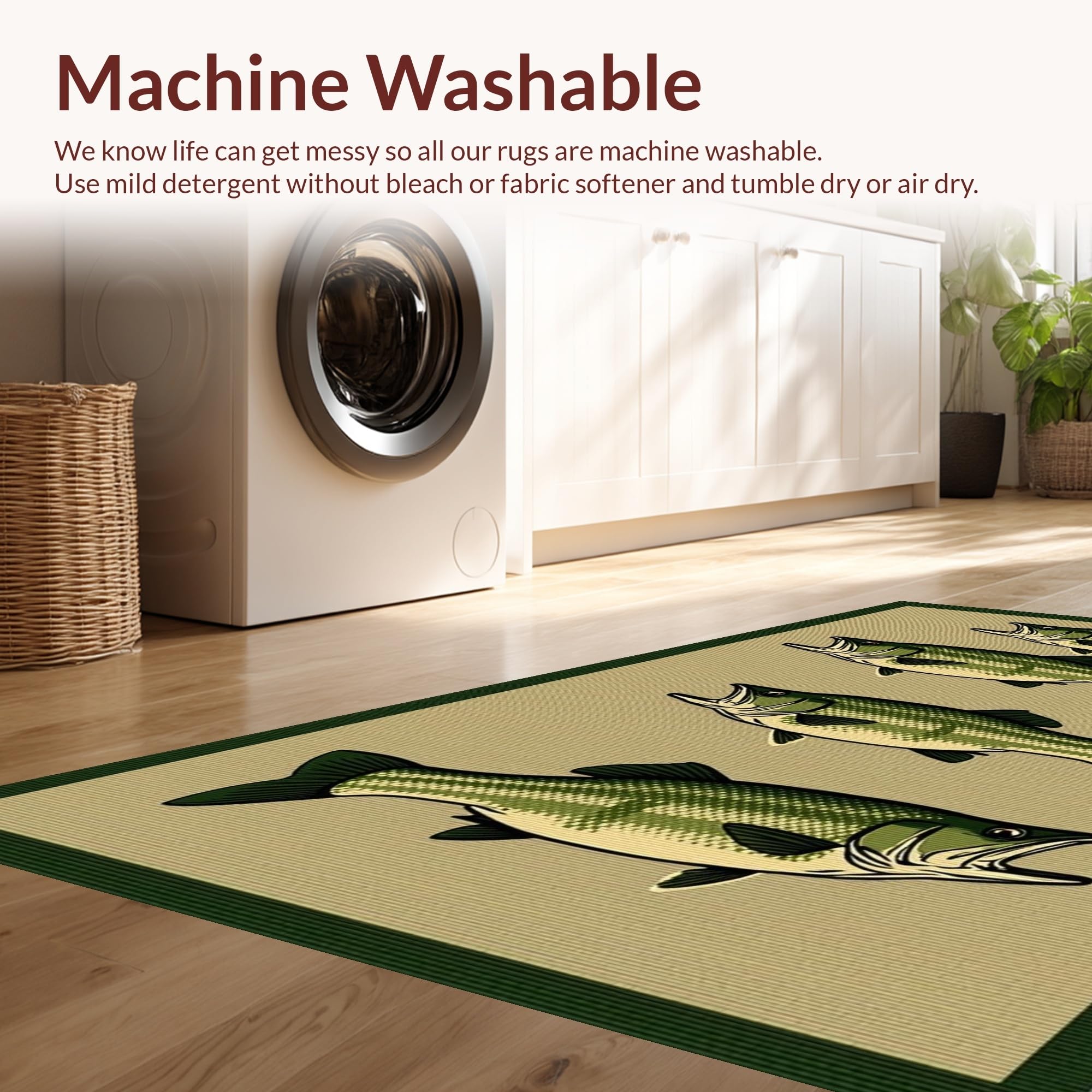 Ultra Soft Area Rug, Non Slip, Stain Resistant, Washable Area Rugs for Living Room, Bedroom, Earthy Bass Motif with Water Splash(Beige) Overview: