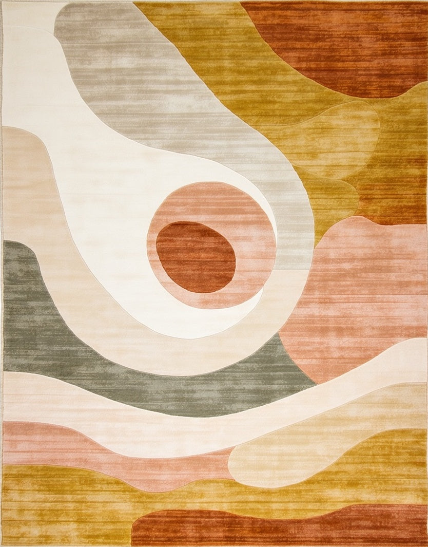 Ultra Soft Area Rug, Non Slip, Stain Resistant, Washable Area Rugs for Living Room, Bedroom, Earthy Spiral Round Featuring Layered Beige Swirls and Natural Accents(Beige) Overview: