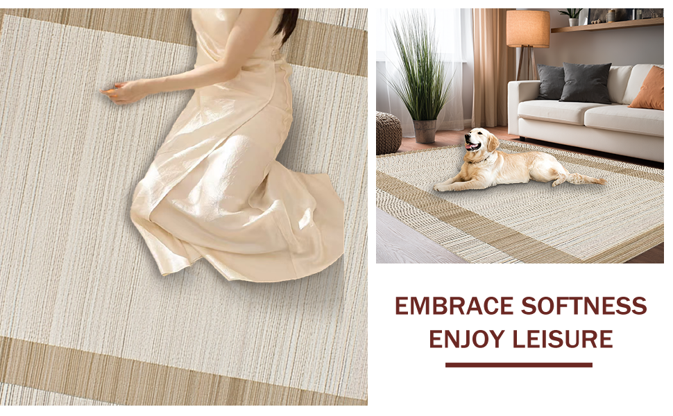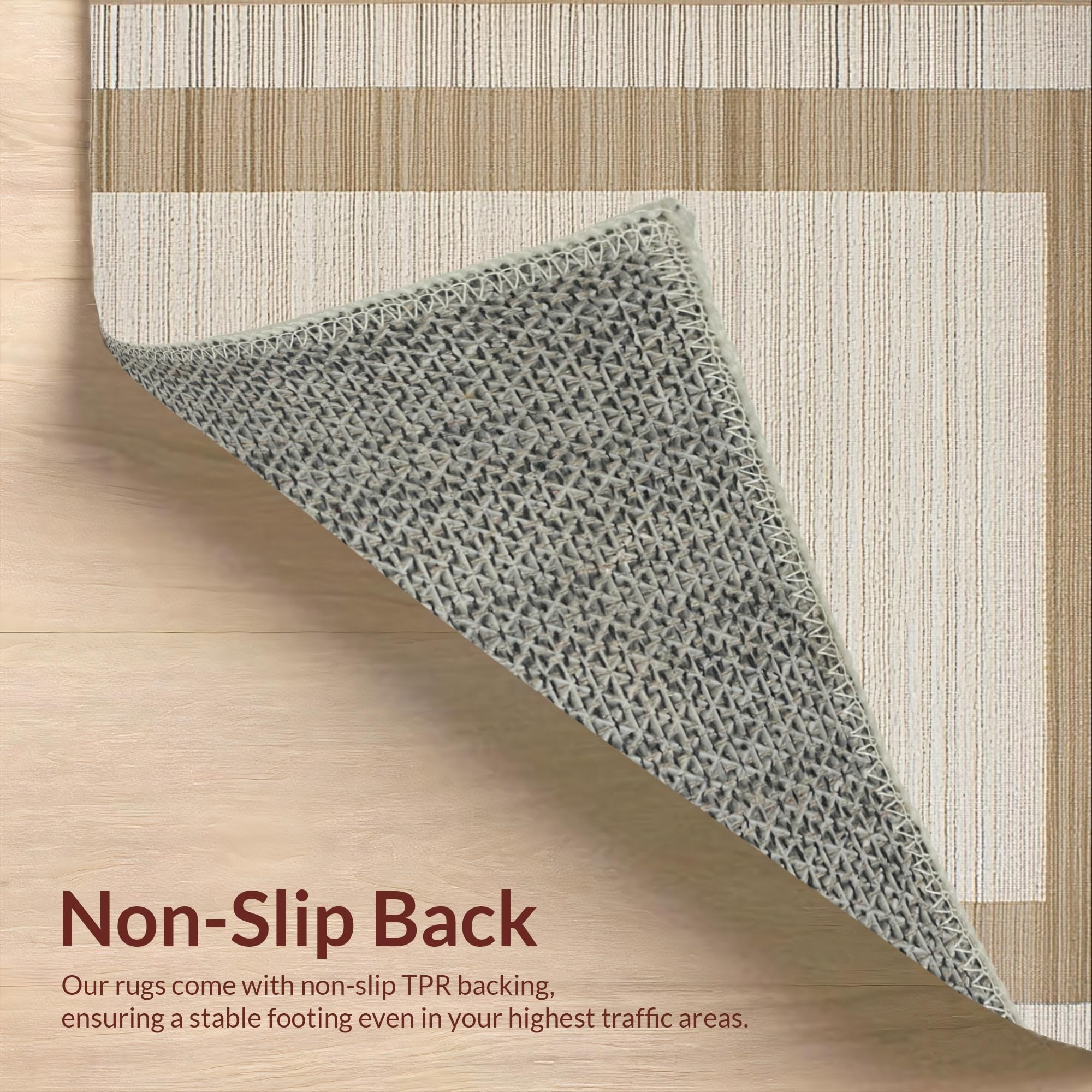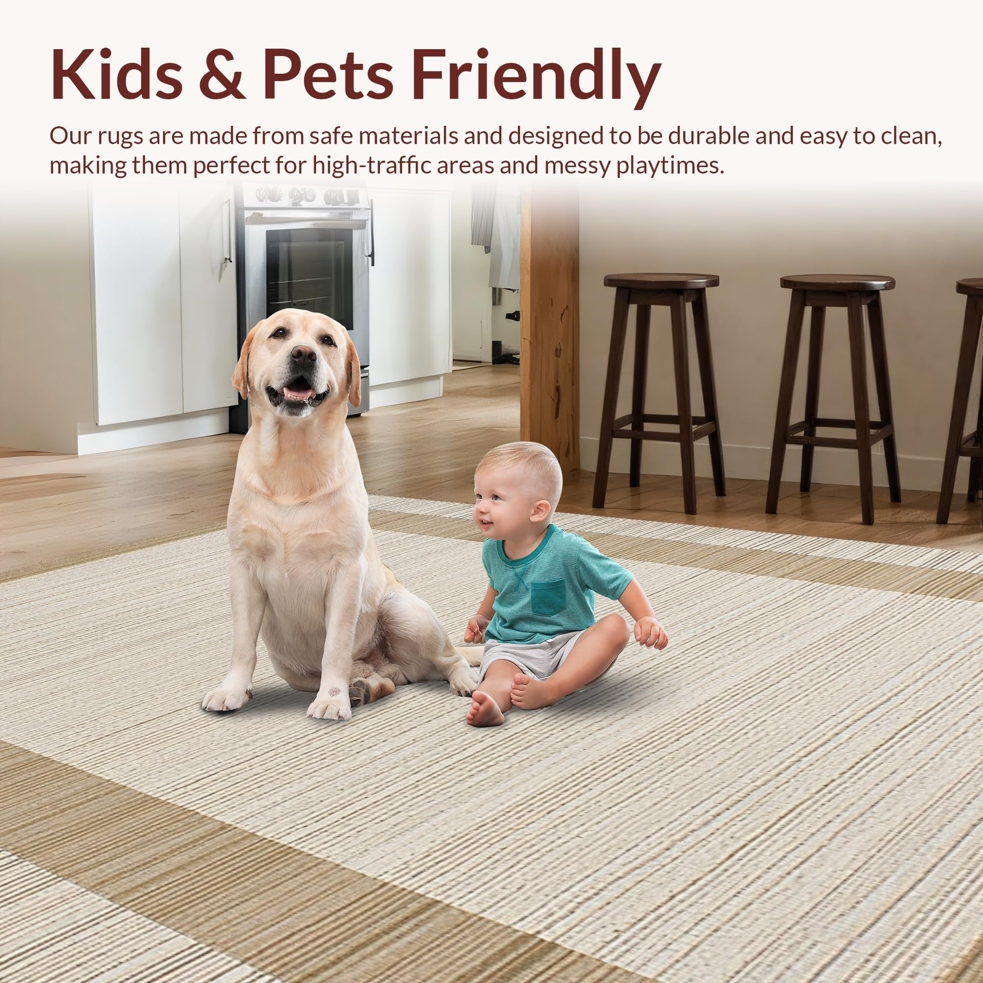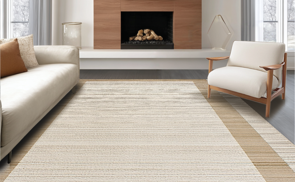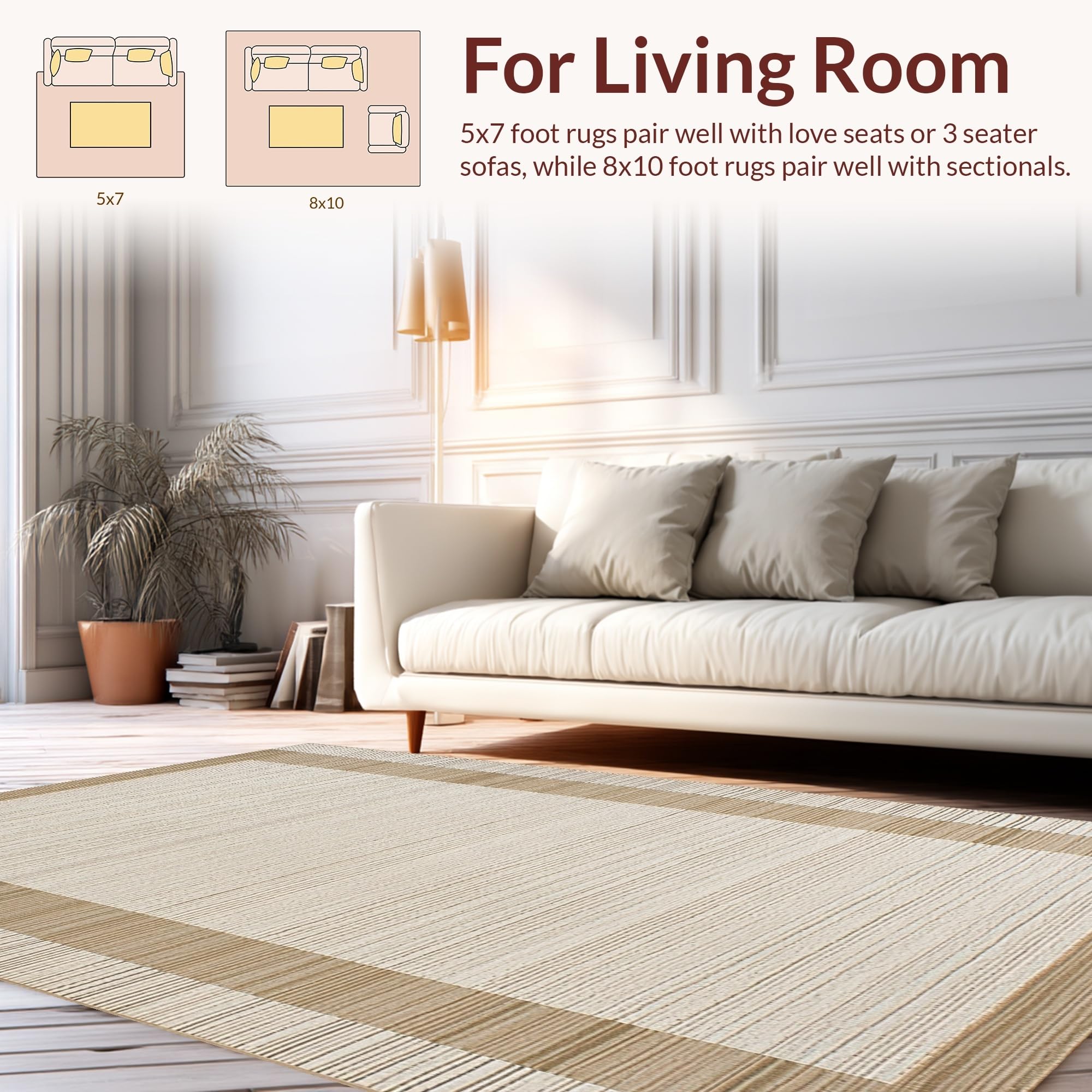 Ultra Soft Area Rug, Non Slip, Stain Resistant, Washable Area Rugs for Living Room, Bedroom, Earthy Textured Circular Accent(Beige) Overview: