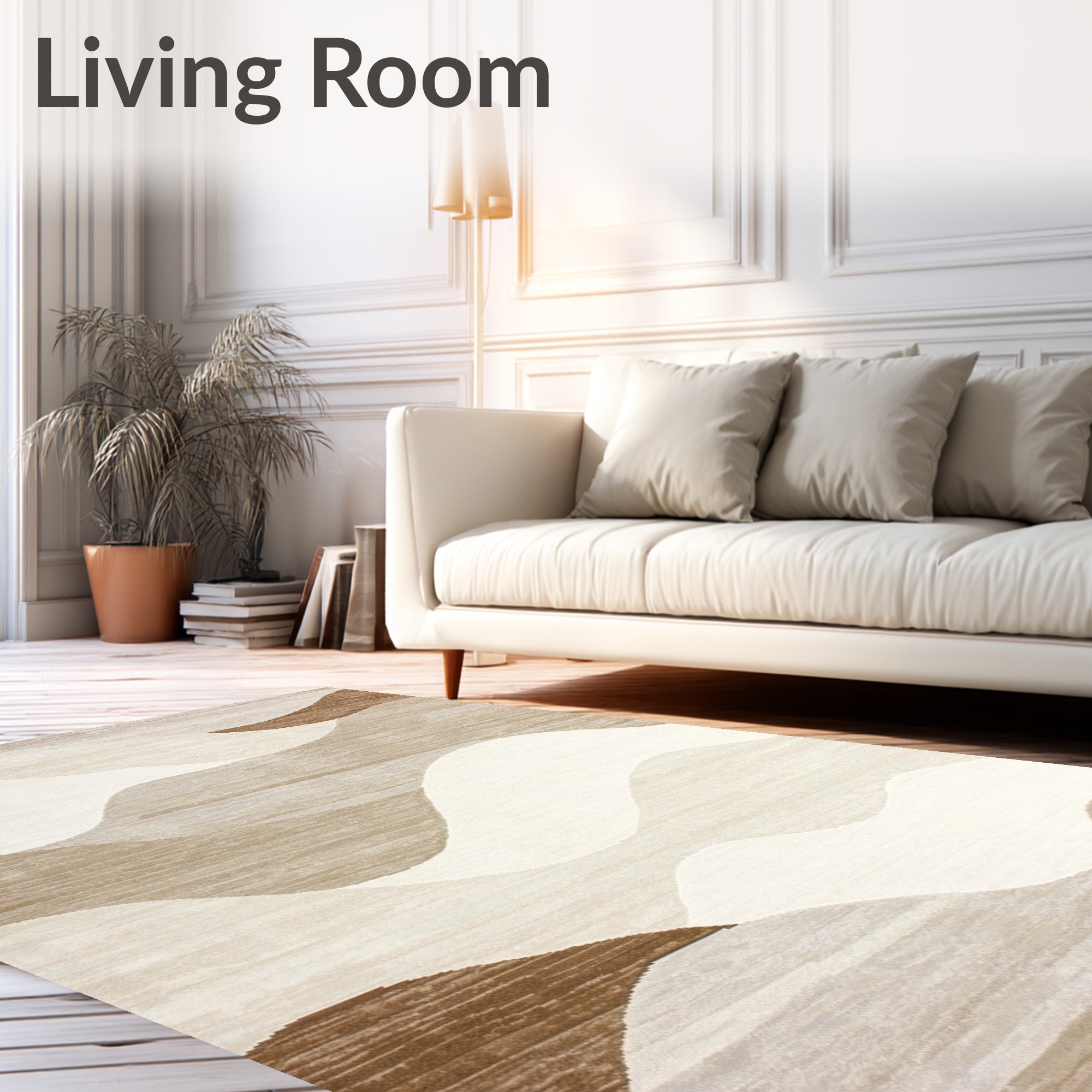 Ultra Soft Area Rug, Non Slip, Stain Resistant, Washable Area Rugs for Living Room, Bedroom, Earthy Tone Area with Abstract Wave(Beige) Overview: