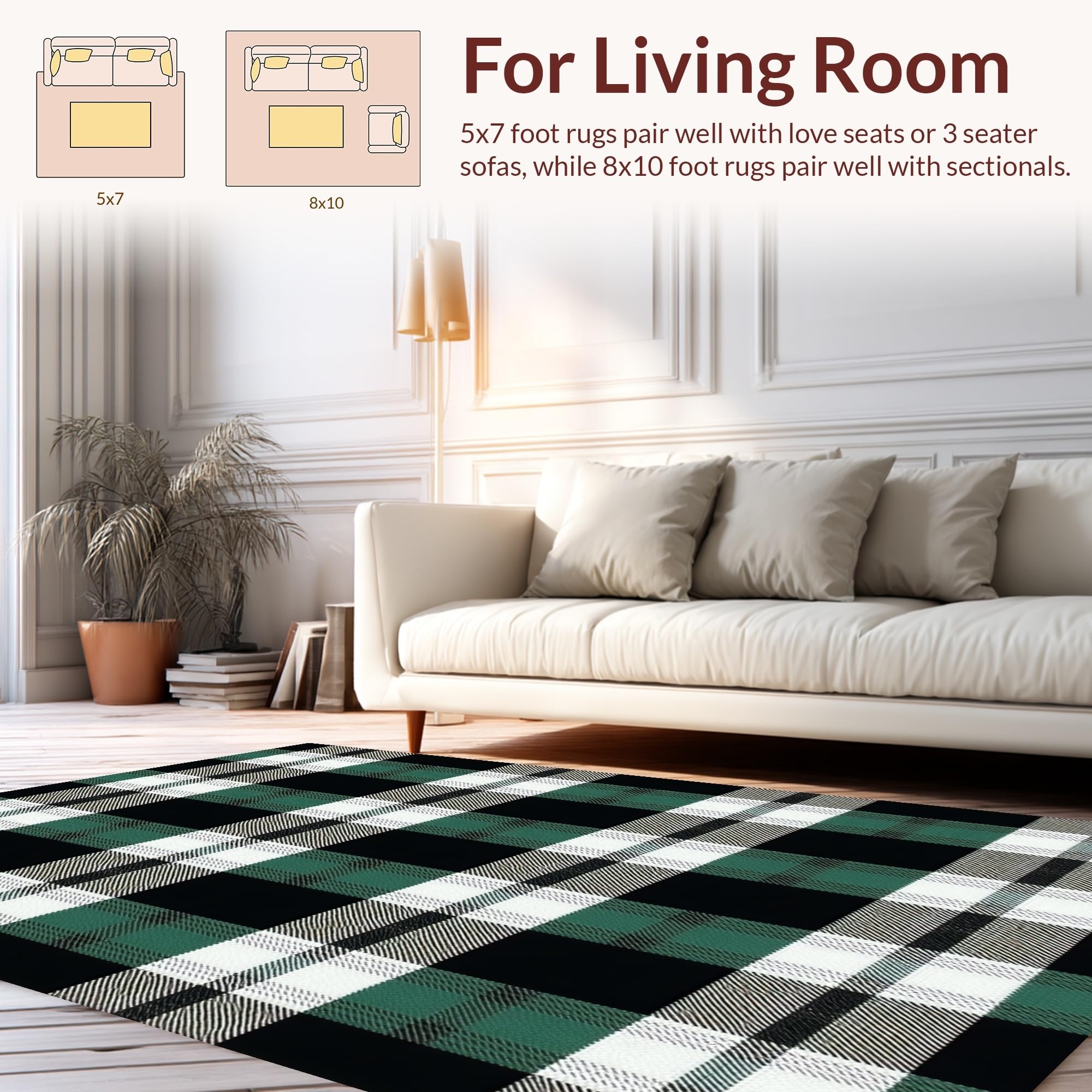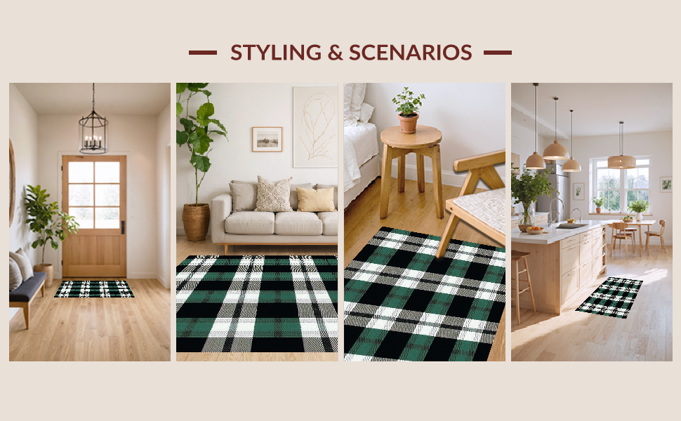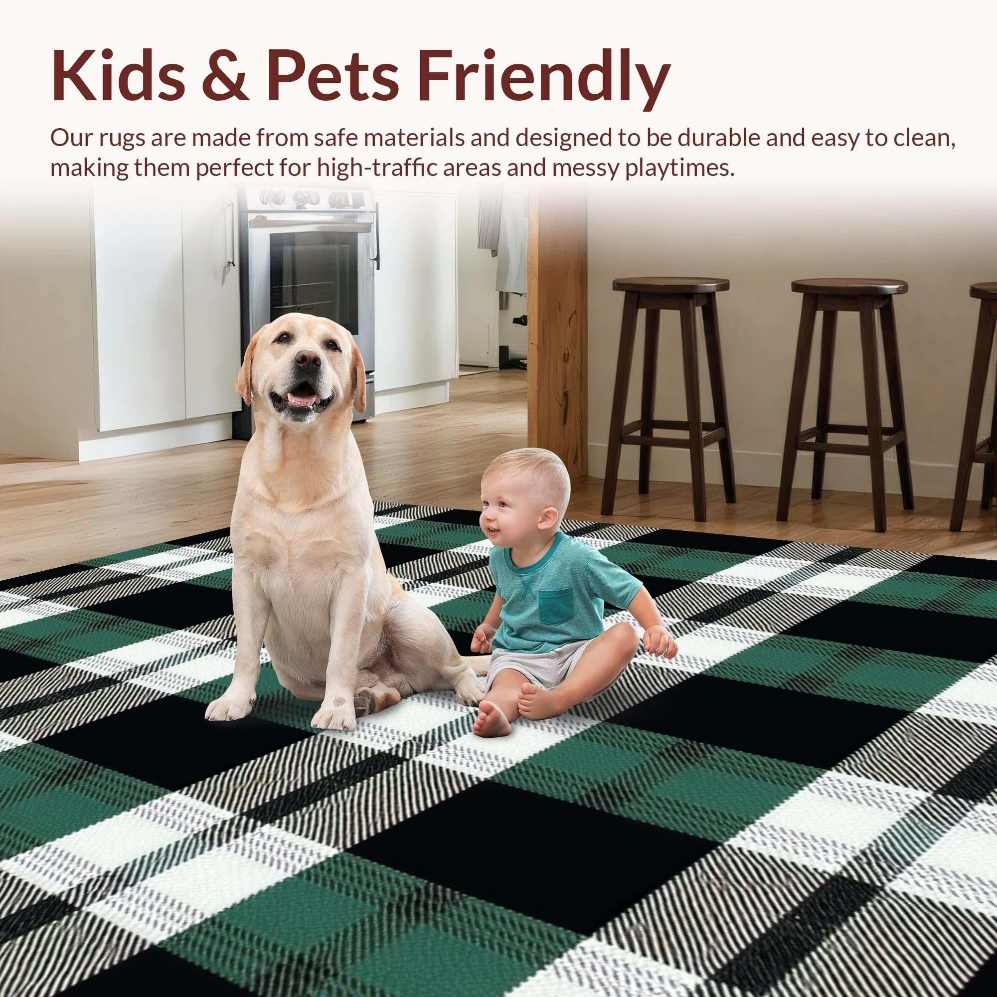 Ultra Soft Area Rug, Non Slip, Stain Resistant, Washable Area Rugs for Living Room, Bedroom, Earthy Tone Striped Farmhouse Style(Black) Overview:
