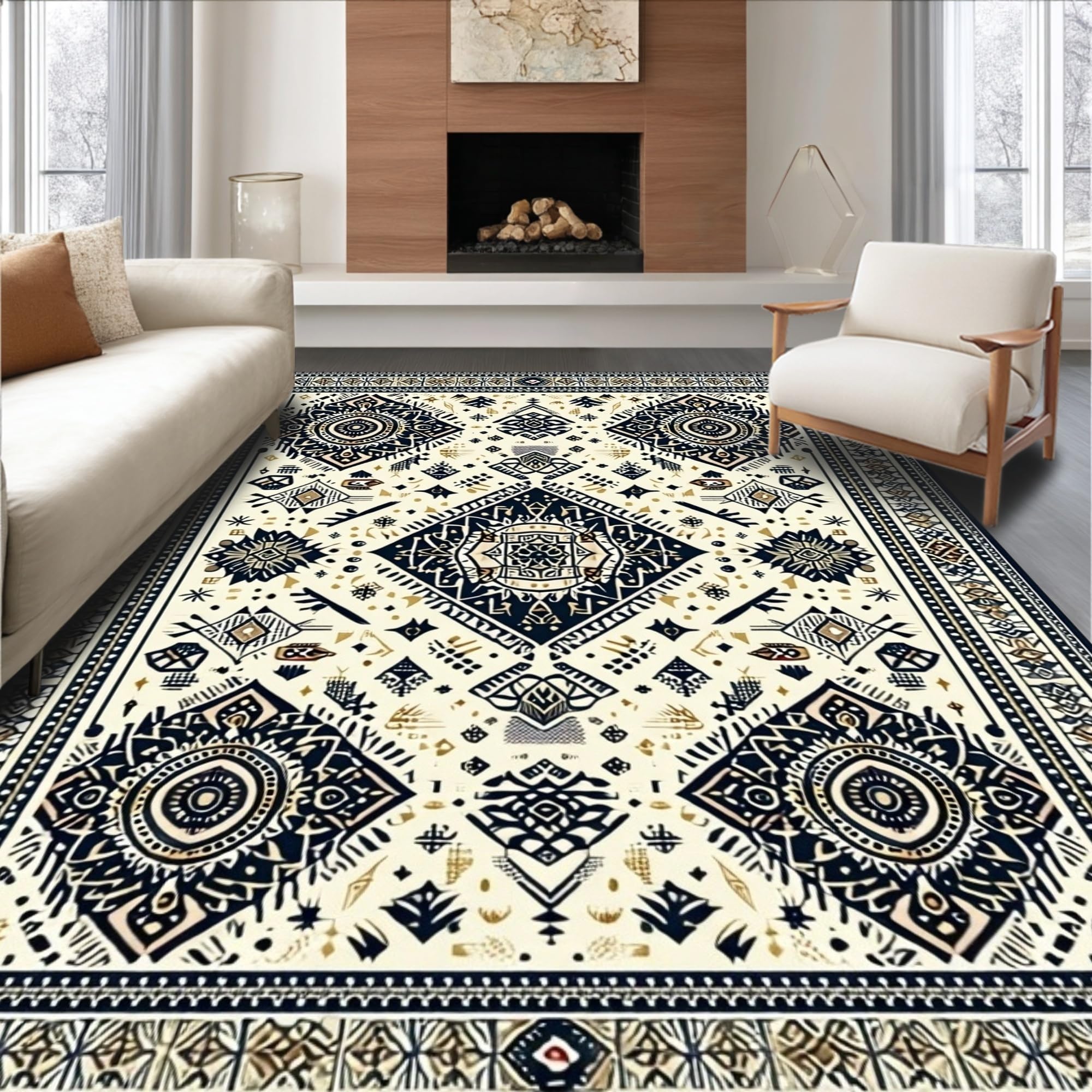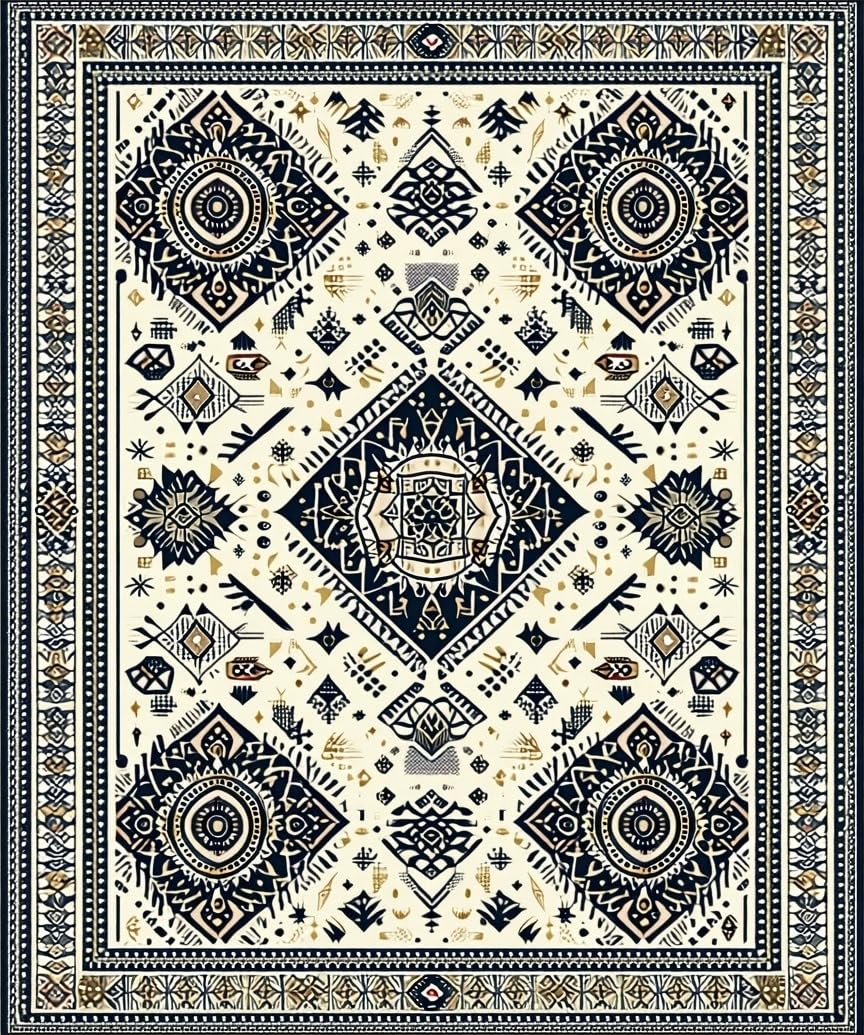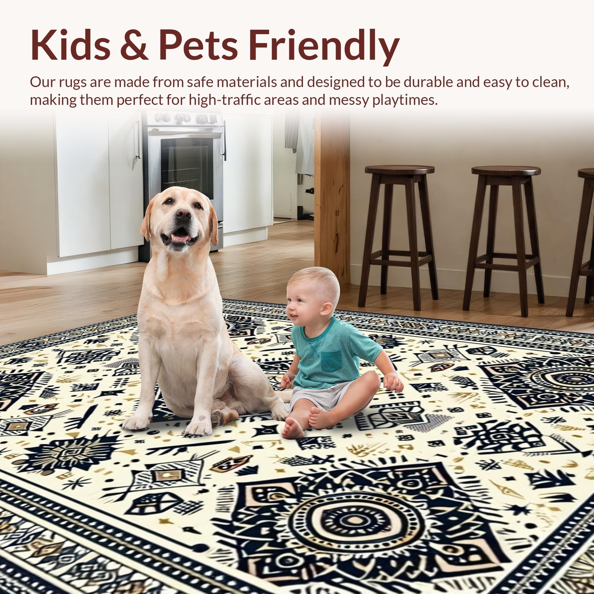 Ultra Soft Area Rug, Non Slip, Stain Resistant, Washable Area Rugs for Living Room, Bedroom, Earthy Toned Circular Design(Beige) Overview: