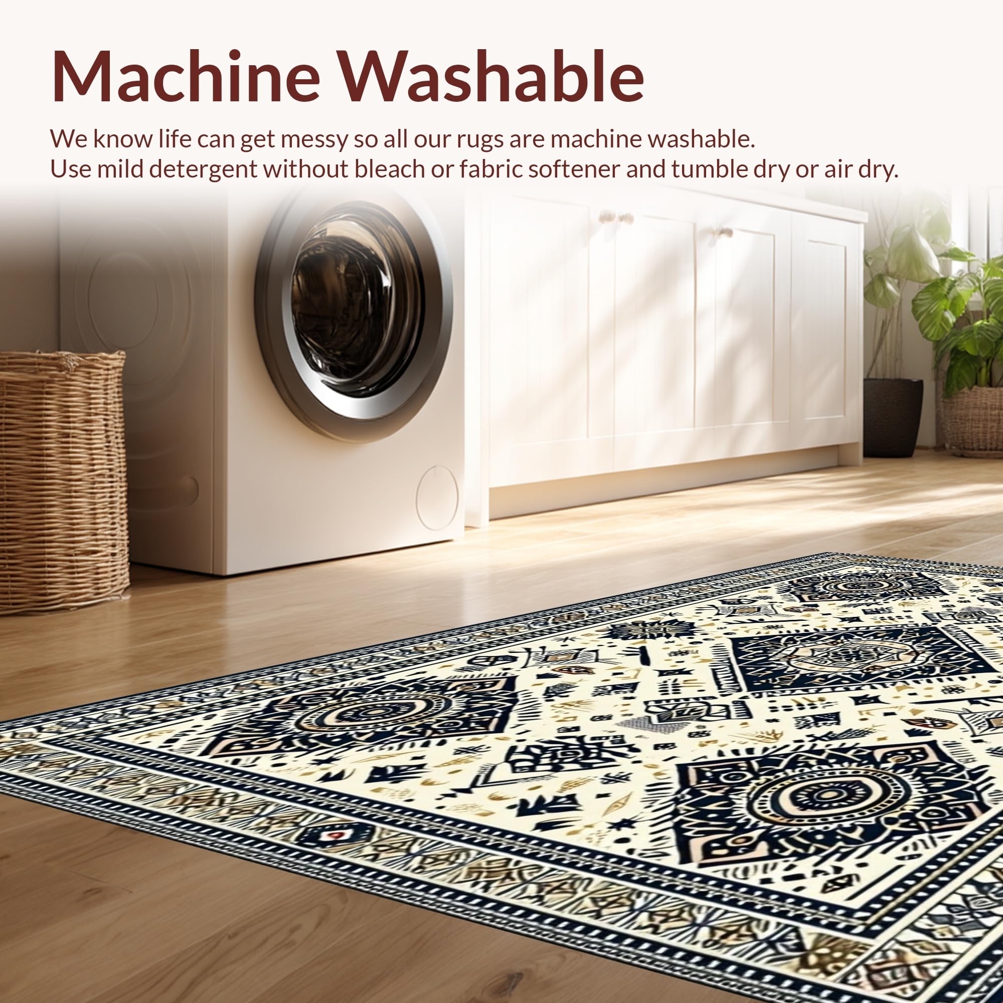 - Machine Washable: Our rugs can be easily thrown in the wash machine.