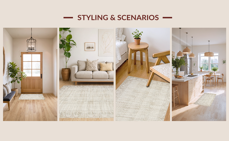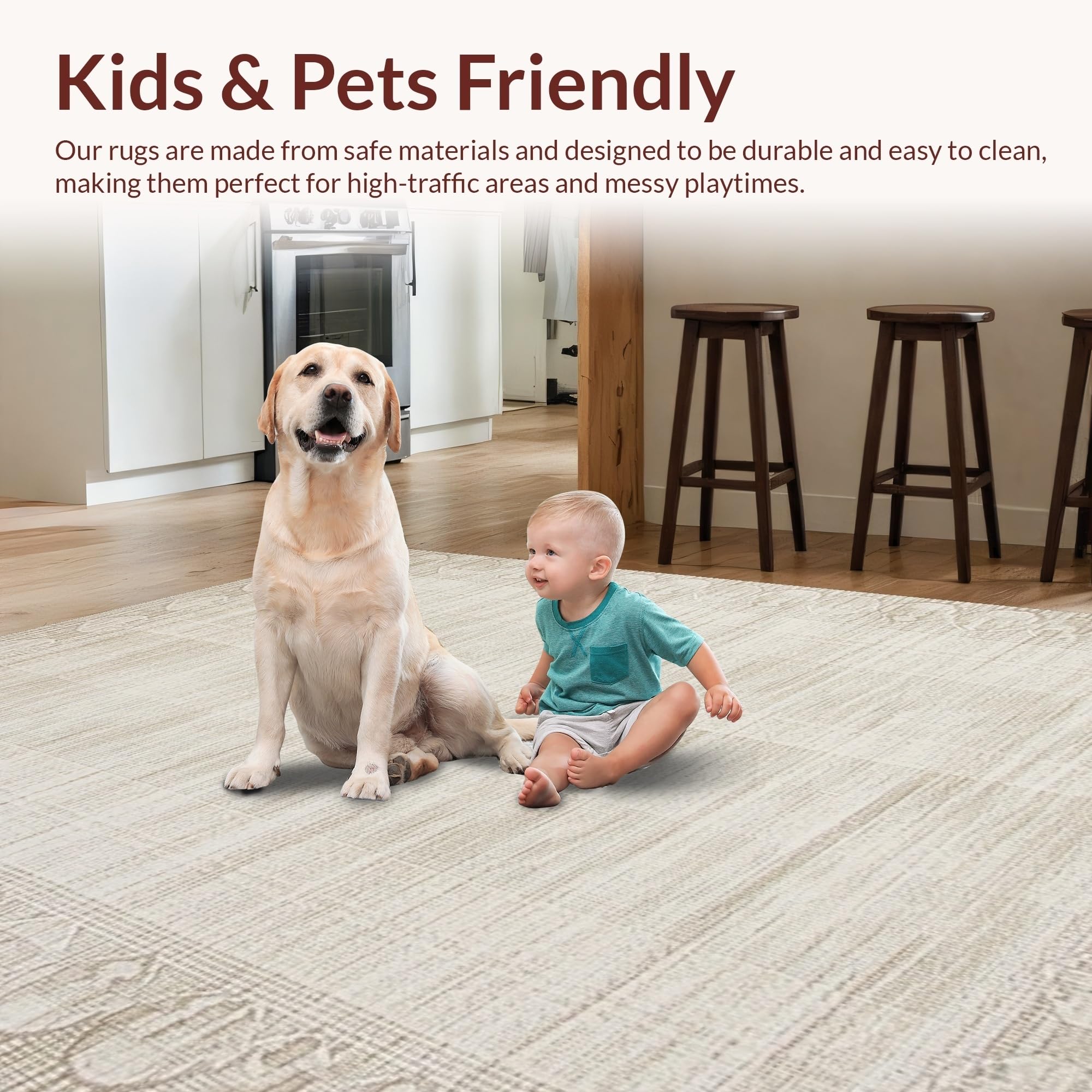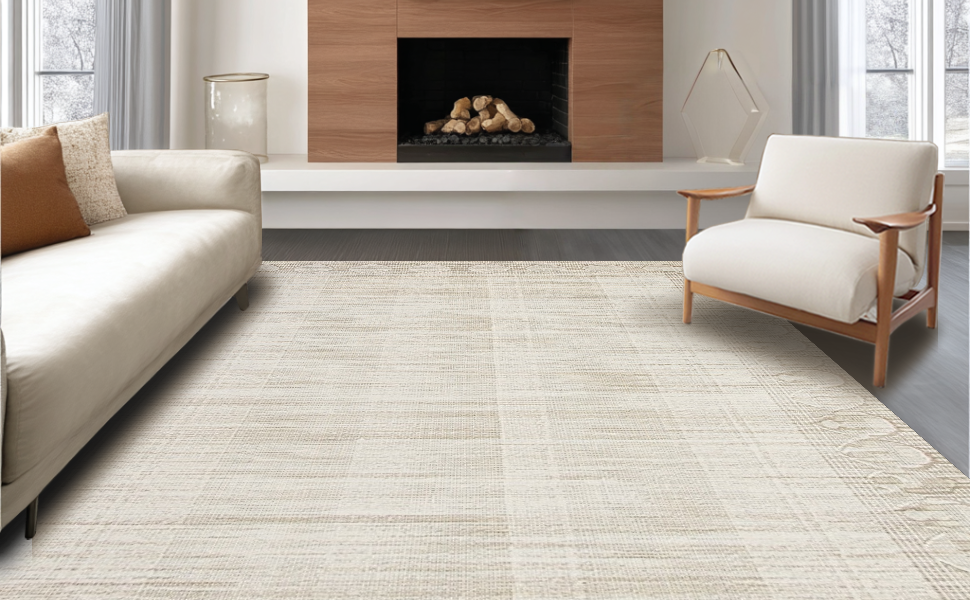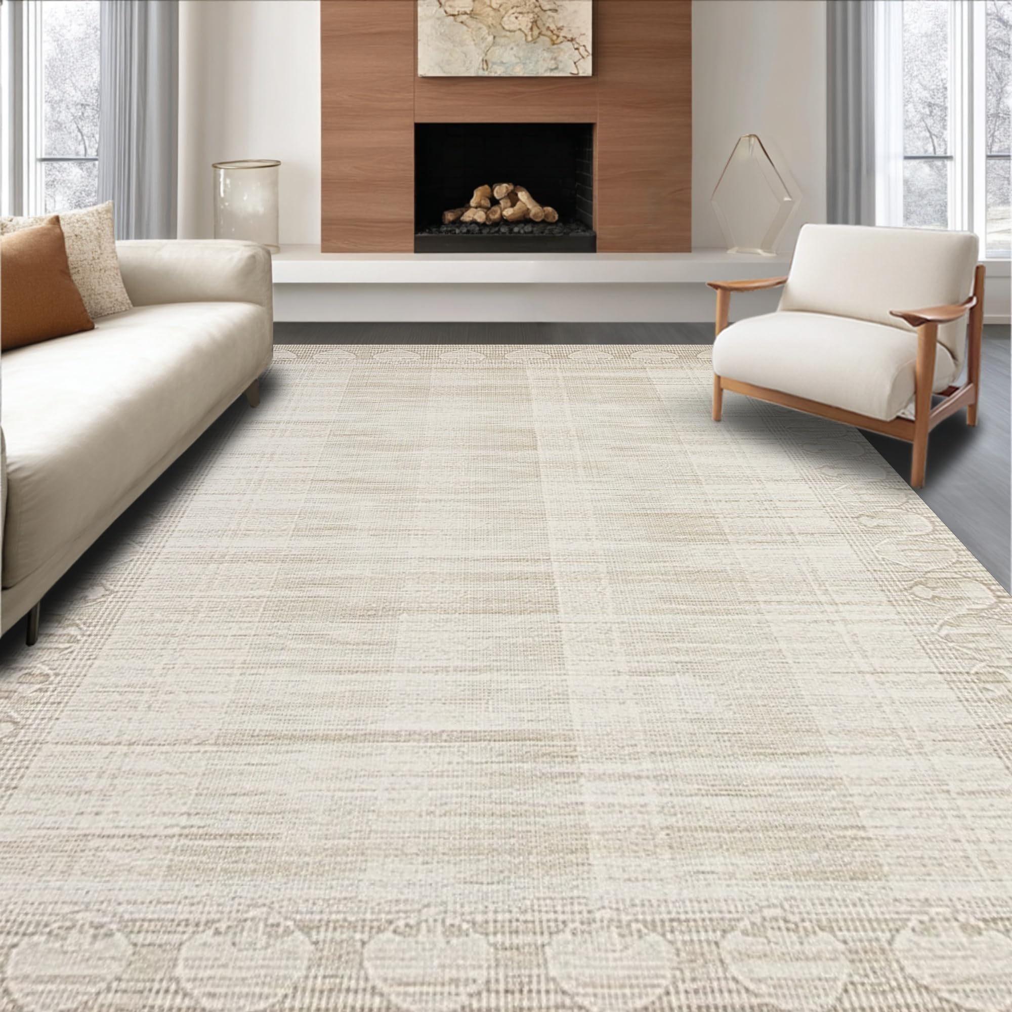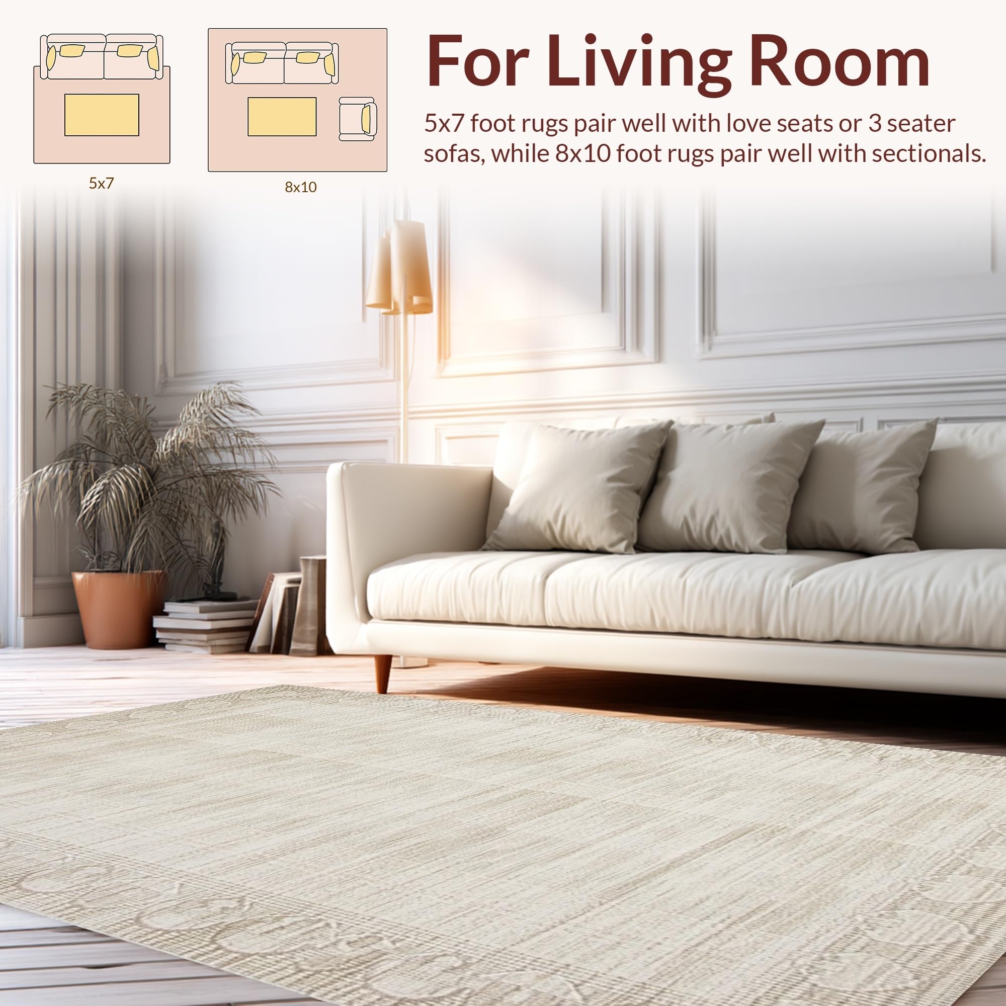 Ultra Soft Area Rug, Non Slip, Stain Resistant, Washable Area Rugs for Living Room, Bedroom, Earthy Toned Curved Pattern(Beige) Overview: