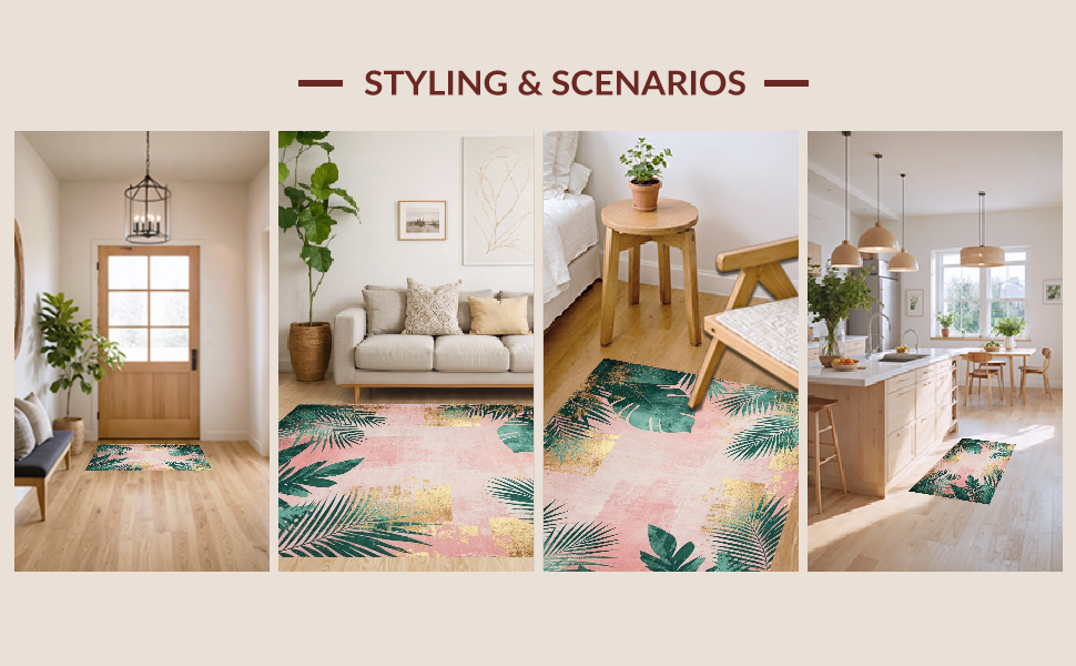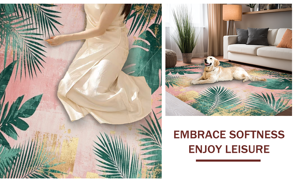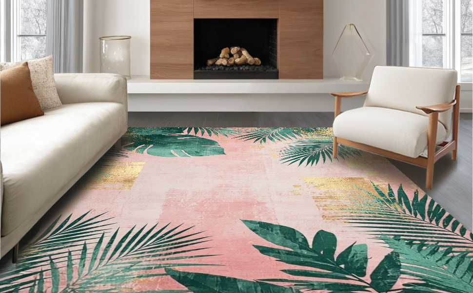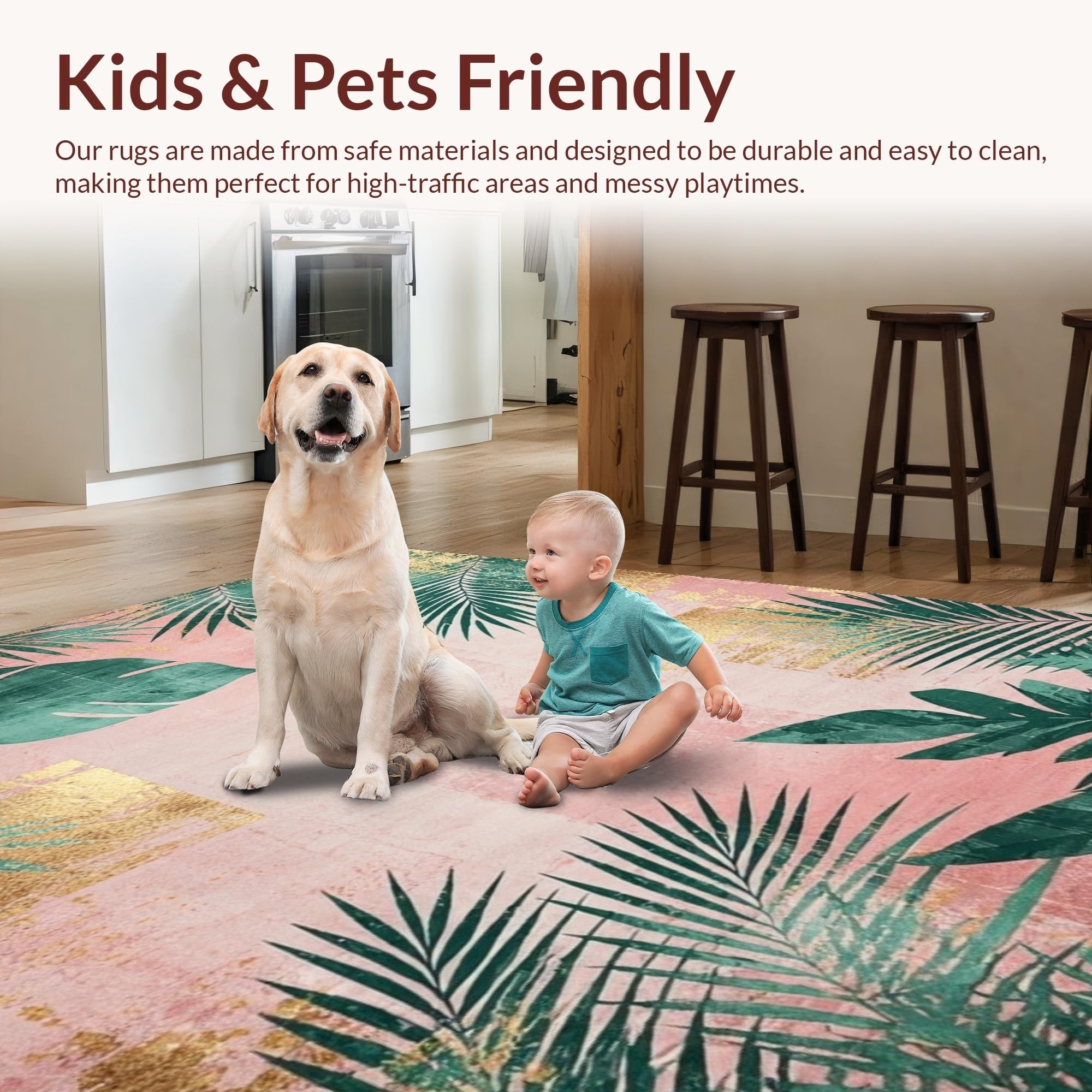 Ultra Soft Area Rug, Non Slip, Stain Resistant, Washable Area Rugs for Living Room, Bedroom, Earthy Toned Geometric Arrangement(Pink) Overview:
