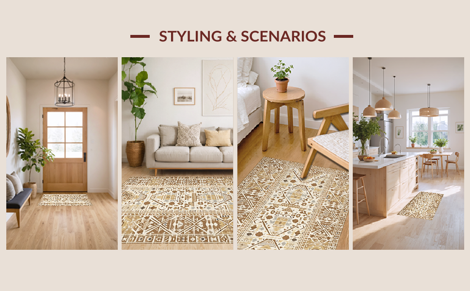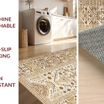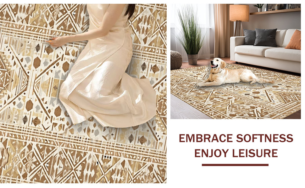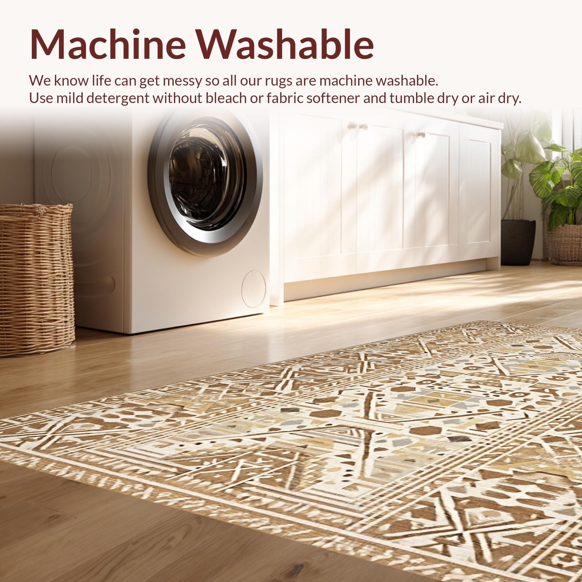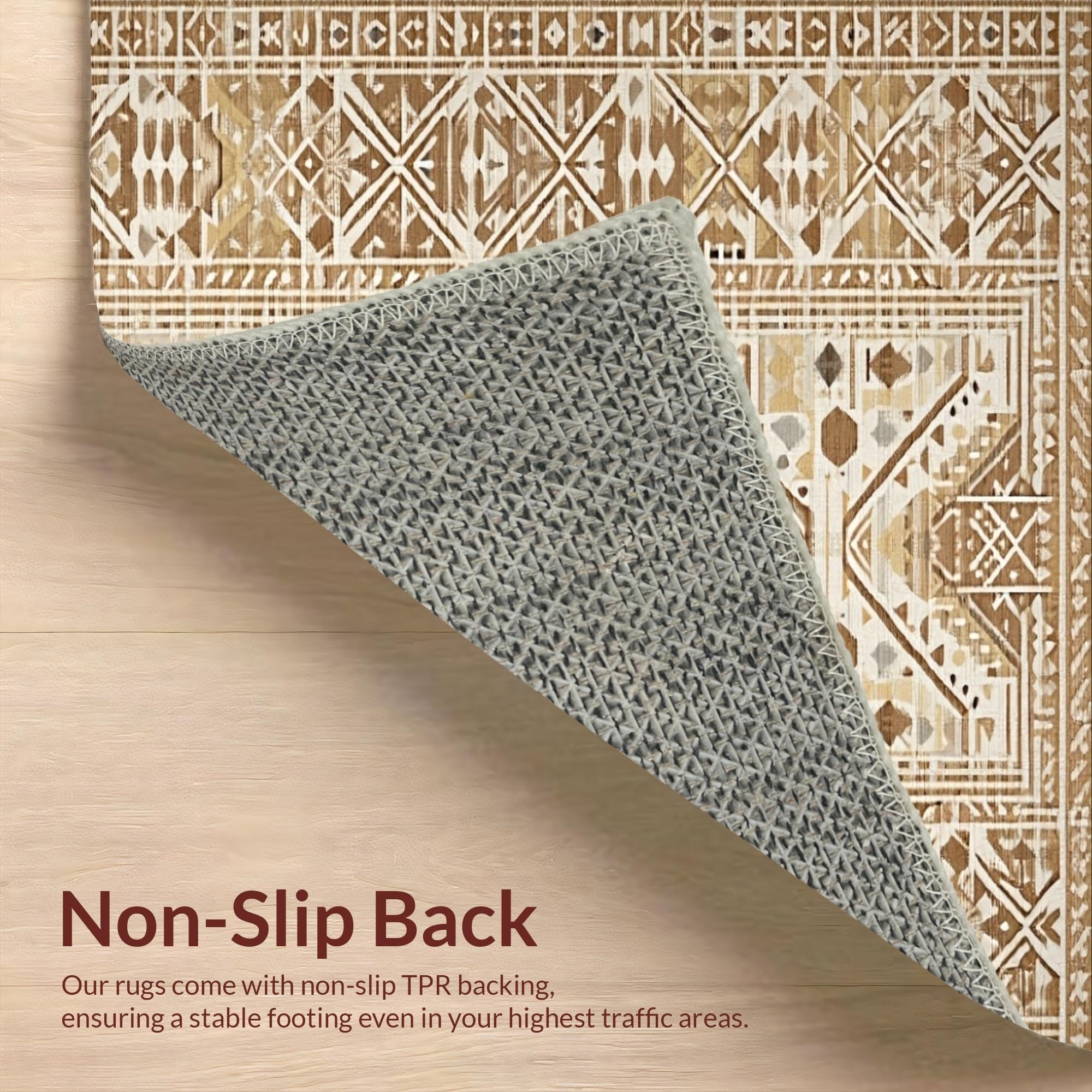 Ultra Soft Area Rug, Non Slip, Stain Resistant, Washable Area Rugs for Living Room, Bedroom, Earthy Toned Geometric Motif(Beige) Overview: