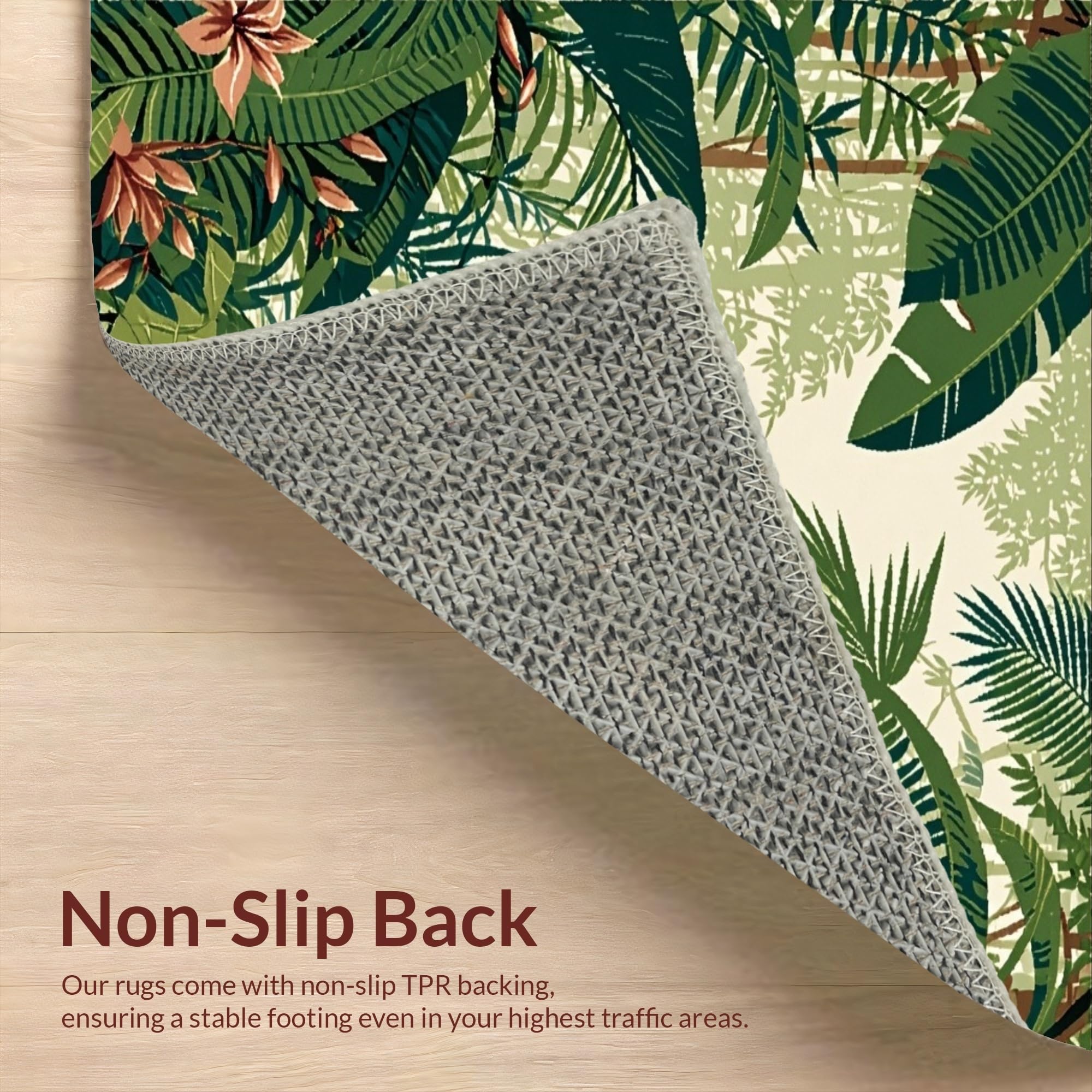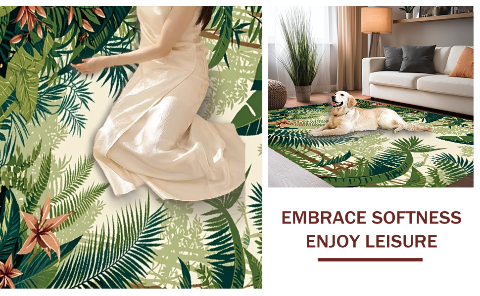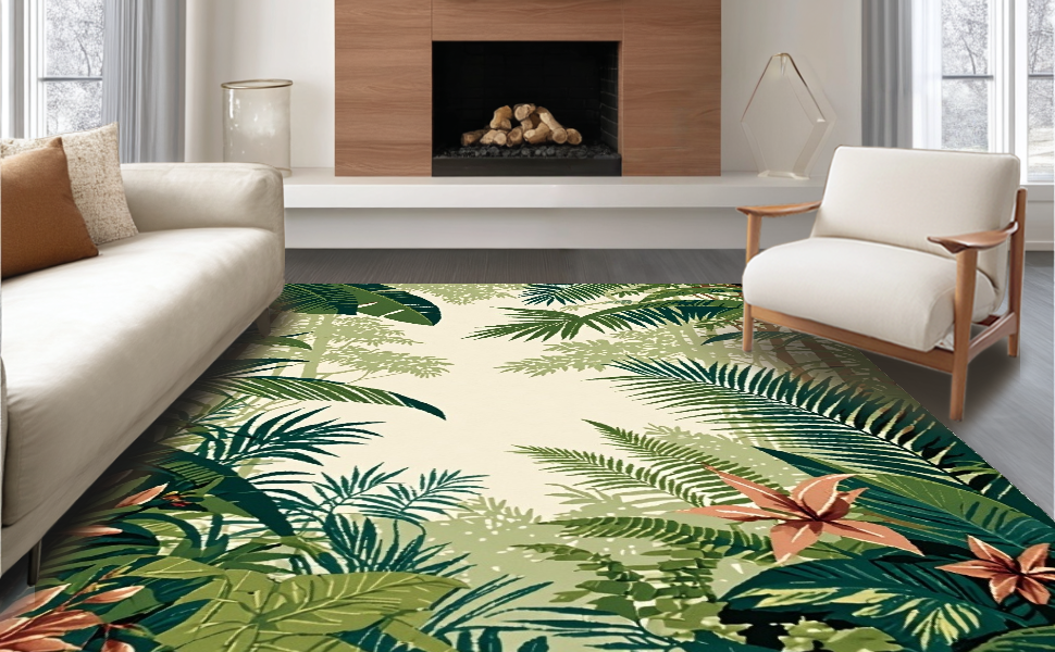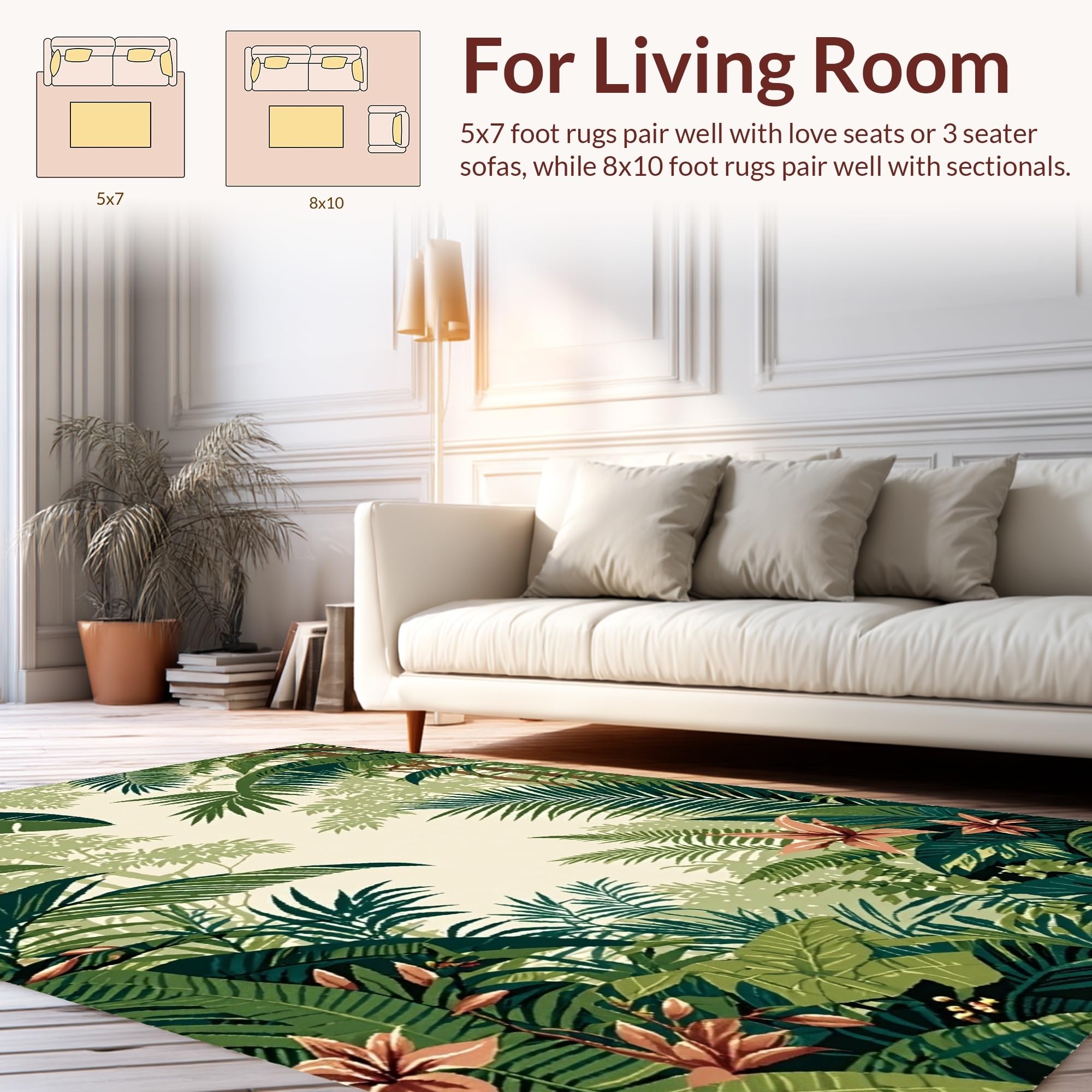 Ultra Soft Area Rug, Non Slip, Stain Resistant, Washable Area Rugs for Living Room, Bedroom, Earthy Toned Tropical Print(Green) Overview: