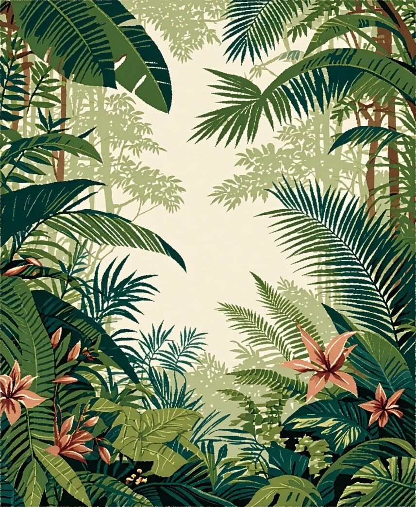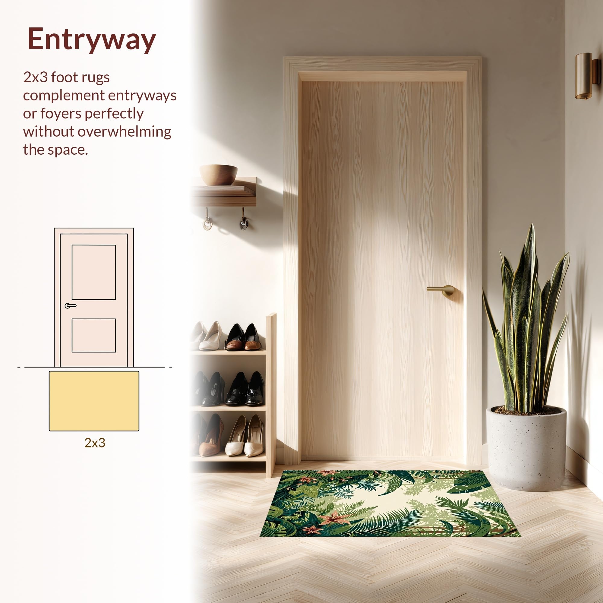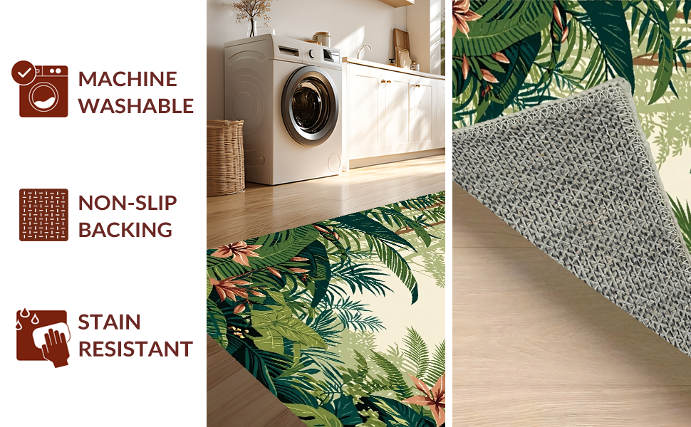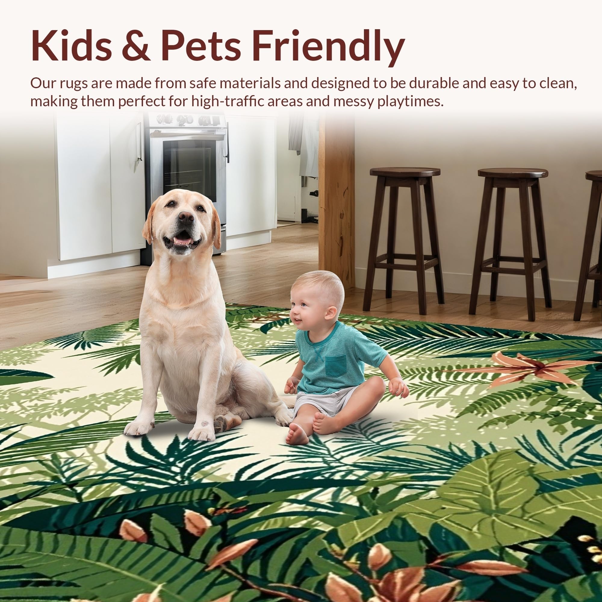 Ultra Soft Area Rug, Non Slip, Stain Resistant, Washable Area Rugs for Living Room, Bedroom, Earthy Toned Tropical Print(Green) Overview: