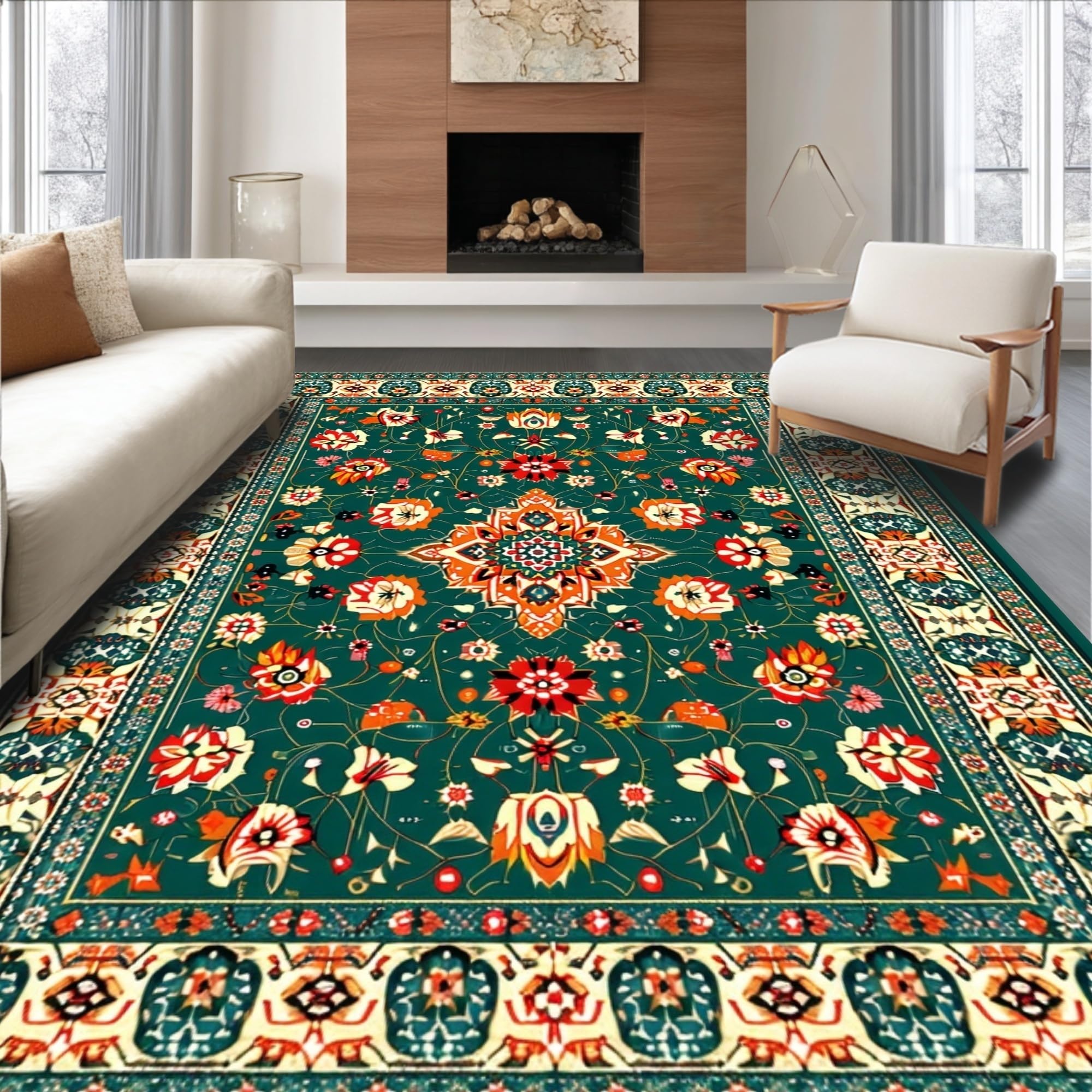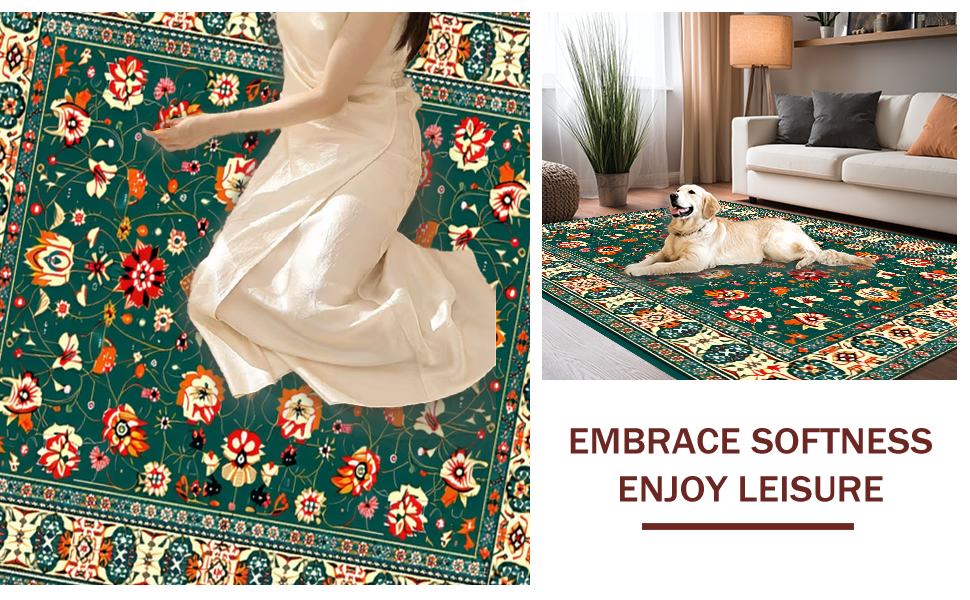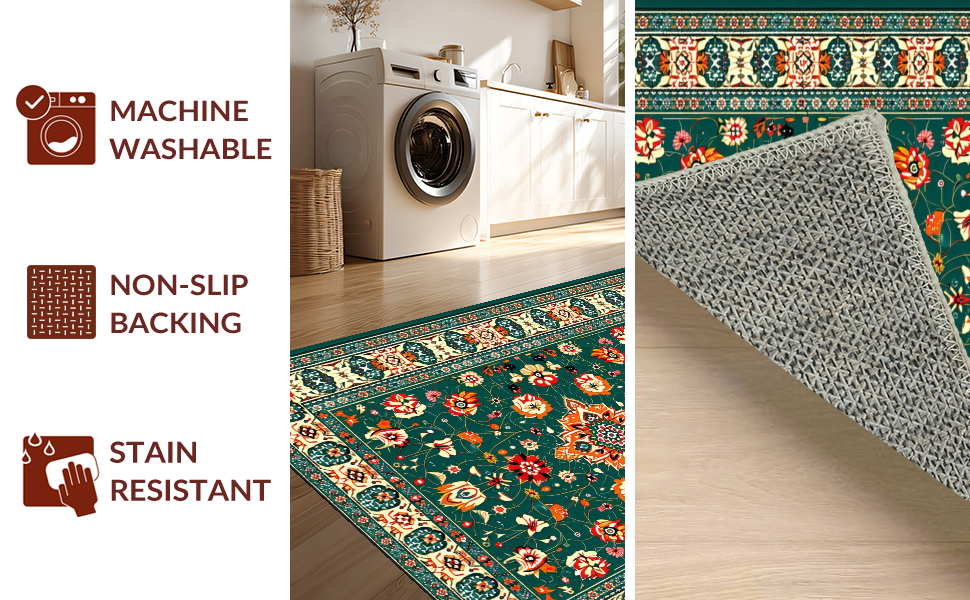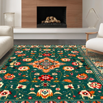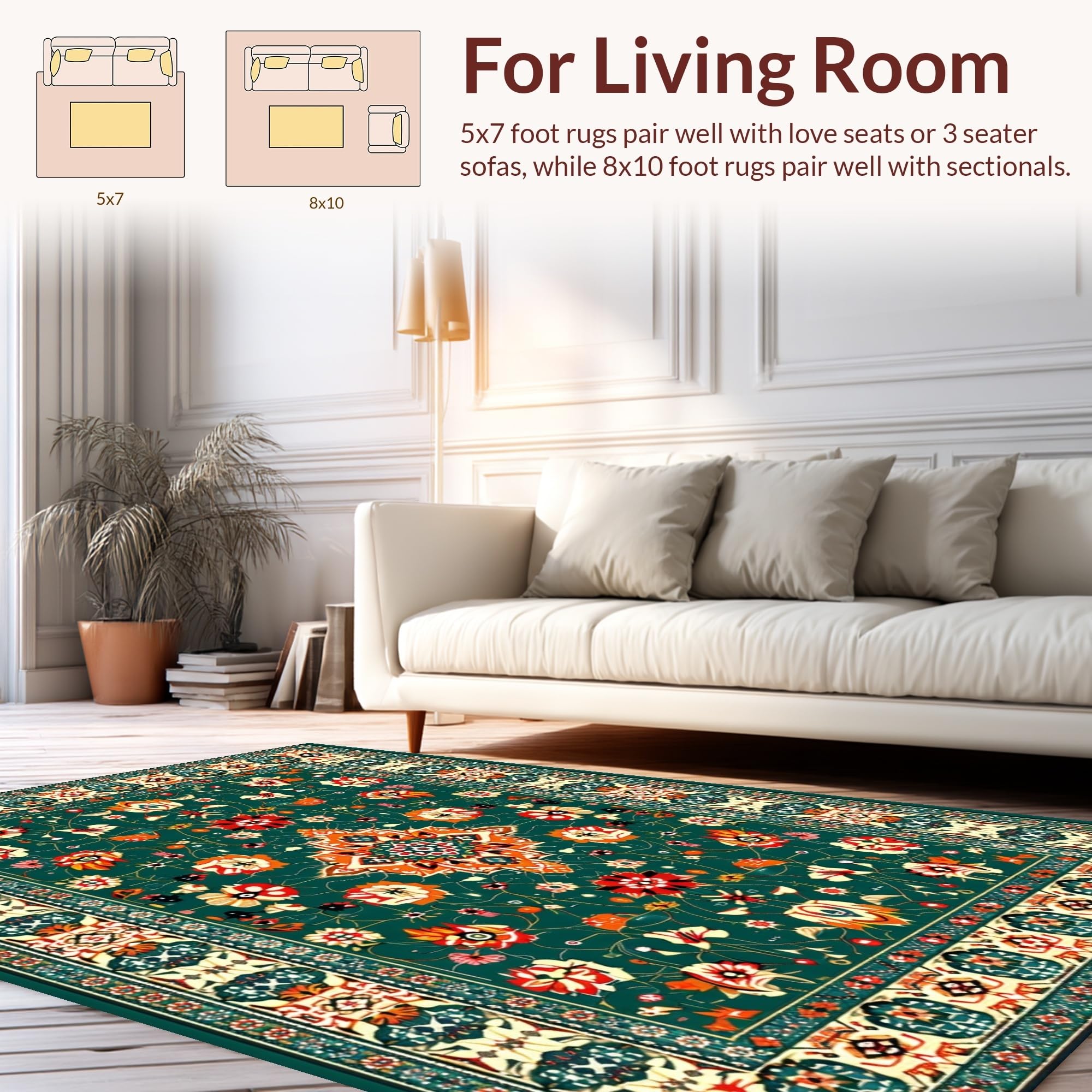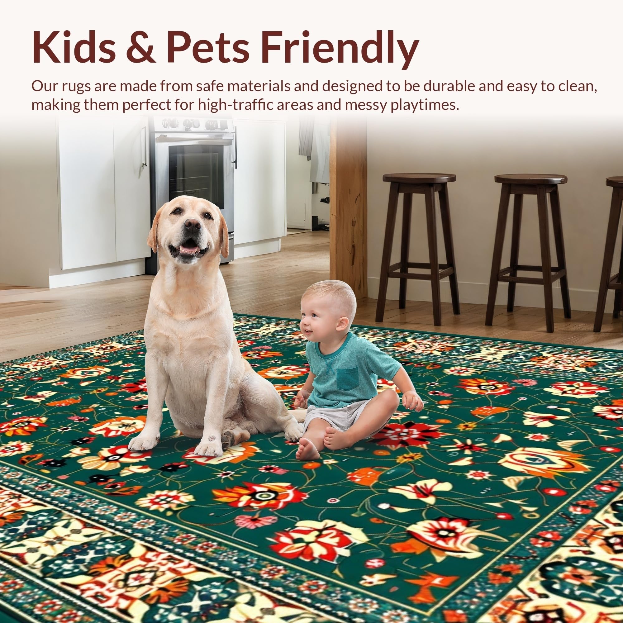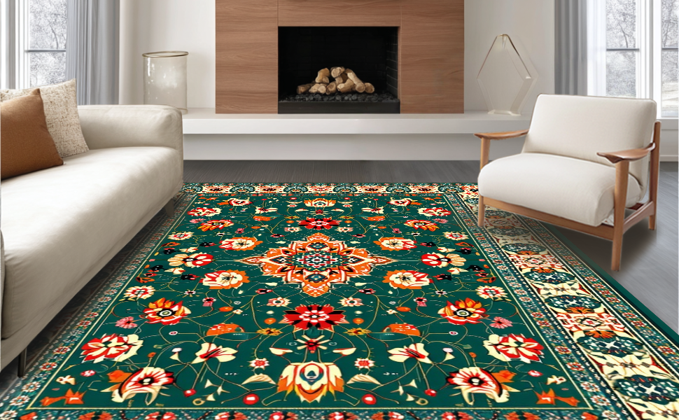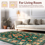 Ultra Soft Area Rug, Non Slip, Stain Resistant, Washable Area Rugs for Living Room, Bedroom, Earthy Toned Vintage Artistry(Green) Overview: