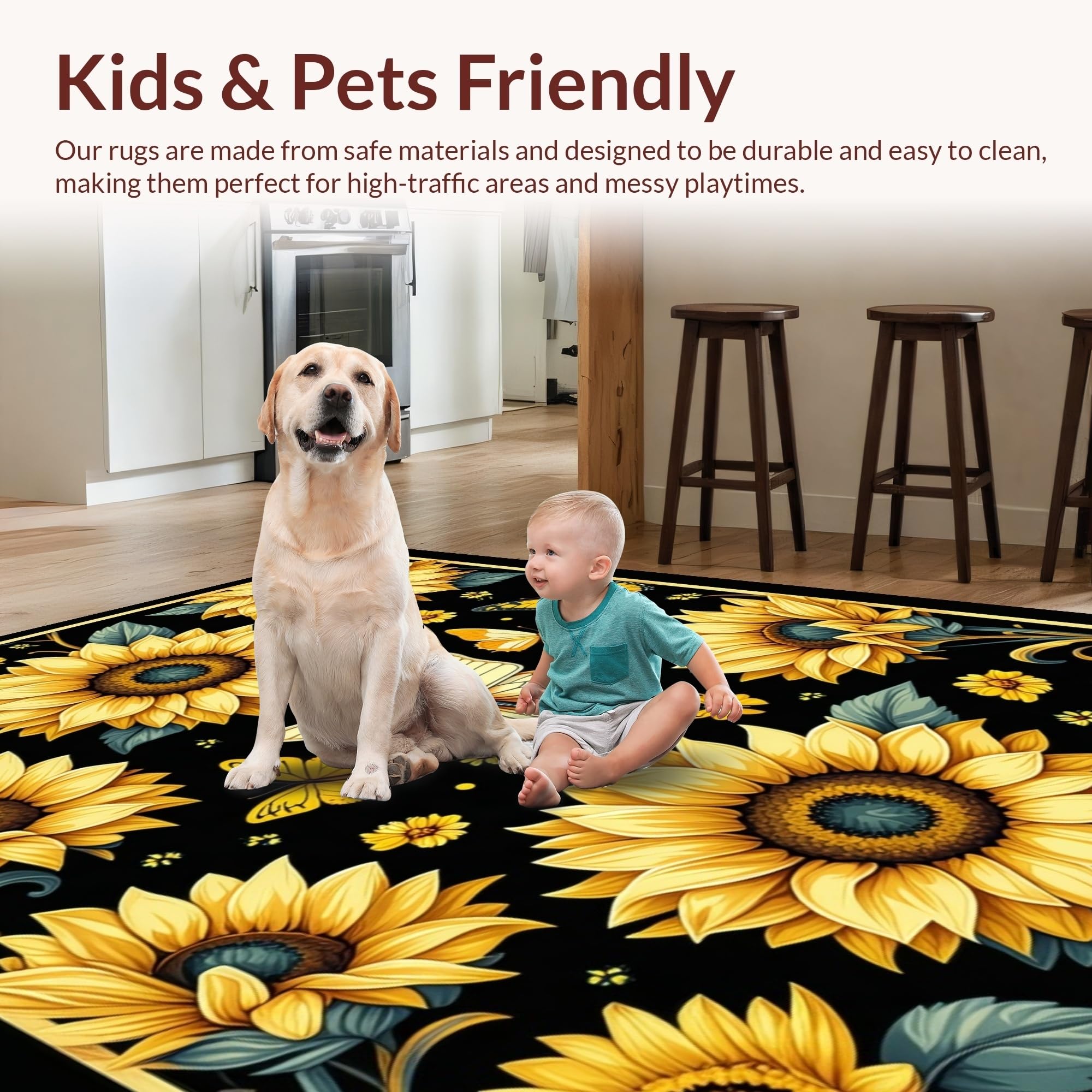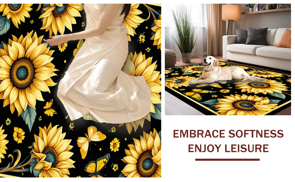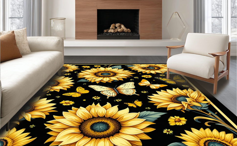 Ultra Soft Area Rug, Non Slip, Stain Resistant, Washable Area Rugs for Living Room, Bedroom, Earthy Tones with Butterfly Accents(Yellow) Overview: