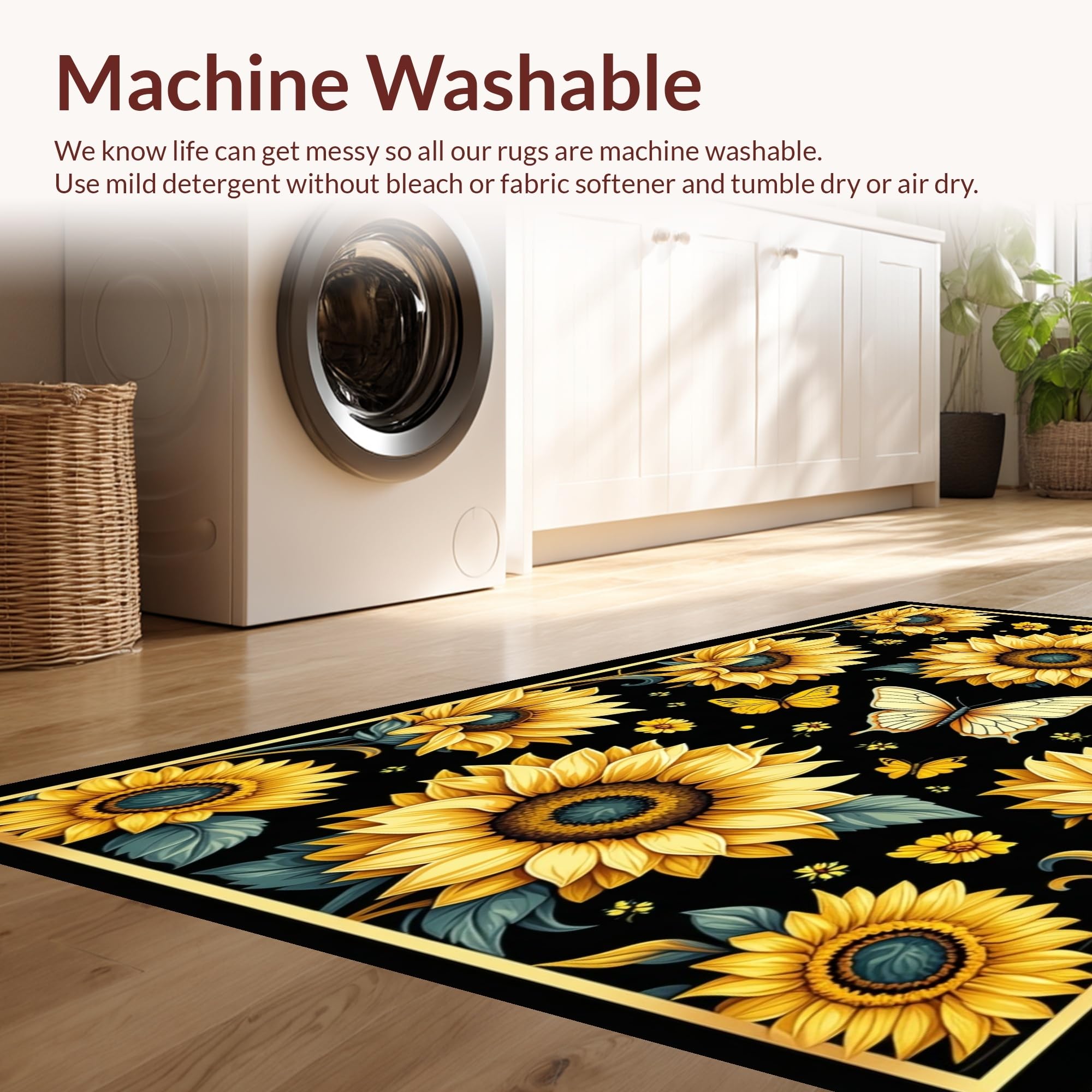 - Machine Washable: Our rugs can be easily thrown in the wash machine.