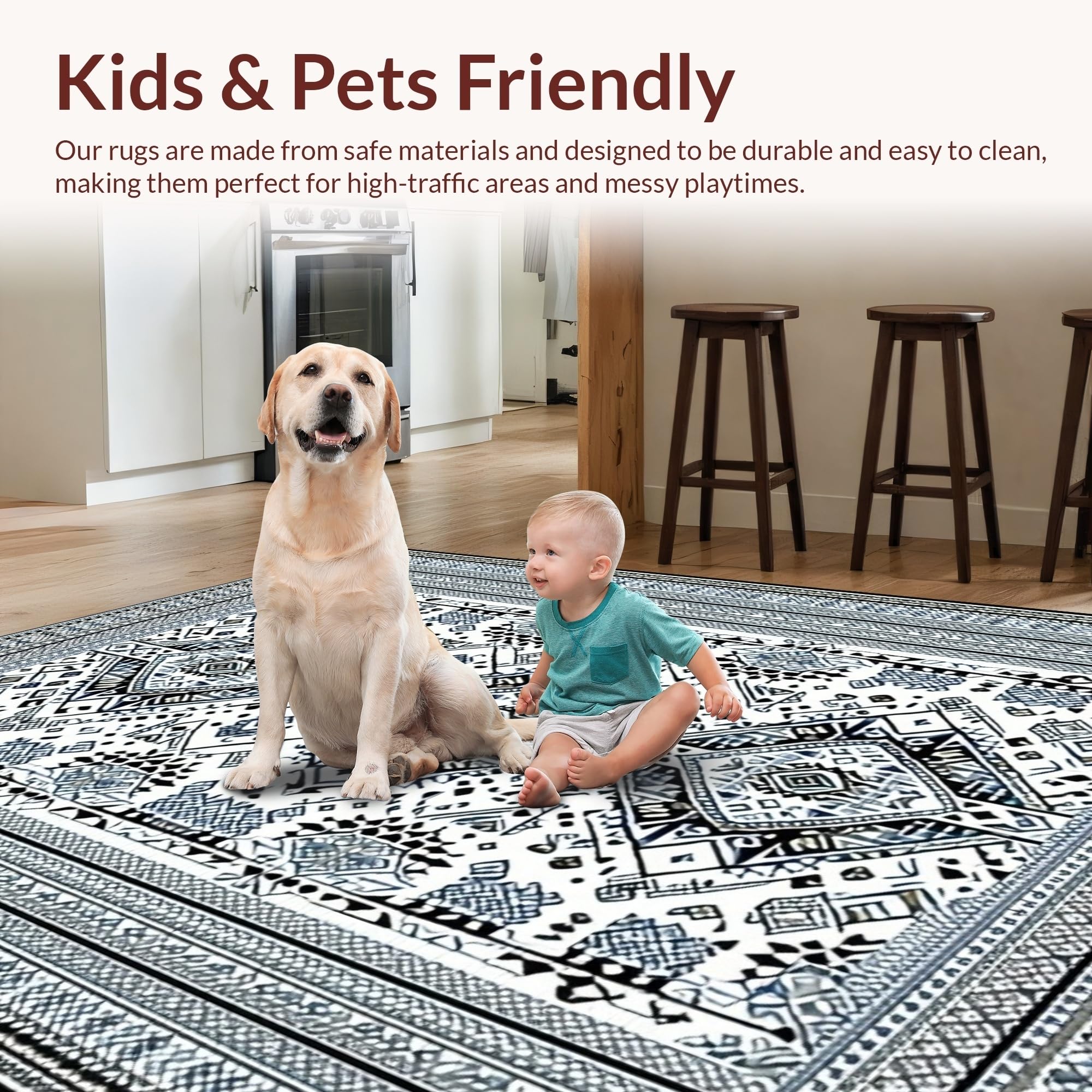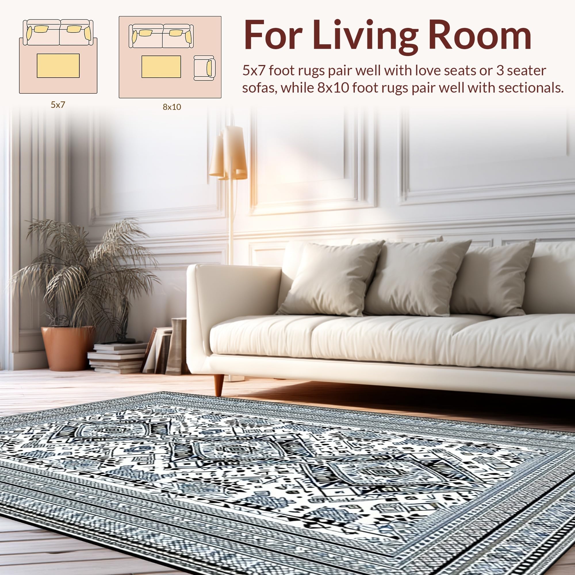 Ultra Soft Area Rug, Non Slip, Stain Resistant, Washable Area Rugs for Living Room, Bedroom, Earthy Trellis Patterned Outdoor Piece(Gray) Overview: