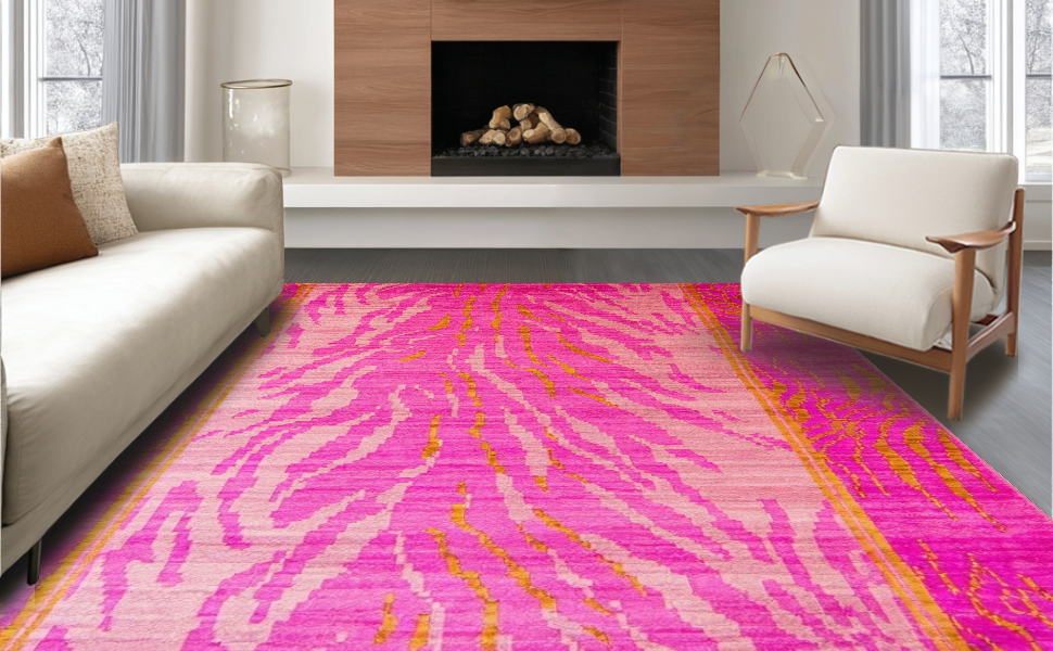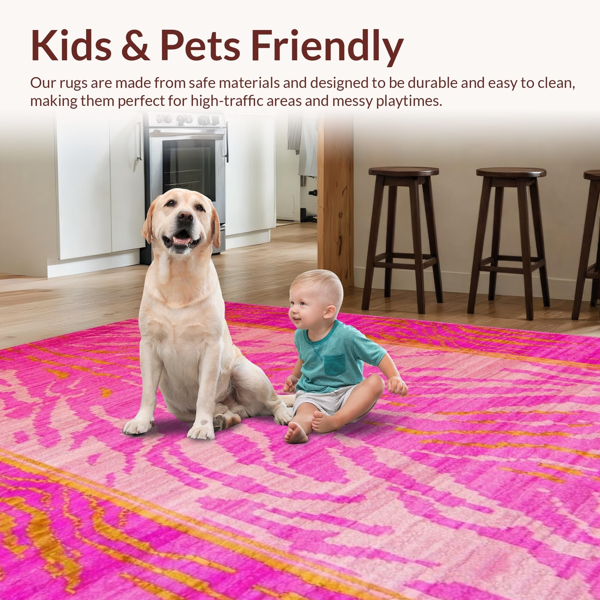 Ultra Soft Area Rug, Non Slip, Stain Resistant, Washable Area Rugs for Living Room, Bedroom, Eclectic Animal Fantasy Decor(Pink) Overview: