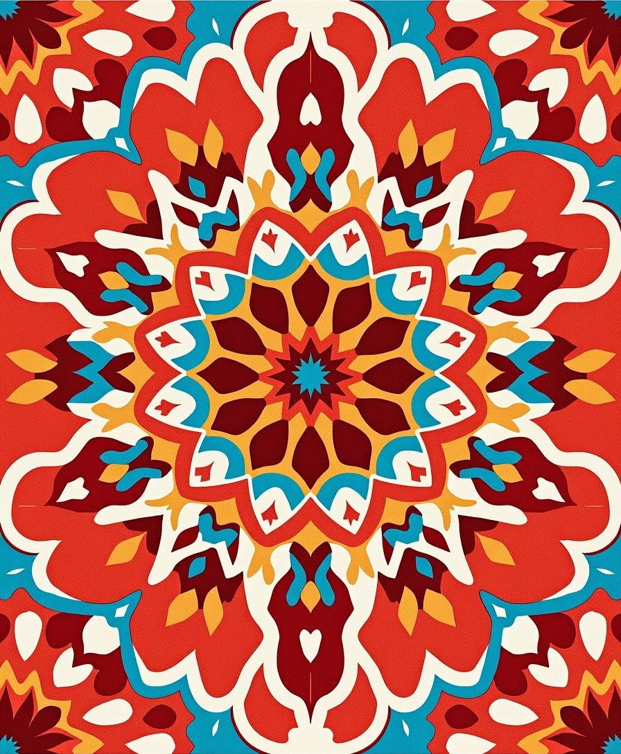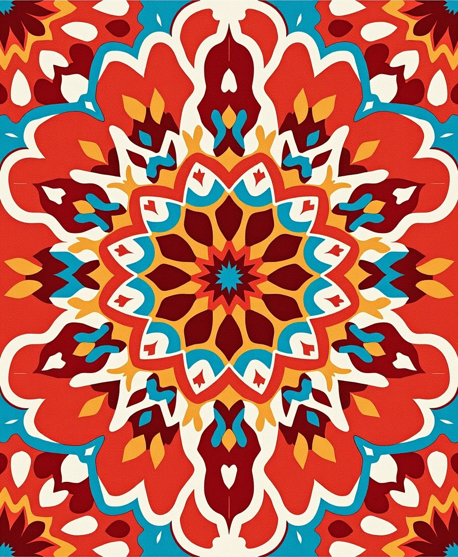 Eclectic Boho Starburst Medallion with Interlocking Petal Motifs(Red)