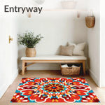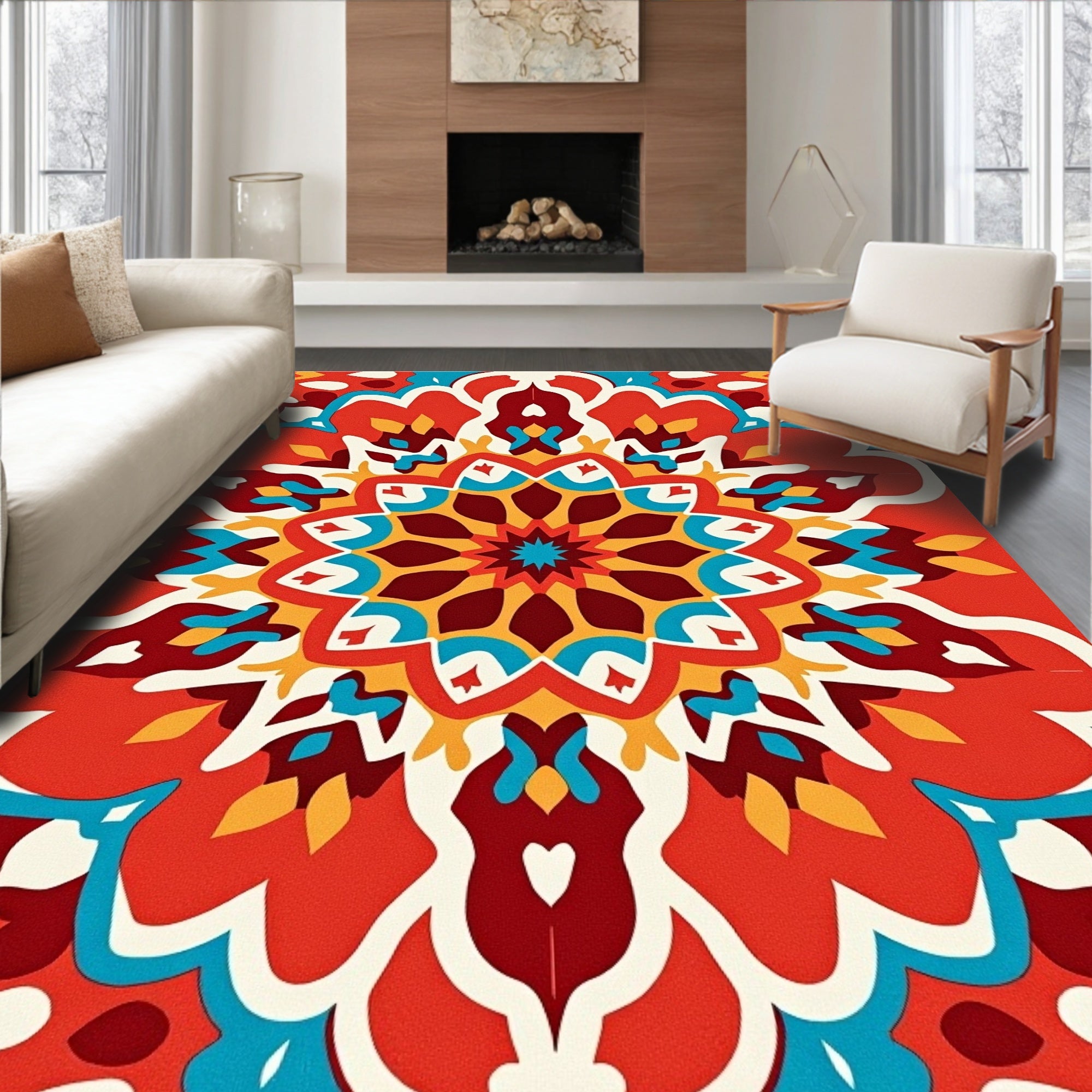 Ultra Soft Area Rug, Non Slip, Stain Resistant, Washable Area Rugs for Living Room, Bedroom, Eclectic Boho Starburst Medallion with Interlocking Petal Motifs(Red) Overview: