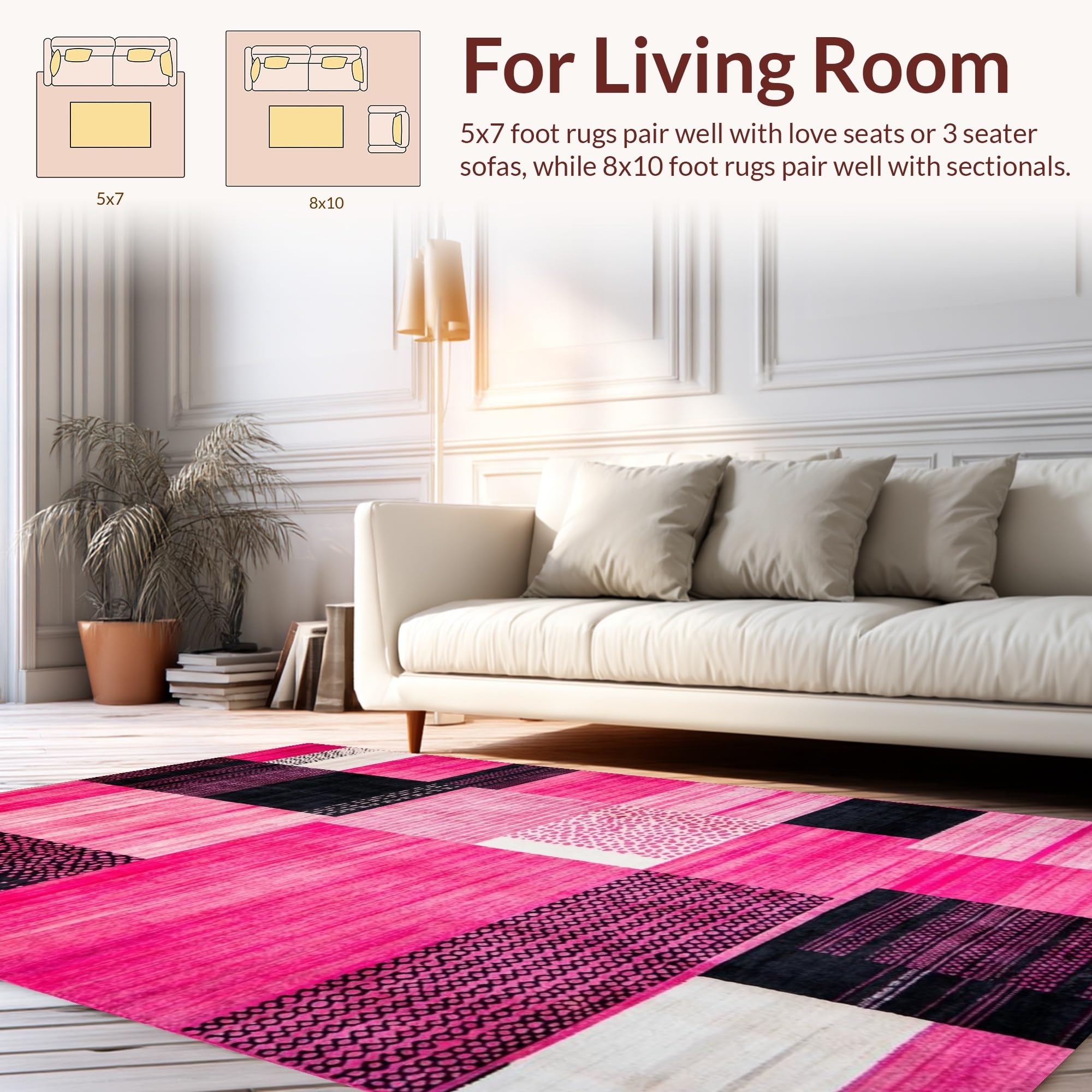 Ultra Soft Area Rug, Non Slip, Stain Resistant, Washable Area Rugs for Living Room, Bedroom, Eclectic Bold Leopard Motif(Pink) Overview: