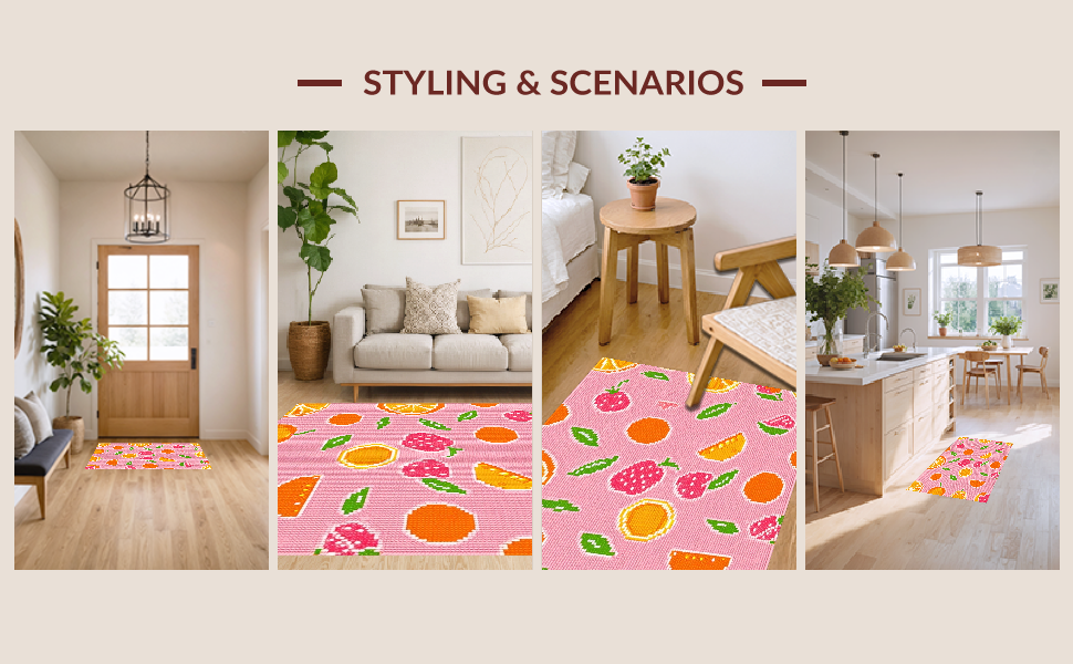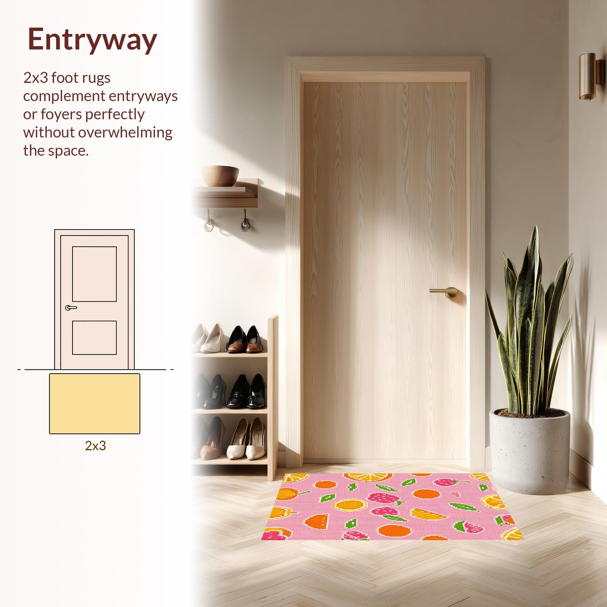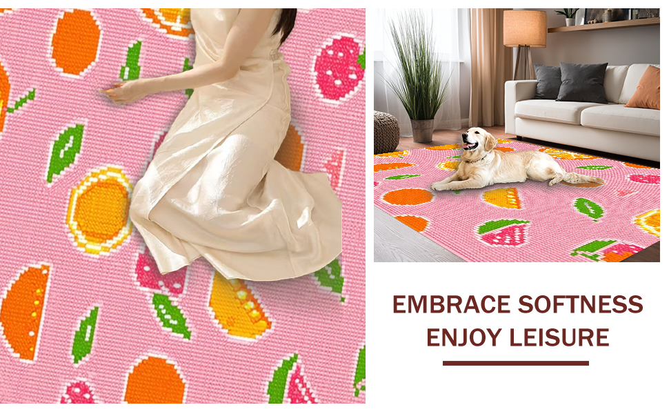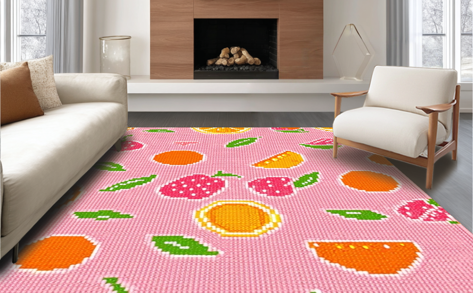 Ultra Soft Area Rug, Non Slip, Stain Resistant, Washable Area Rugs for Living Room, Bedroom, Eclectic Cheerful Fruit Patterned Design(Pink) Overview: