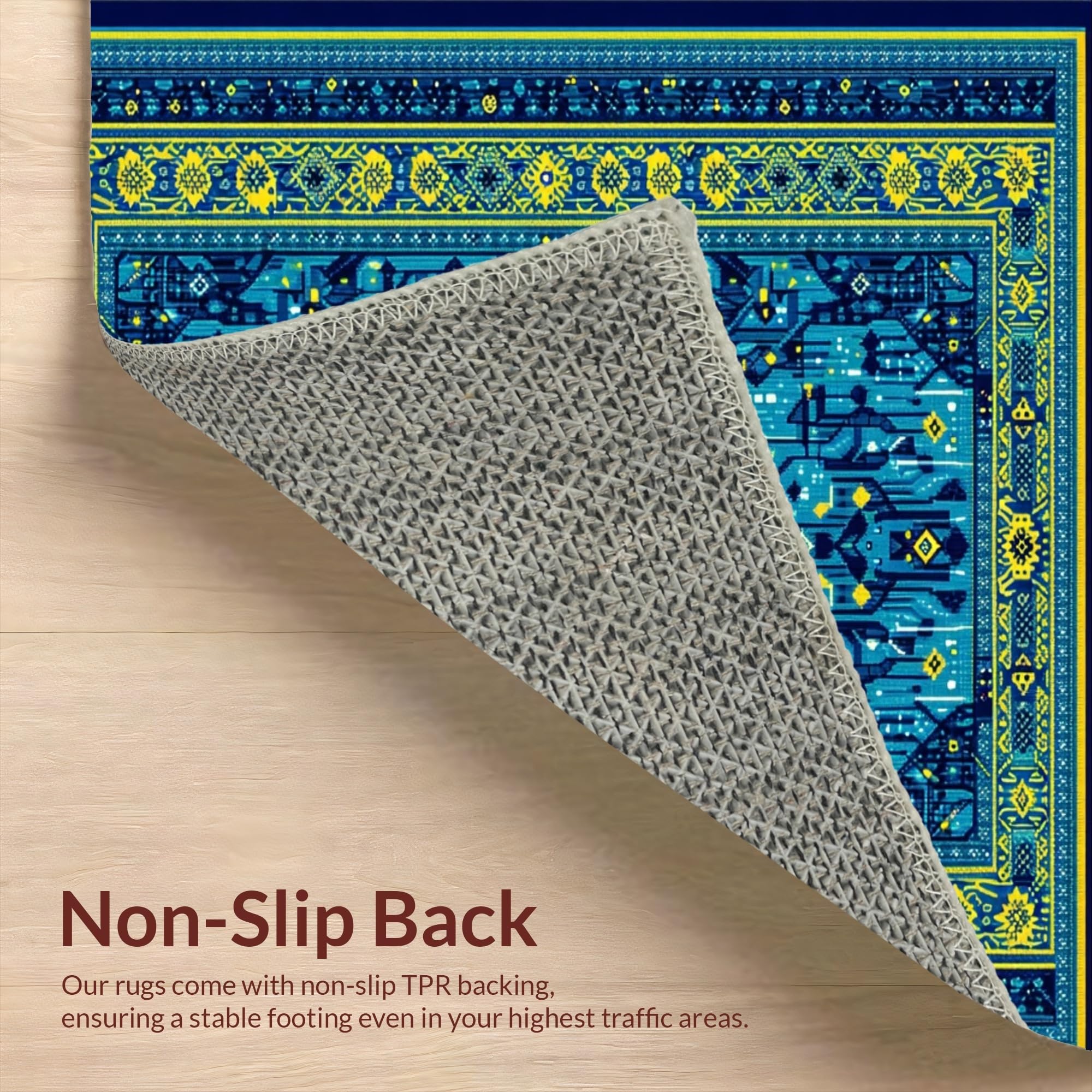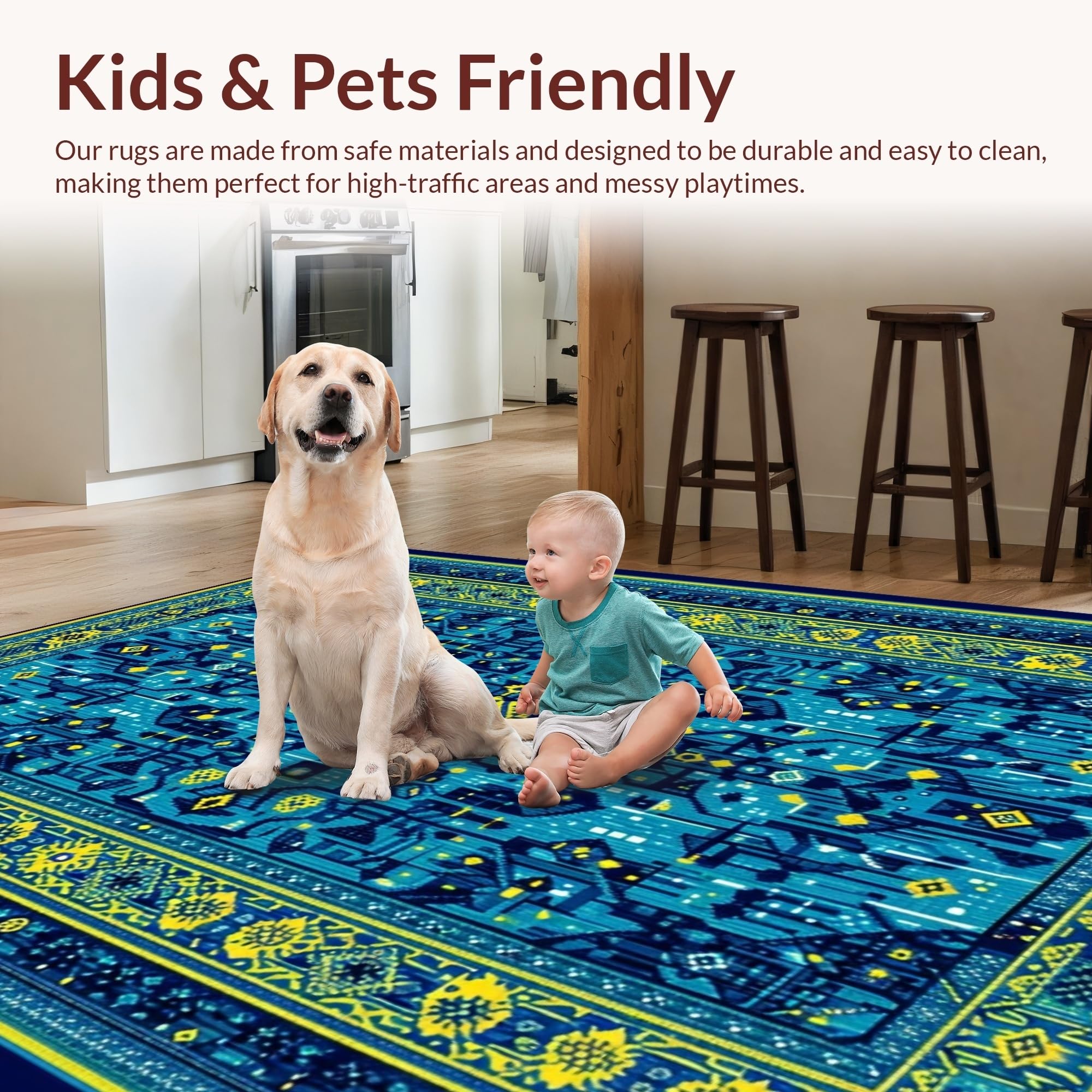 Ultra Soft Area Rug, Non Slip, Stain Resistant, Washable Area Rugs for Living Room, Bedroom, Eclectic Colorful Ethereal Swirls(Blue) Overview: