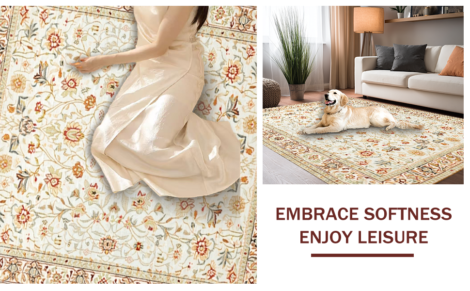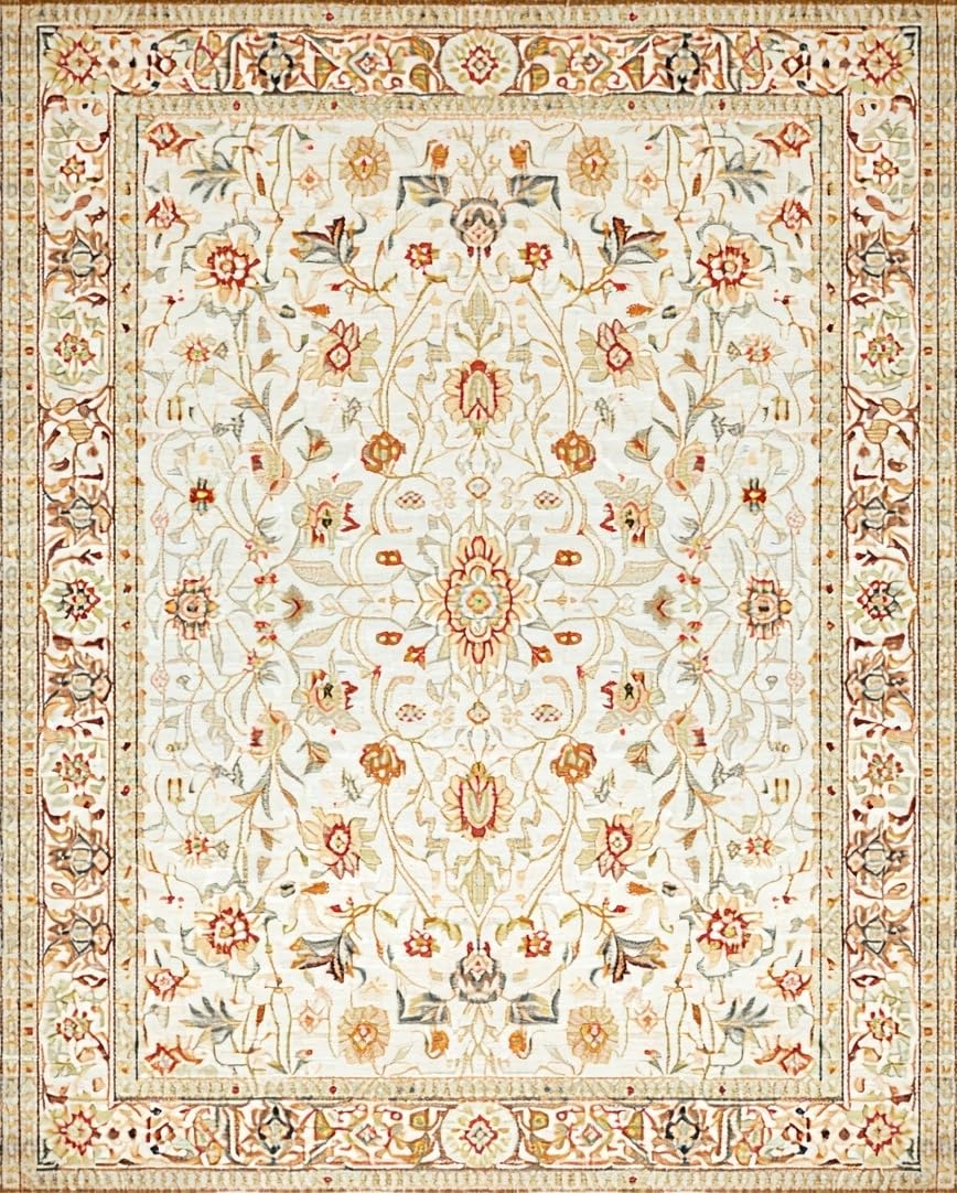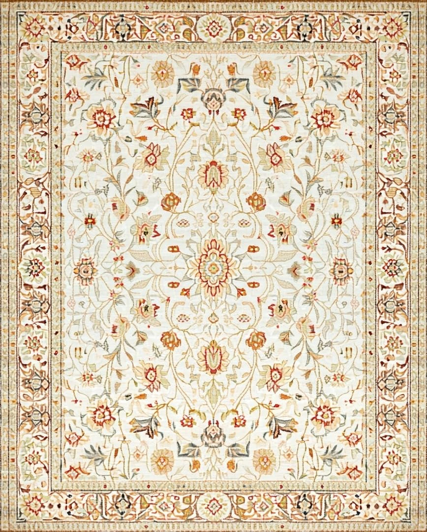 Ultra Soft Area Rug, Non Slip, Stain Resistant, Washable Area Rugs for Living Room, Bedroom, Eclectic Colorful Garden Vibes(Beige) Overview:
