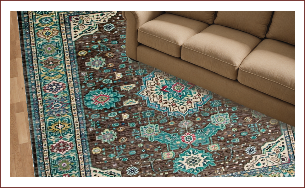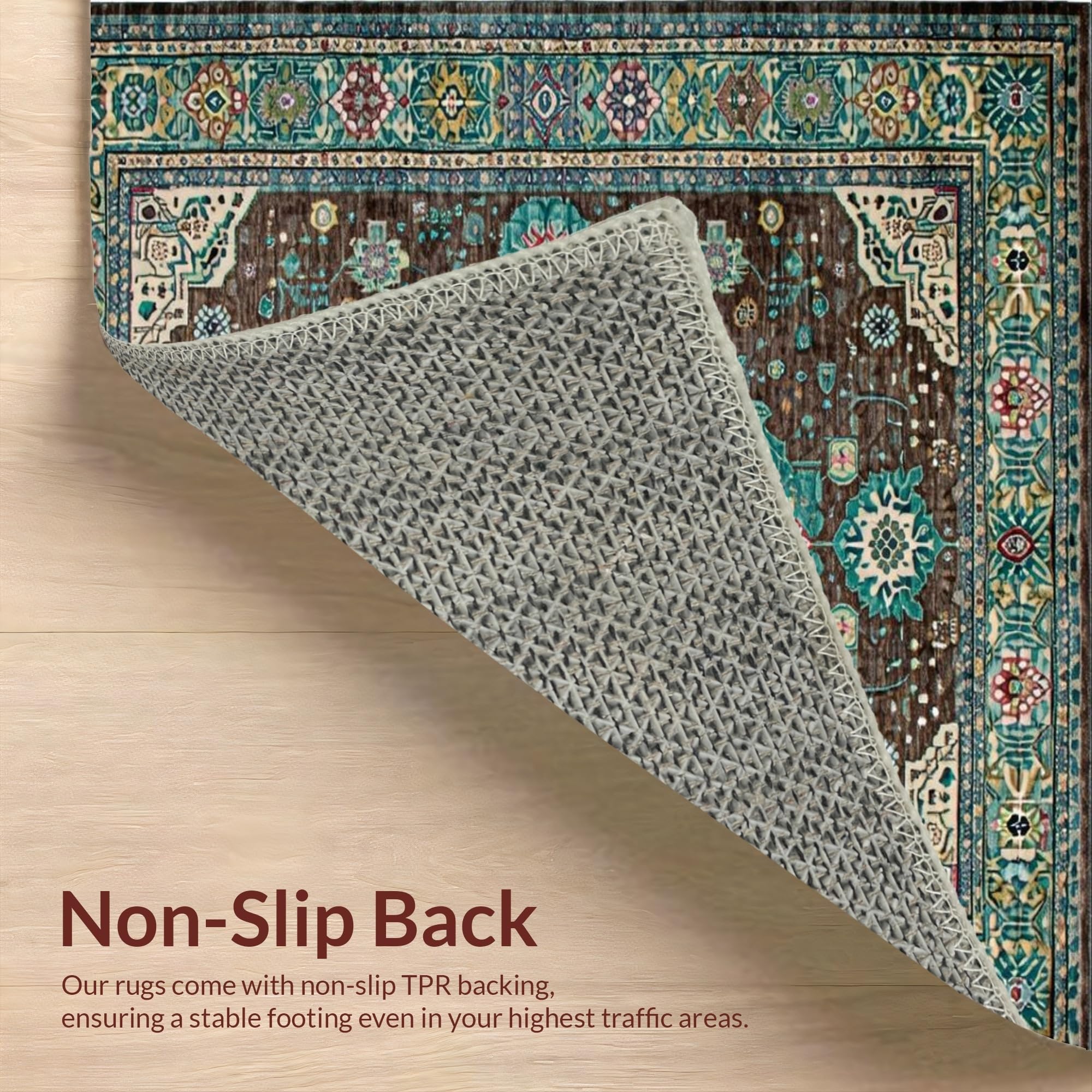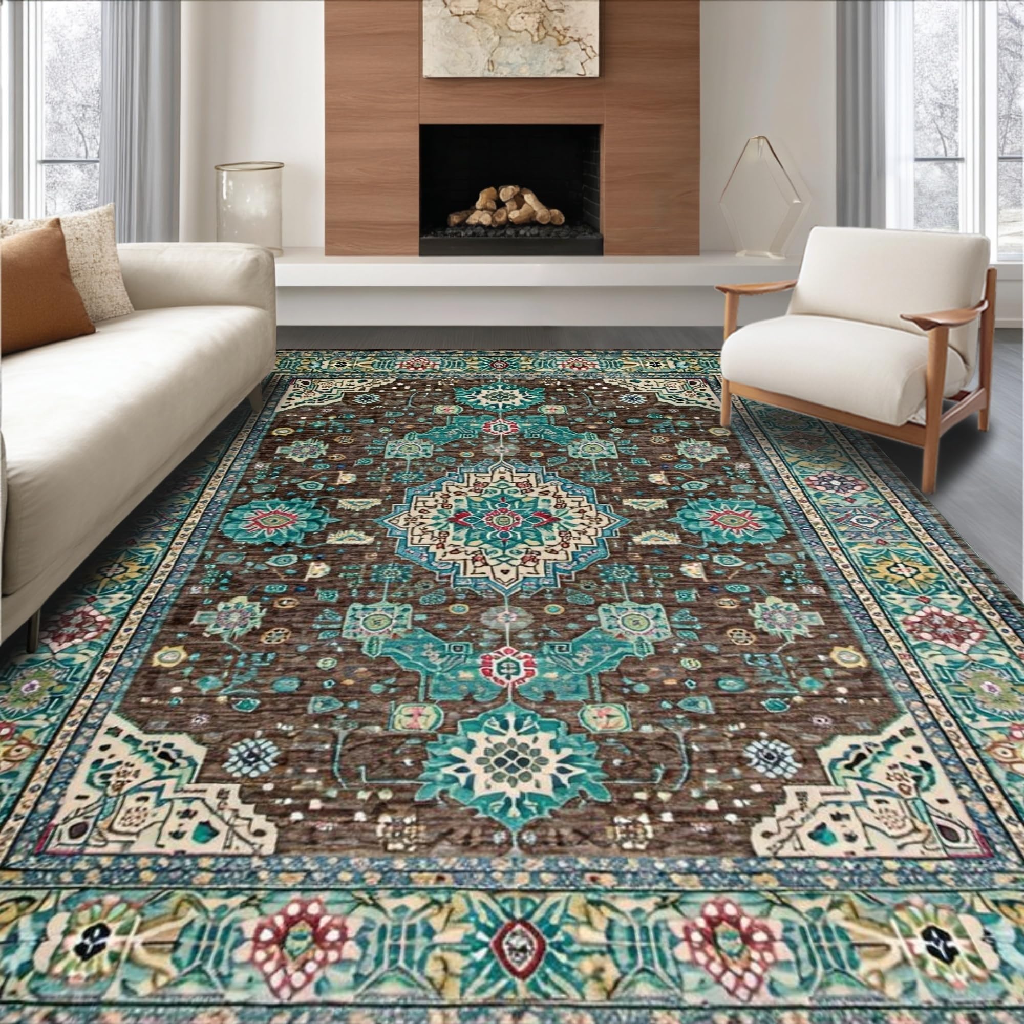 Ultra Soft Area Rug, Non Slip, Stain Resistant, Washable Area Rugs for Living Room, Bedroom, Eclectic Earthy Floral Motif(Brown) Overview: