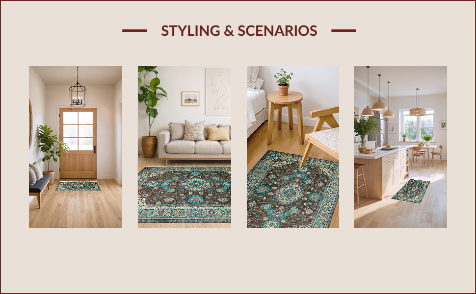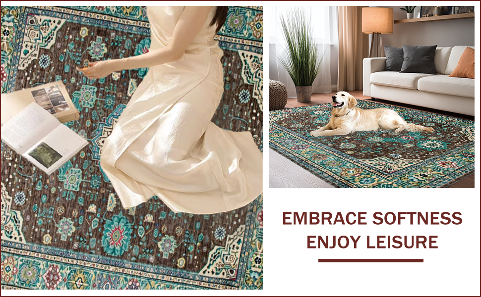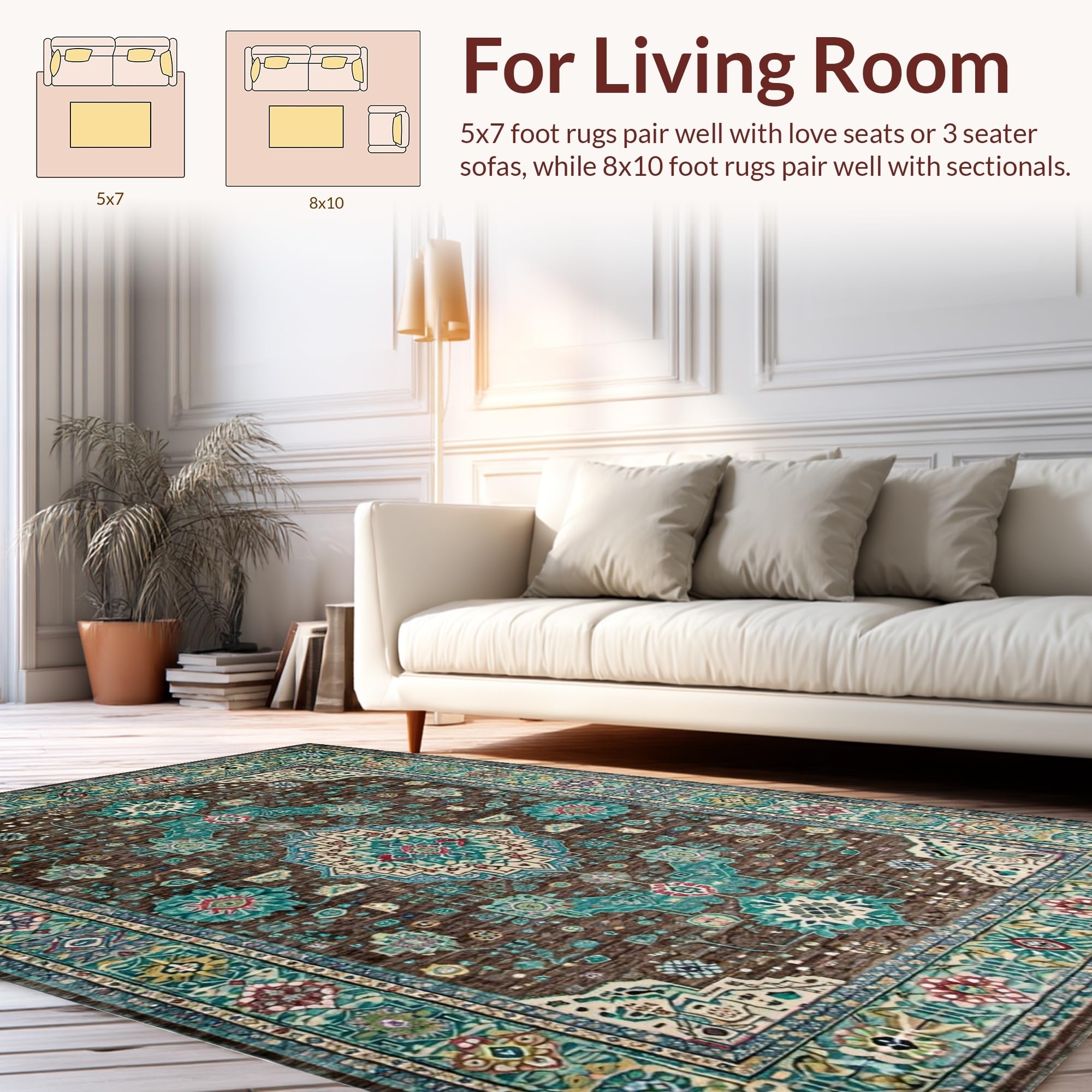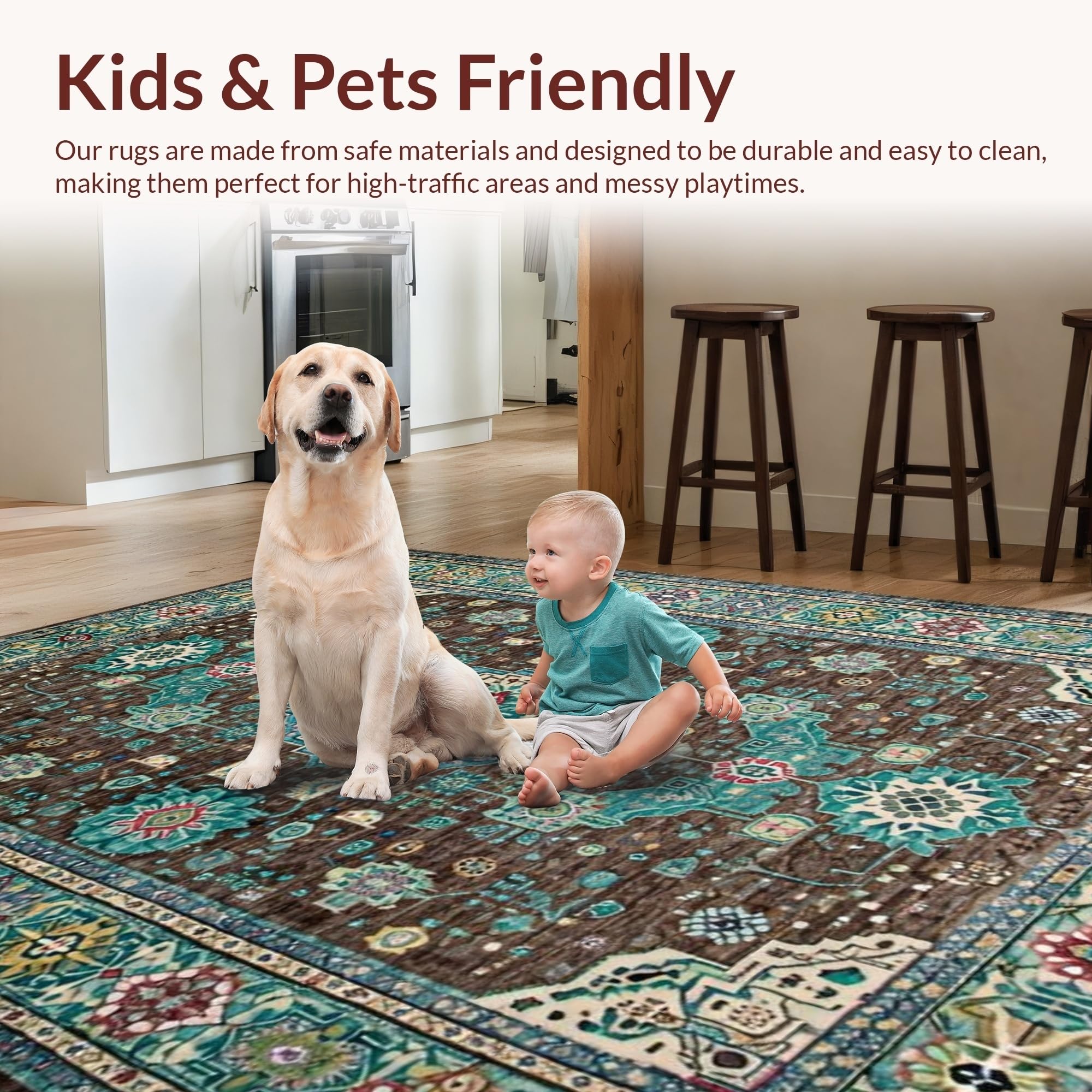 Ultra Soft Area Rug, Non Slip, Stain Resistant, Washable Area Rugs for Living Room, Bedroom, Eclectic Earthy Floral Motif(Brown) Overview: