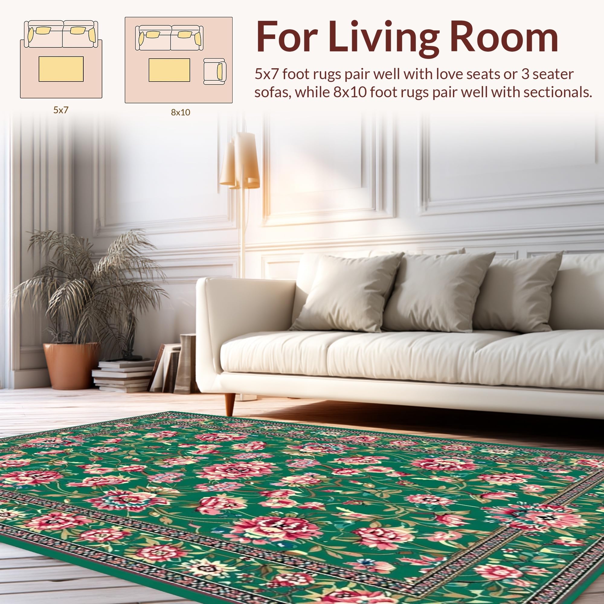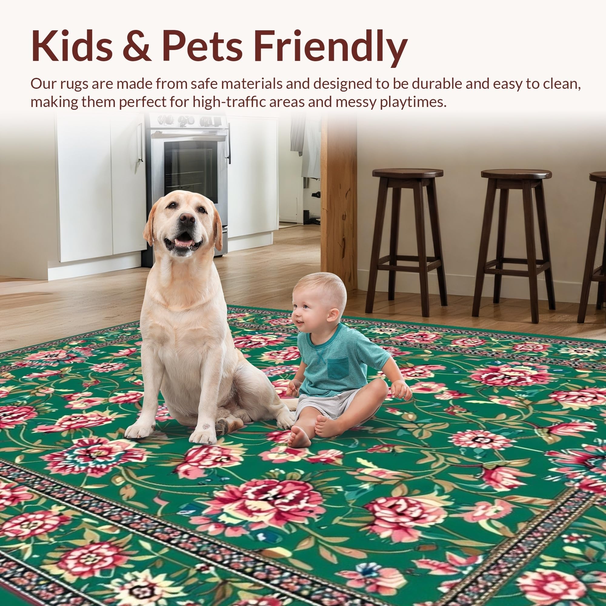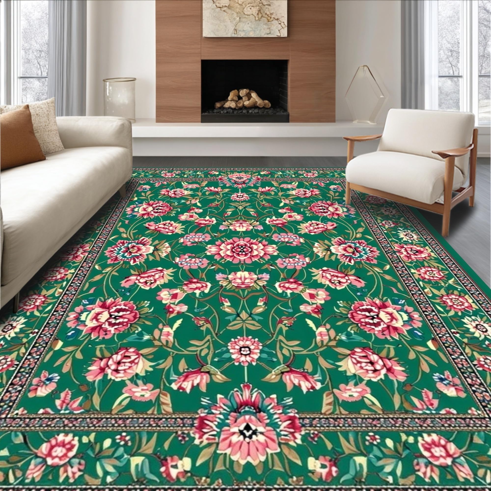 Ultra Soft Area Rug, Non Slip, Stain Resistant, Washable Area Rugs for Living Room, Bedroom, Eclectic Earthy Green Palette(Green) Overview: