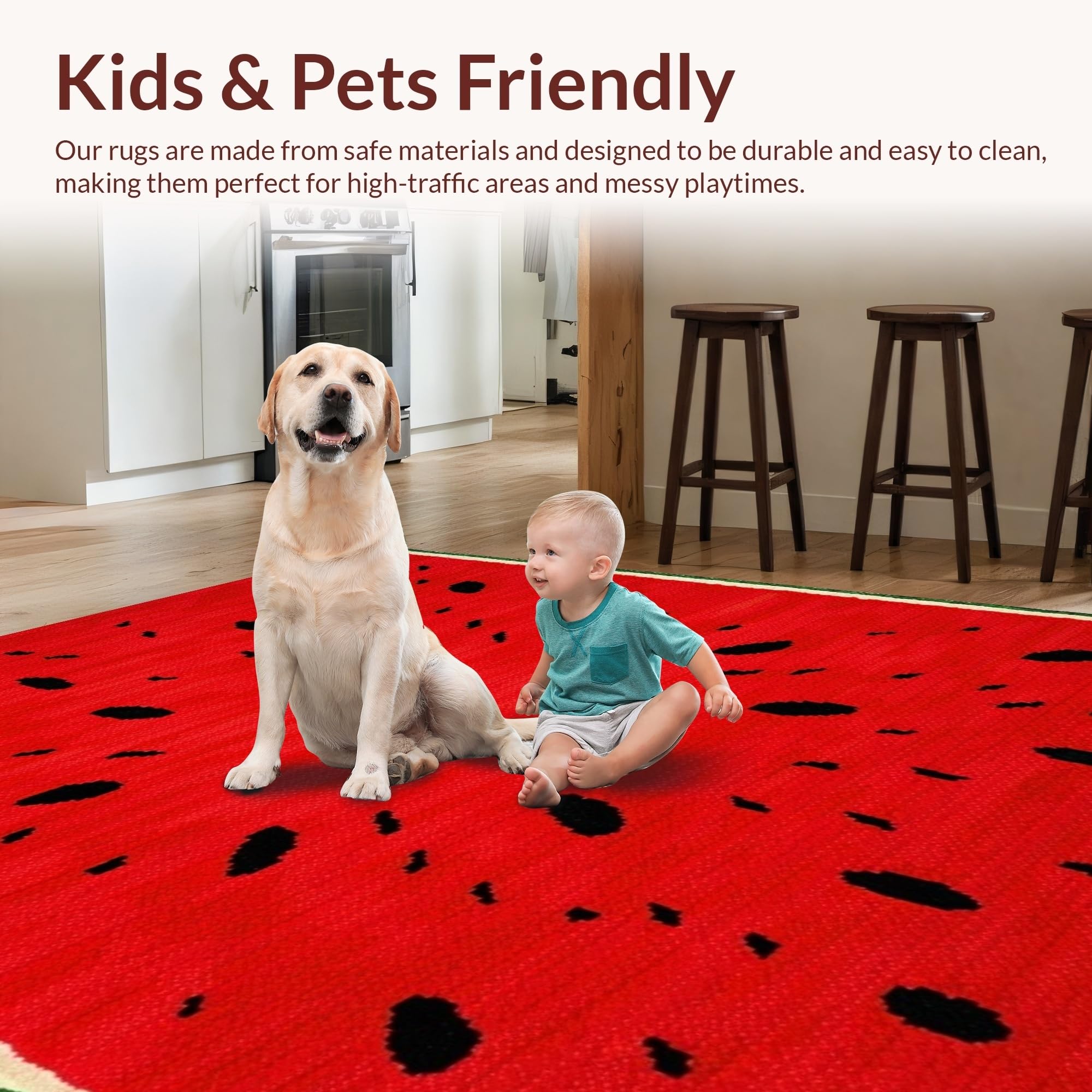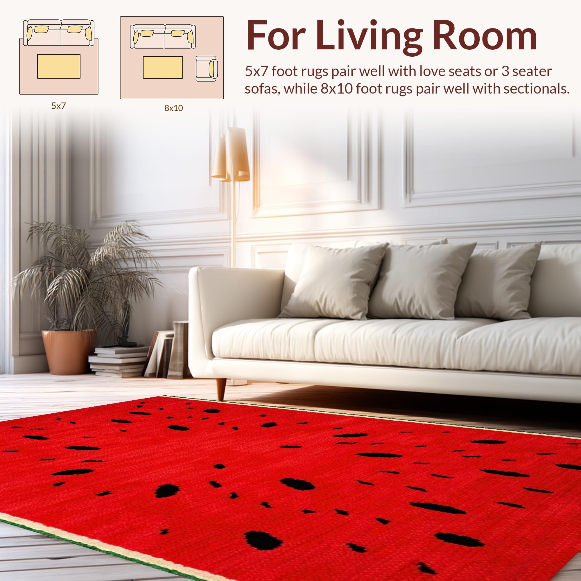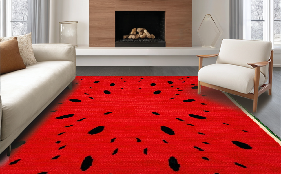 Ultra Soft Area Rug, Non Slip, Stain Resistant, Washable Area Rugs for Living Room, Bedroom, Eclectic Fresh Fruit Theme(Red) Overview: