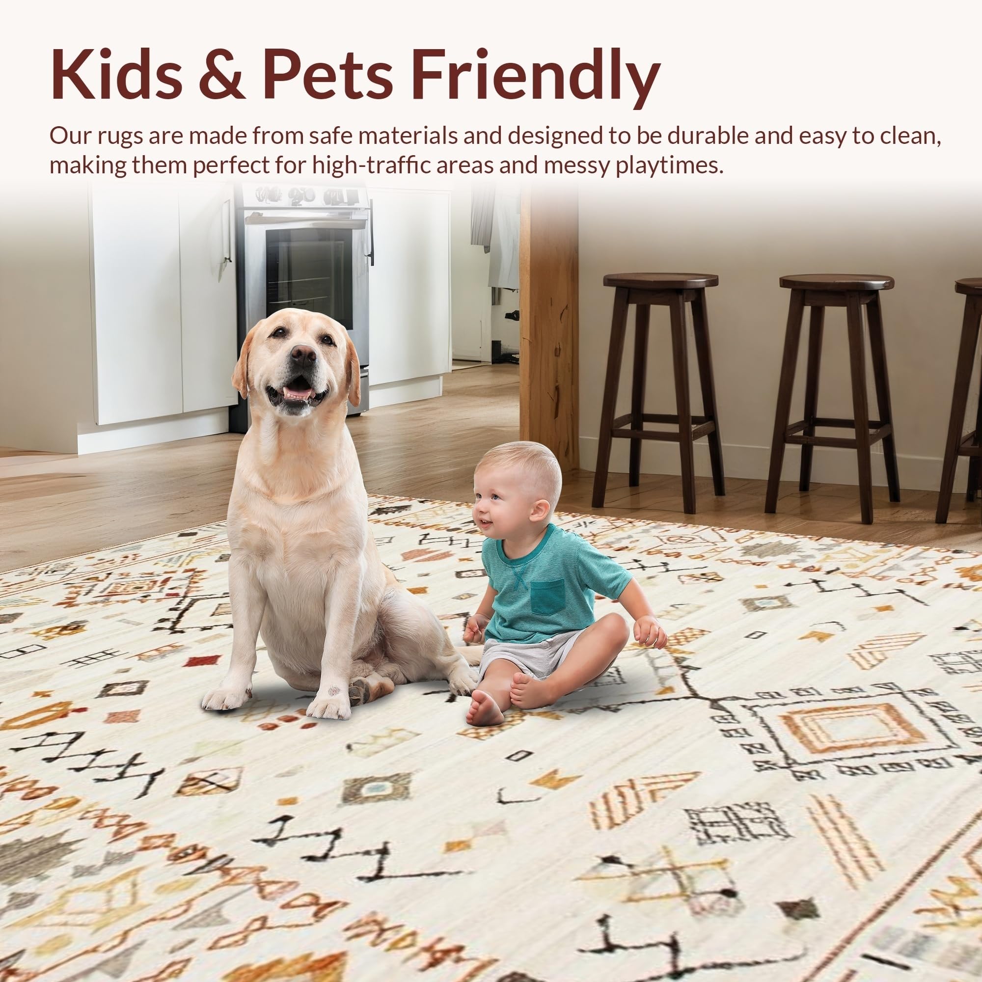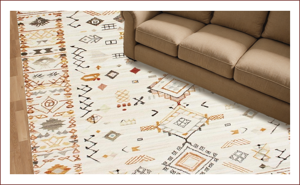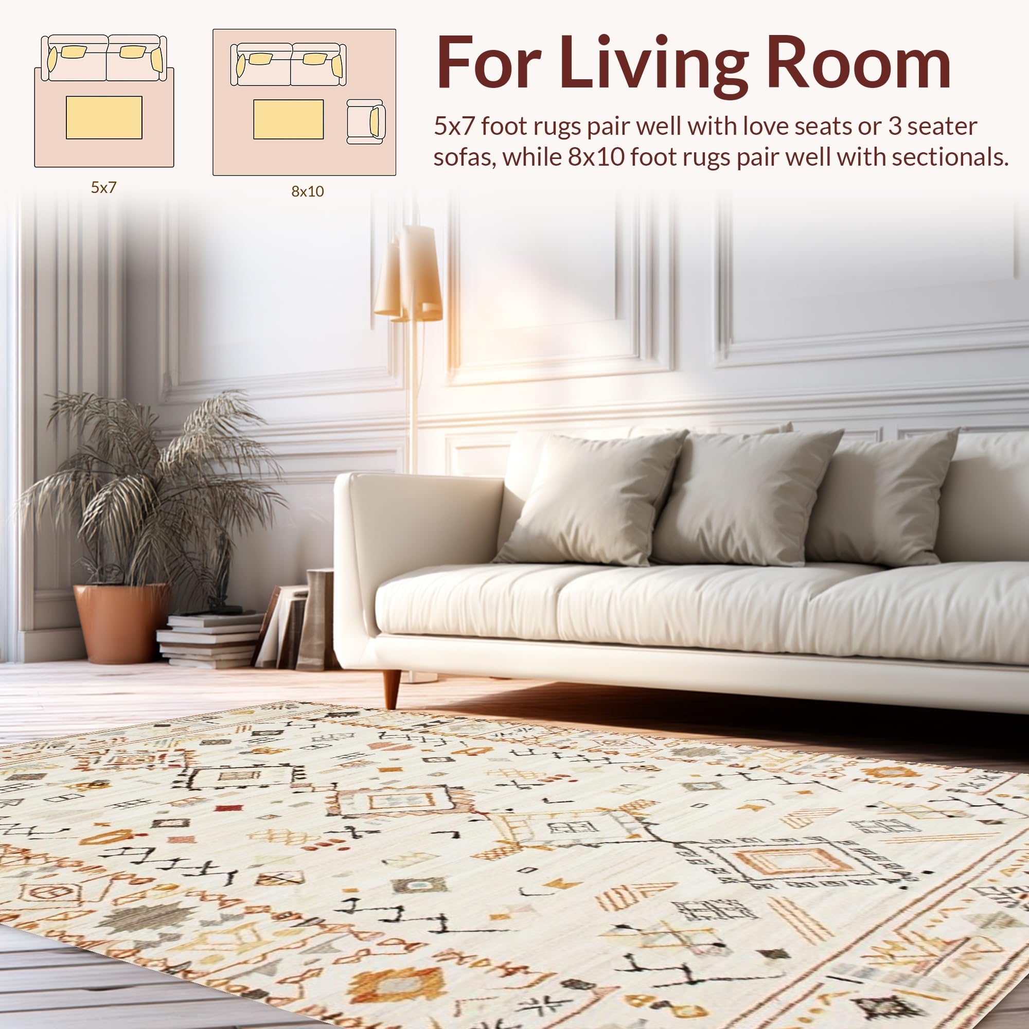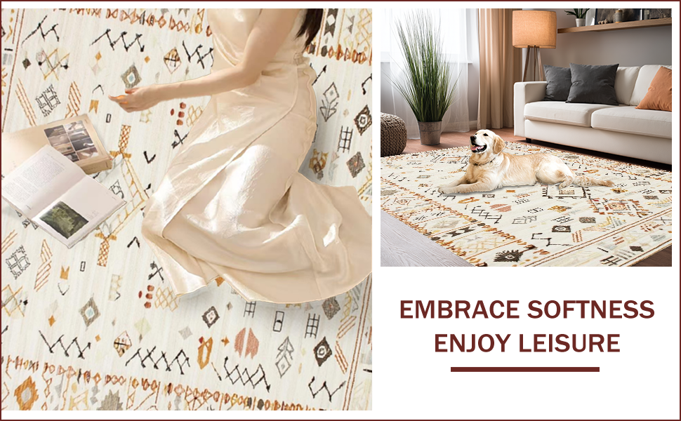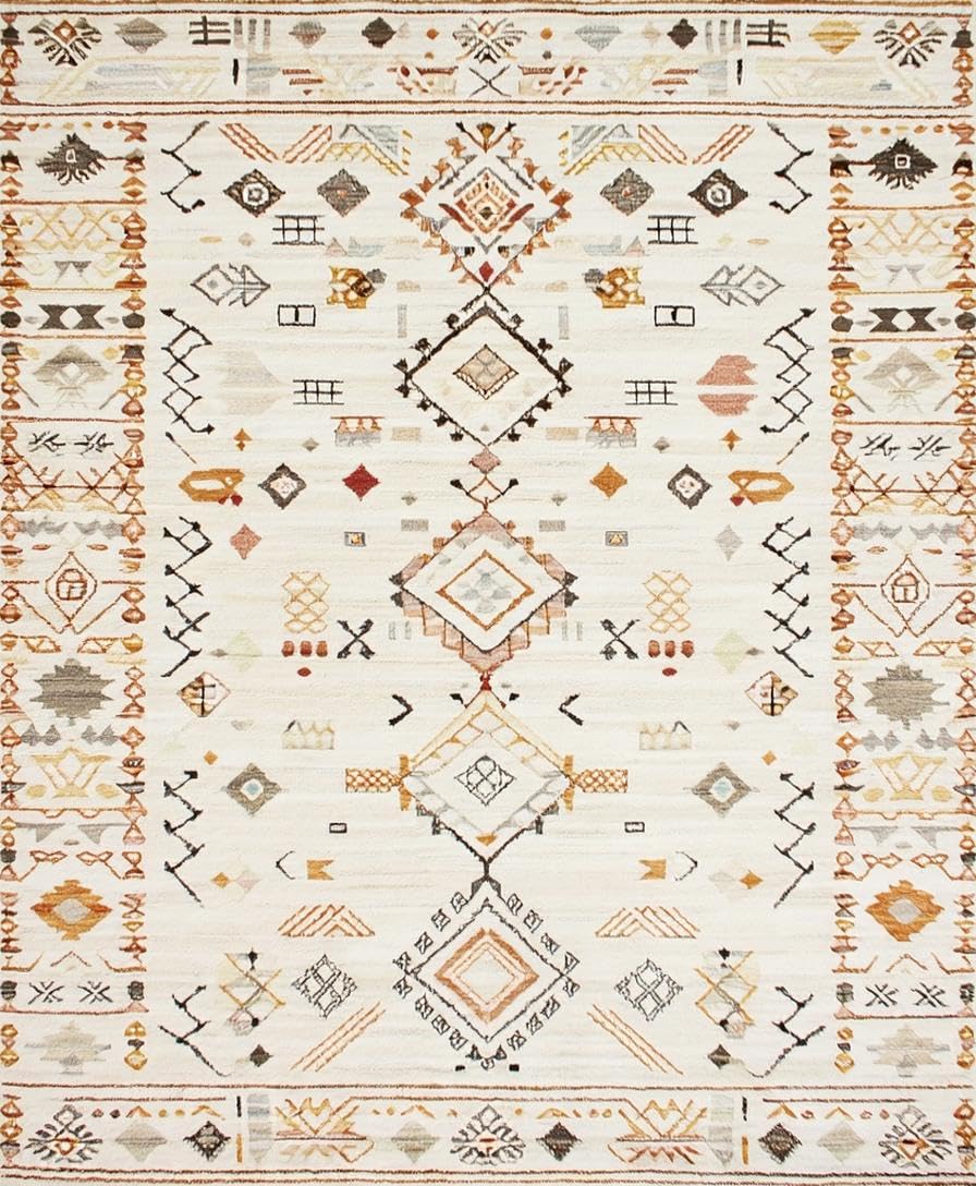Ultra Soft Area Rug, Non Slip, Stain Resistant, Washable Area Rugs for Living Room, Bedroom, Eclectic Geometric Ivory Texture(Beige) Overview: