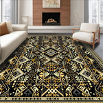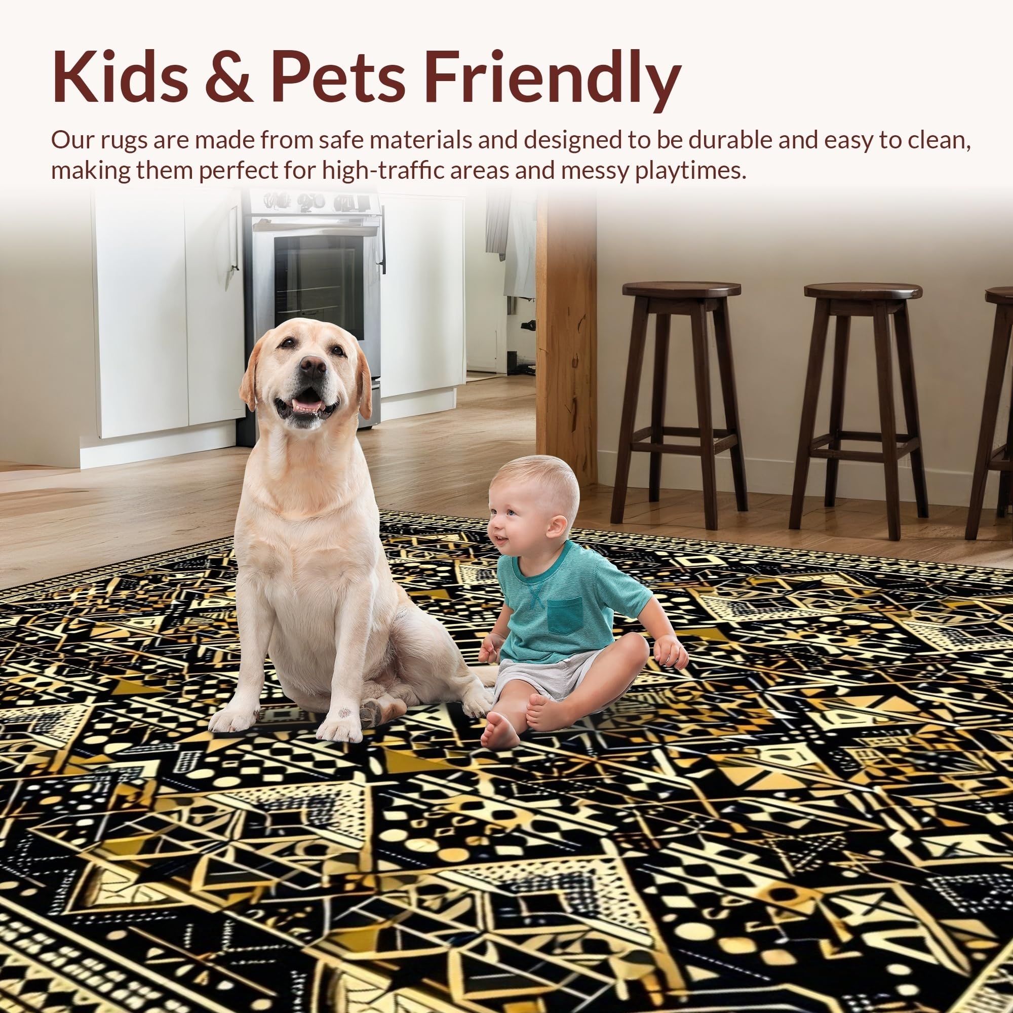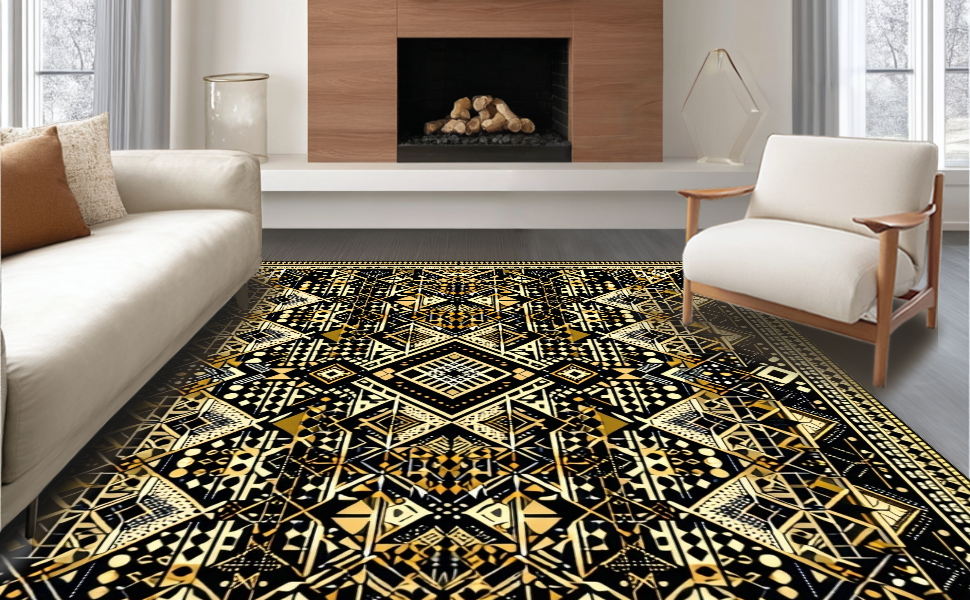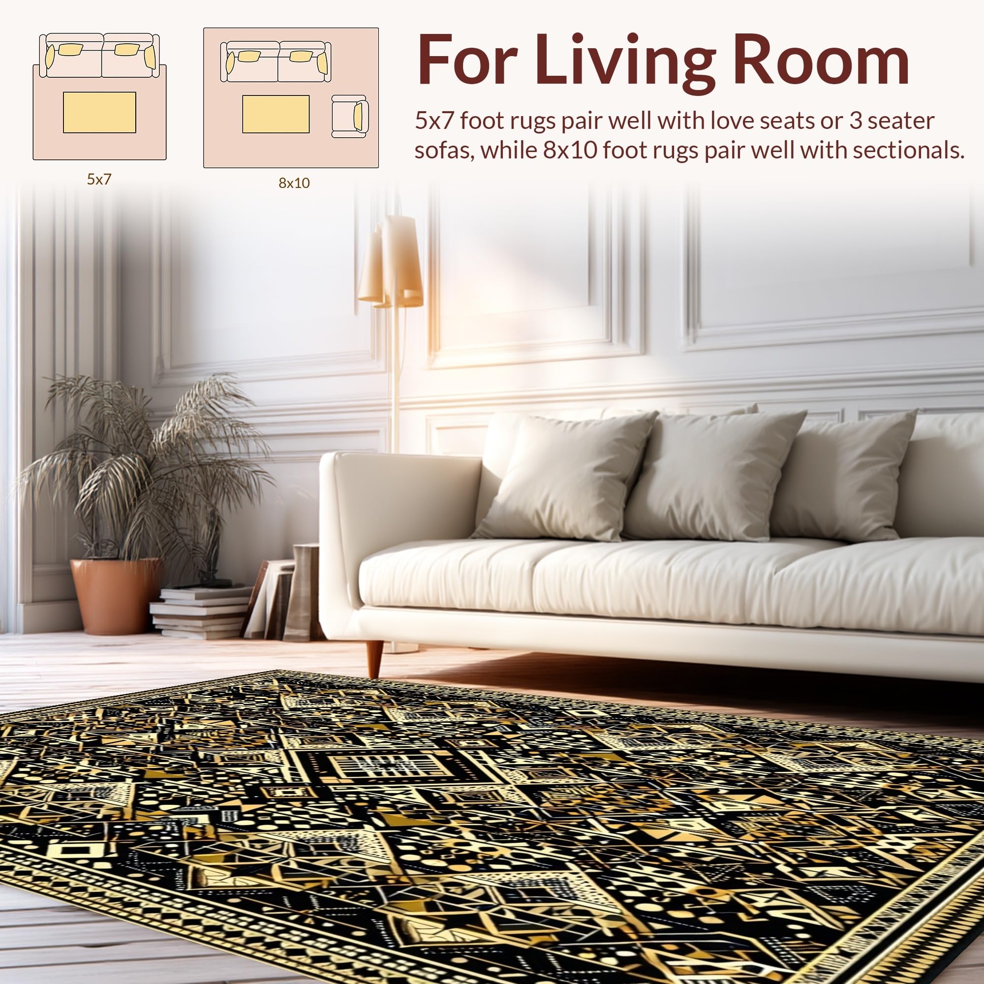 Ultra Soft Area Rug, Non Slip, Stain Resistant, Washable Area Rugs for Living Room, Bedroom, Eclectic Gold Artistic Whimsy(Black) Overview:
