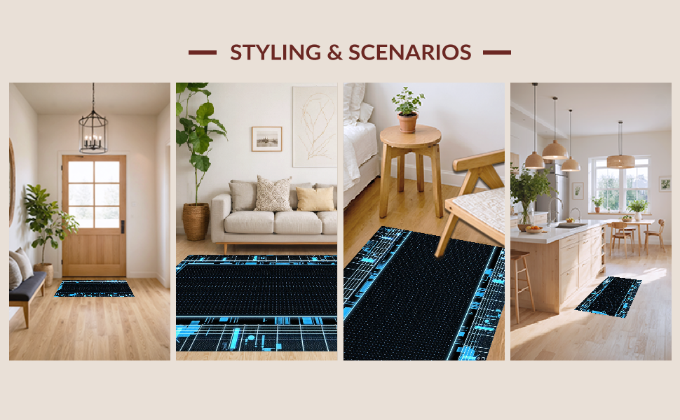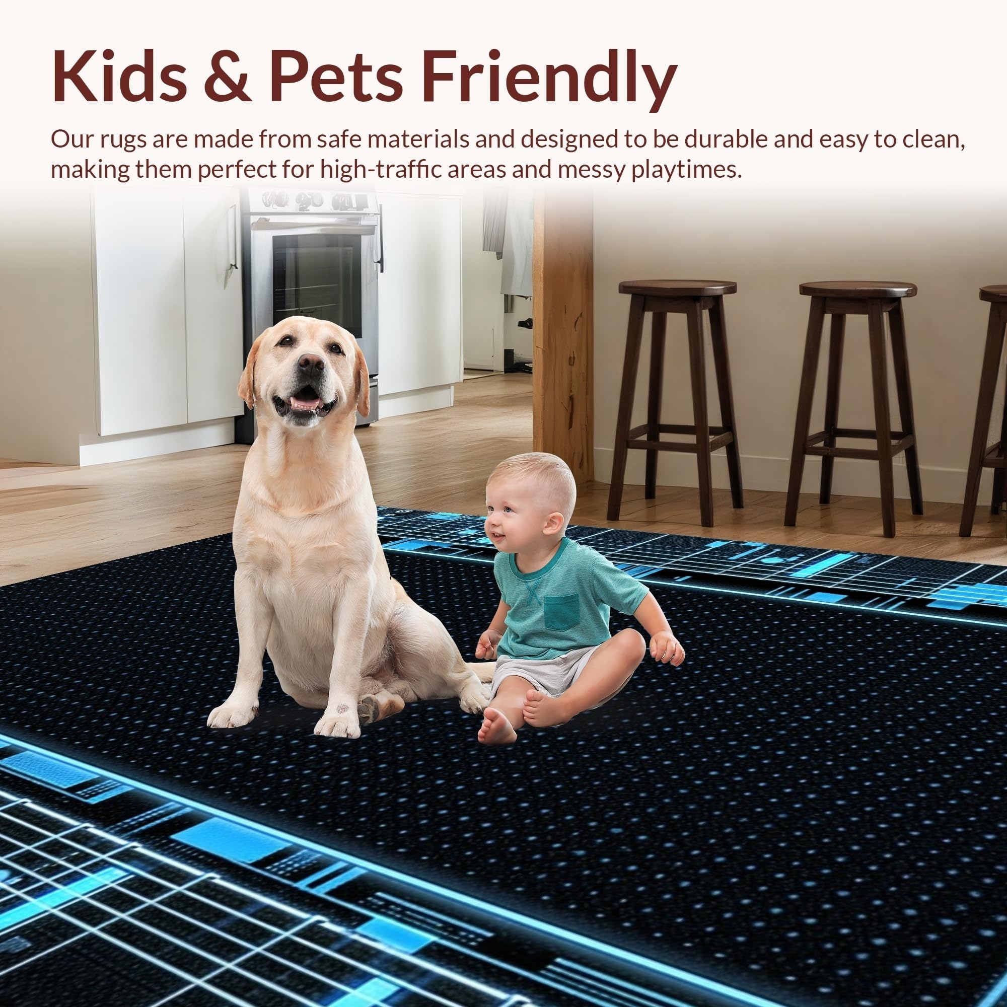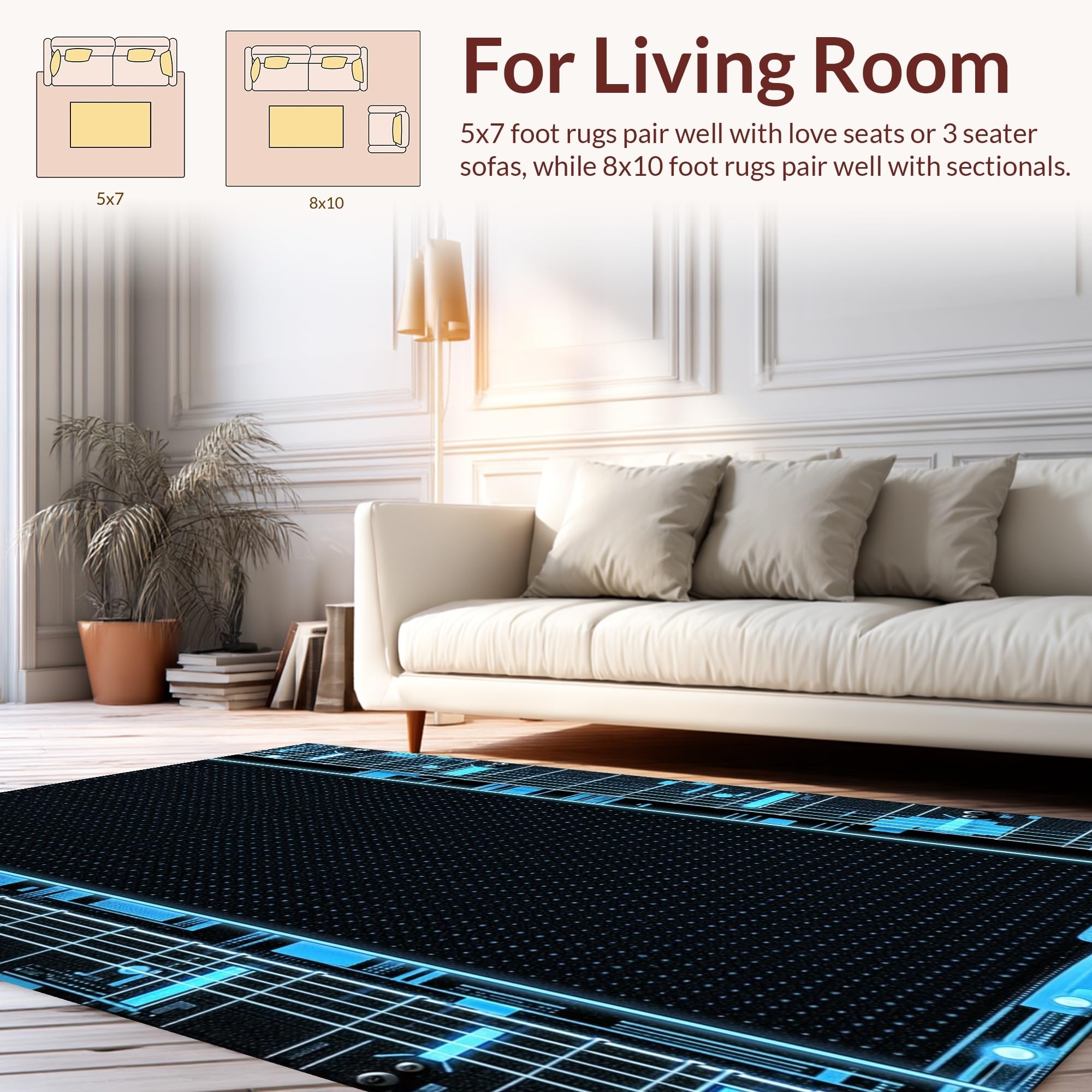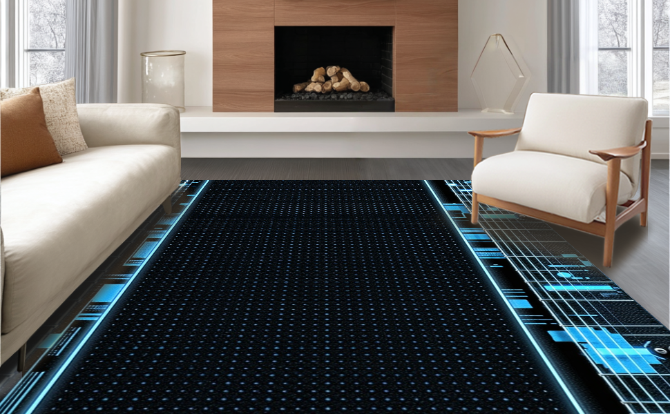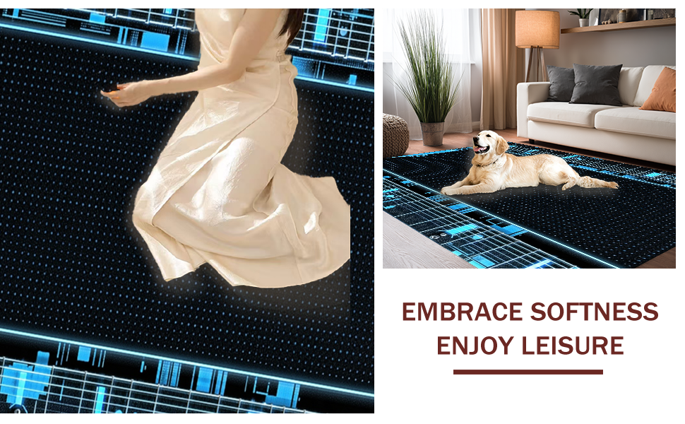 Ultra Soft Area Rug, Non Slip, Stain Resistant, Washable Area Rugs for Living Room, Bedroom, Eclectic Guitar Graphic Style(Blue) Overview: