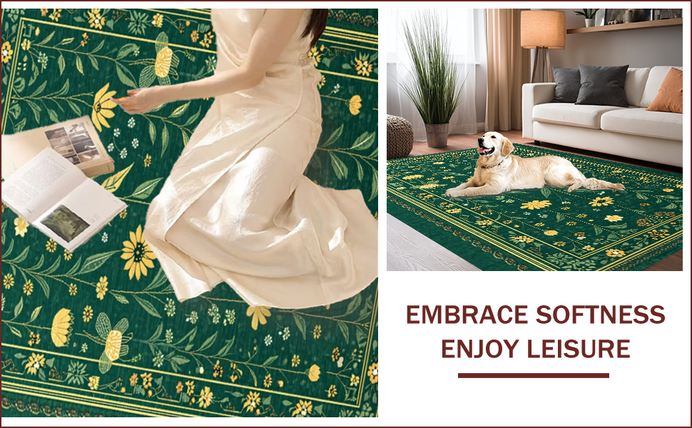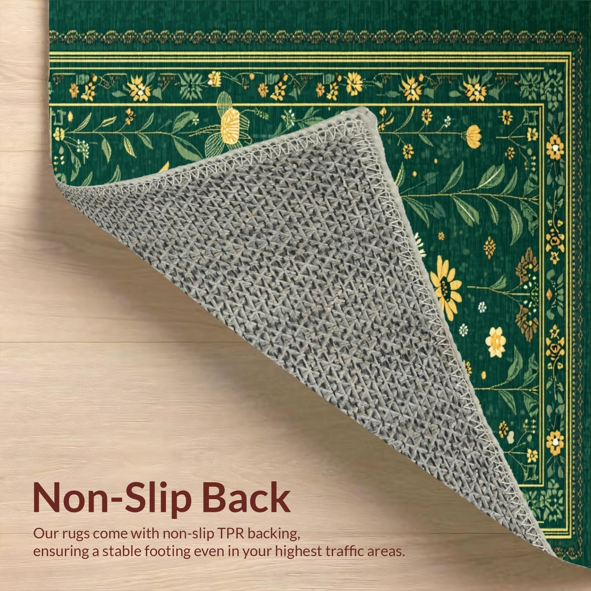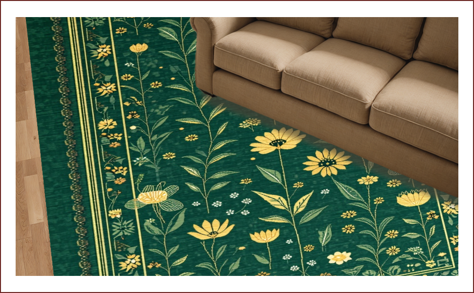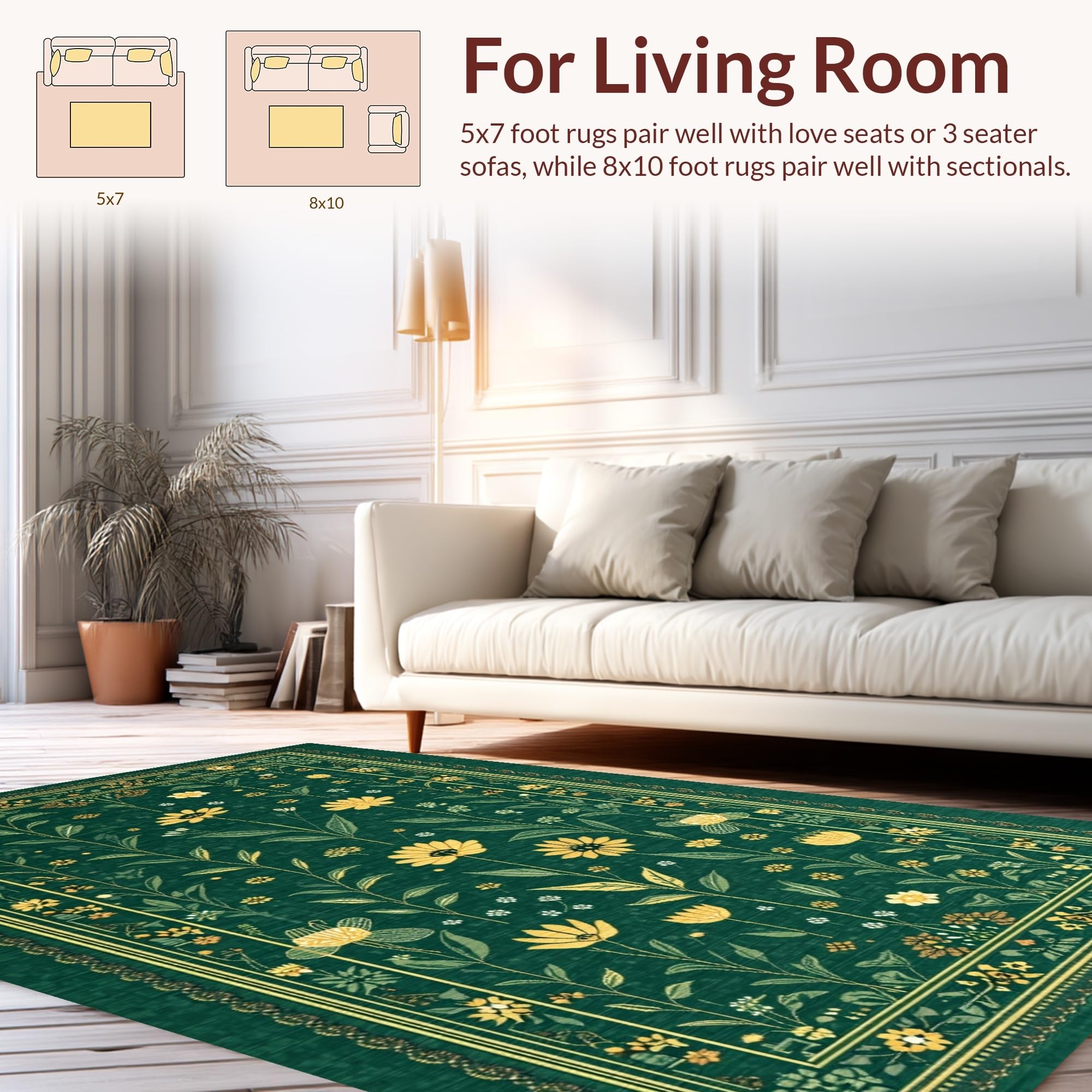 Ultra Soft Area Rug, Non Slip, Stain Resistant, Washable Area Rugs for Living Room, Bedroom, Eclectic Insect Botanical Motif(Green) Overview: