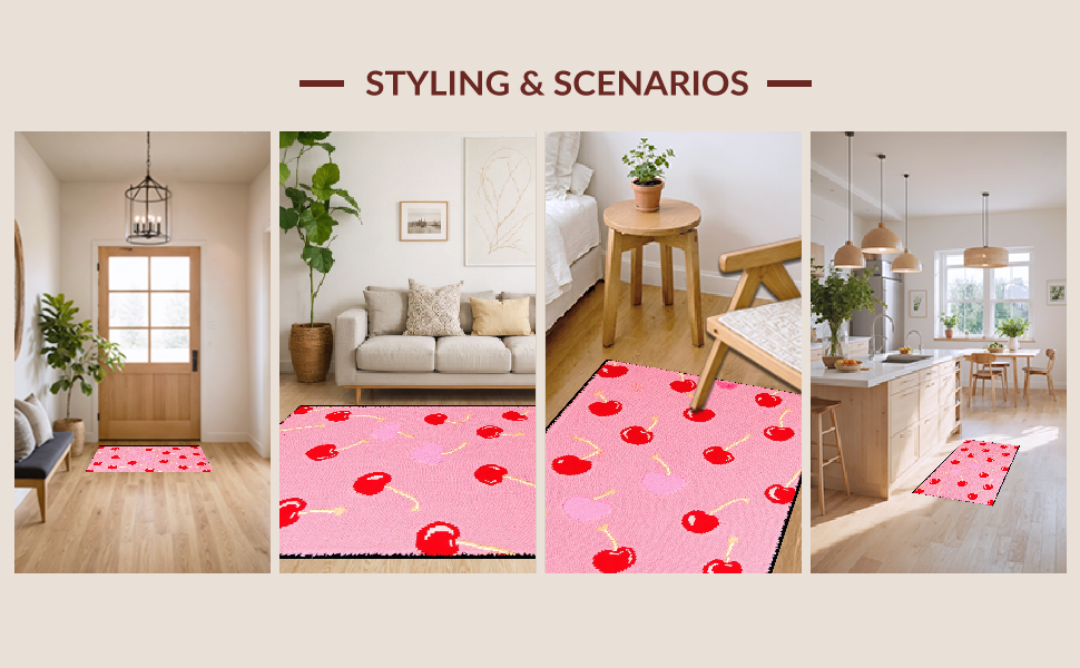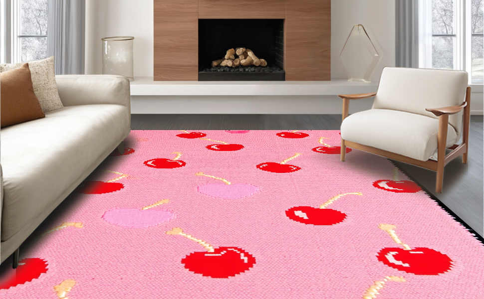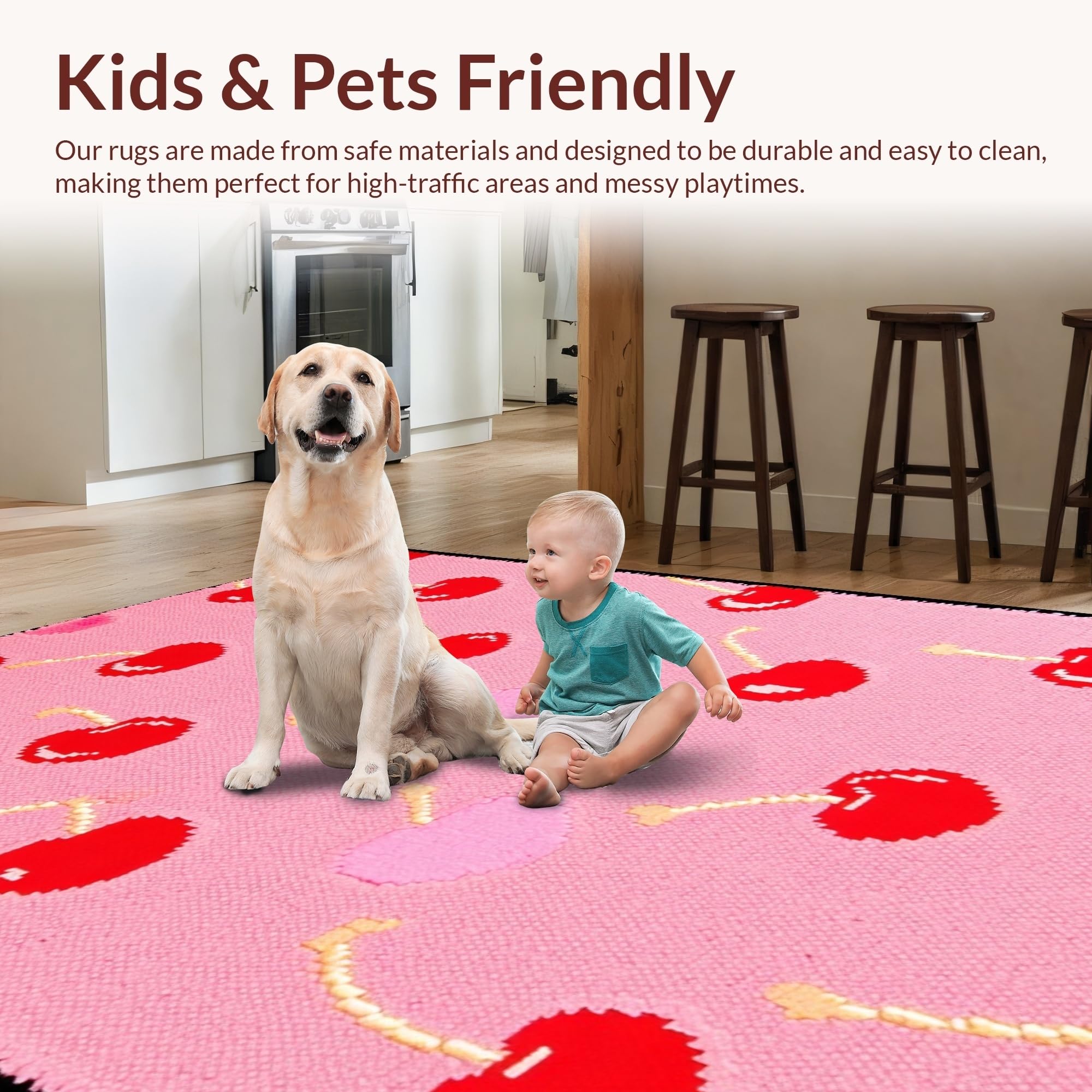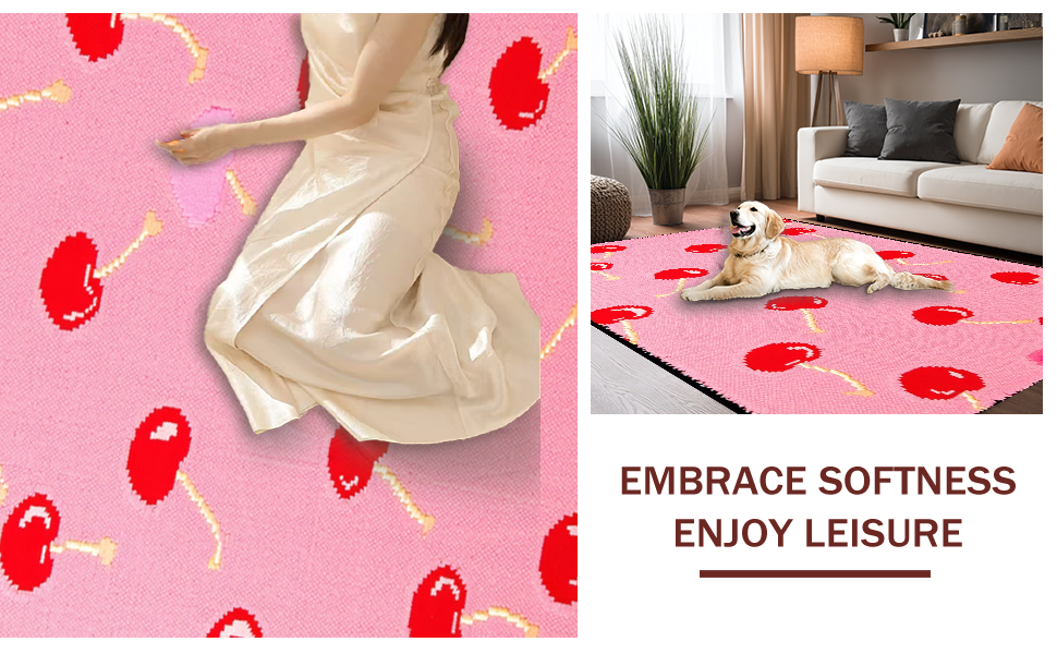 Ultra Soft Area Rug, Non Slip, Stain Resistant, Washable Area Rugs for Living Room, Bedroom, Eclectic Kawaii Abstract Aesthetic(Pink) Overview: