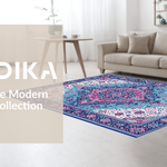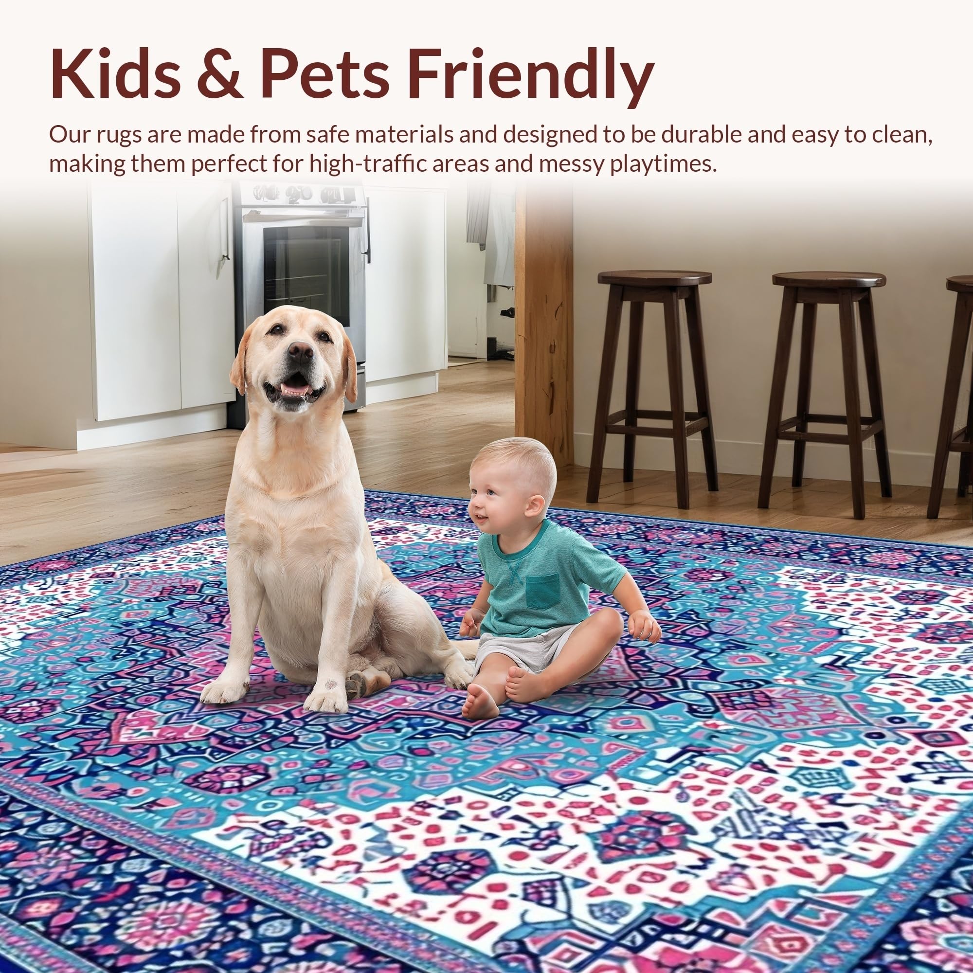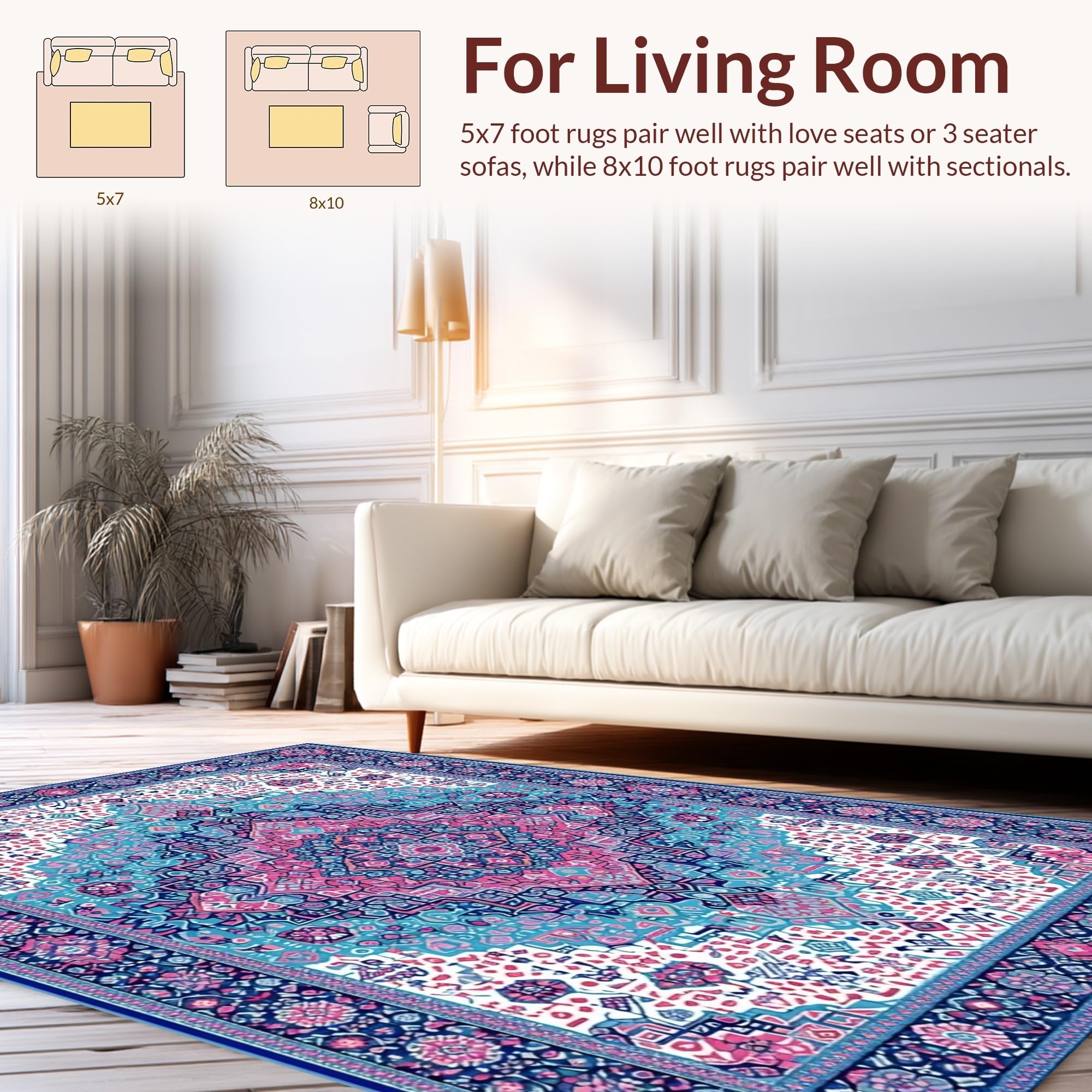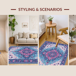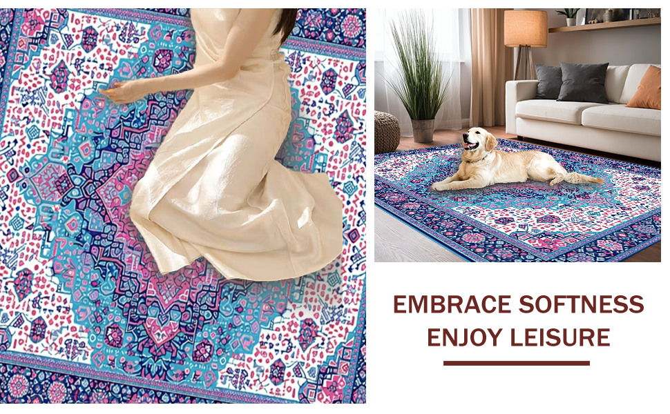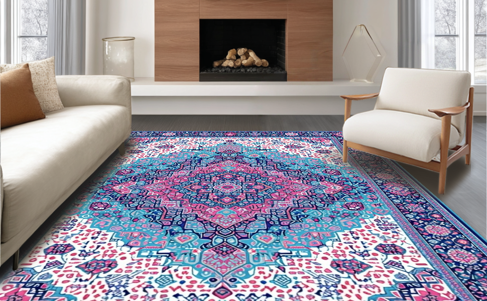 Ultra Soft Area Rug, Non Slip, Stain Resistant, Washable Area Rugs for Living Room, Bedroom, Eclectic Medallion Pattern Fusion(Blue) Overview: