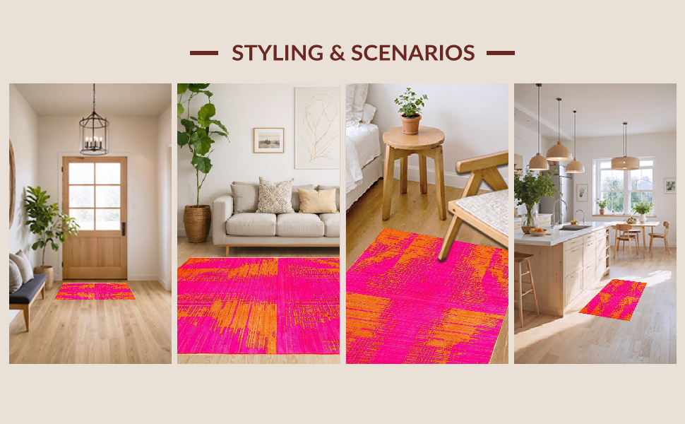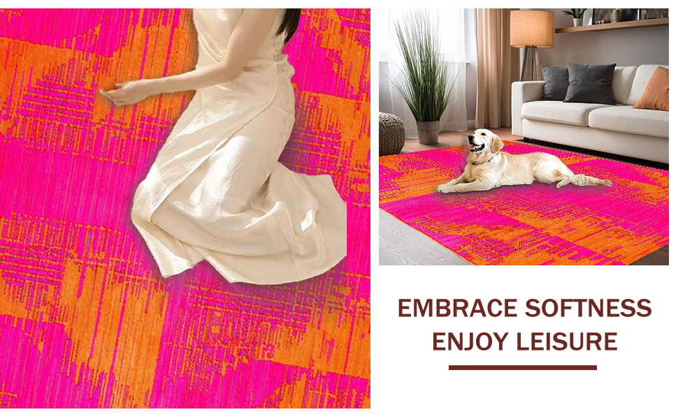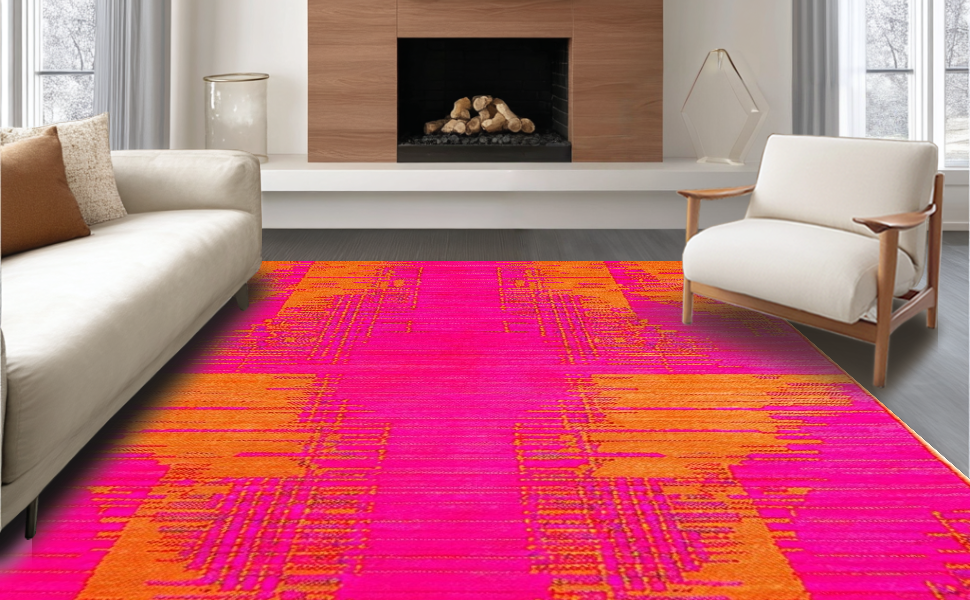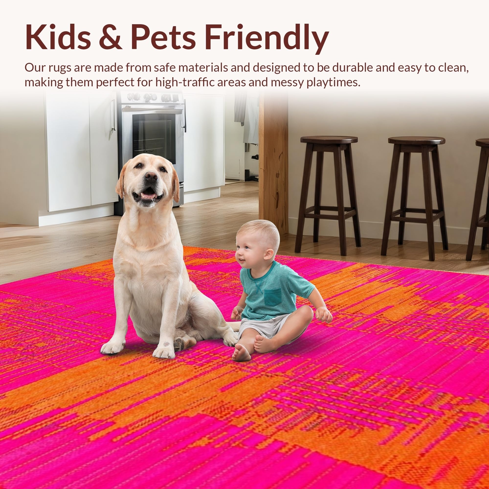 Ultra Soft Area Rug, Non Slip, Stain Resistant, Washable Area Rugs for Living Room, Bedroom, Eclectic Modern Artful Presentation(Pink) Overview: